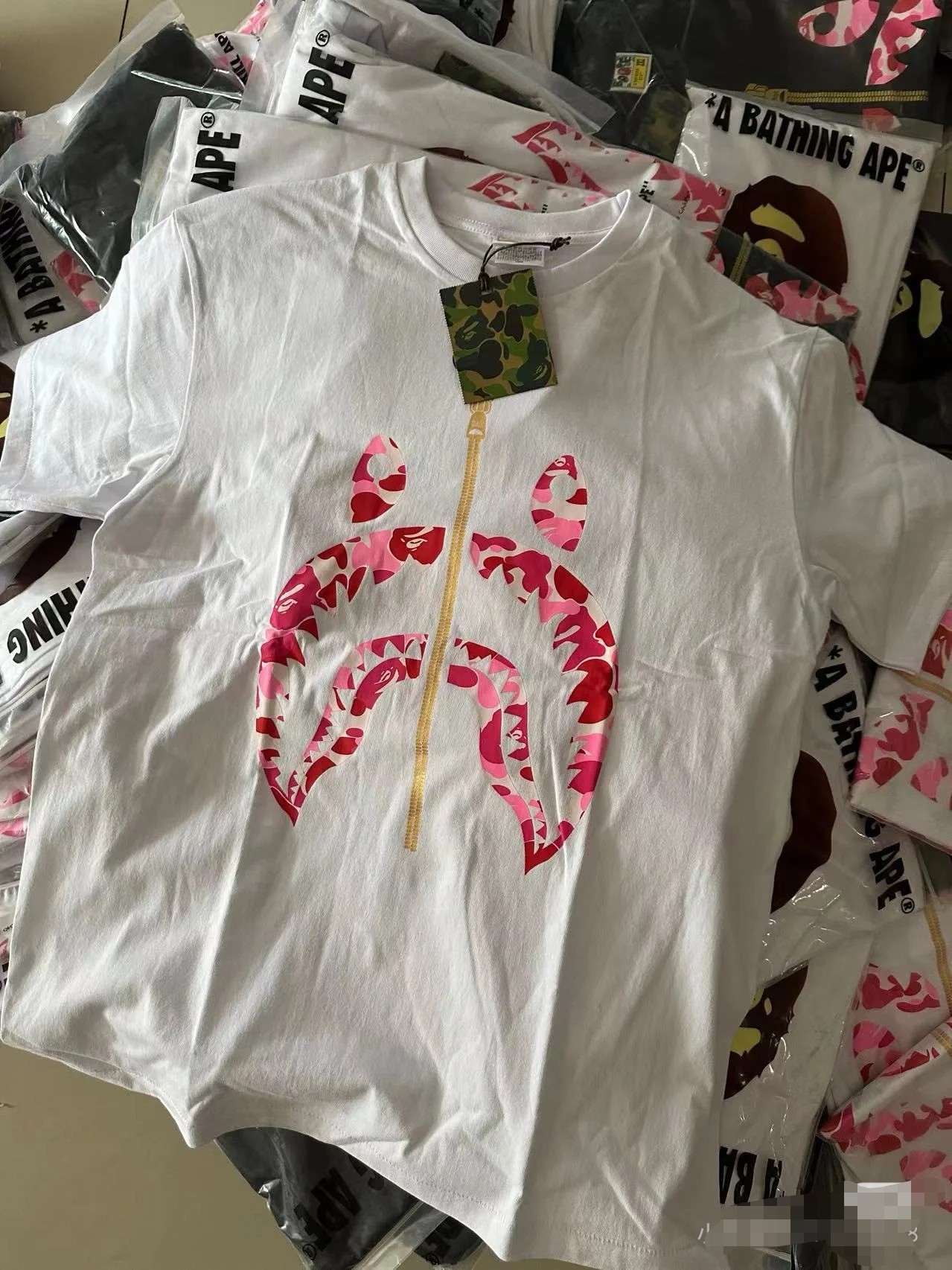 這款衣服是AAAAA 1:1 質量(非常棒). 使用了和原版一模一樣的材料. 商標部分也保持了和Bape一樣. 圖片拍攝是實物衣服拍攝, 您所收到的實物保證和我們圖片一模一樣.