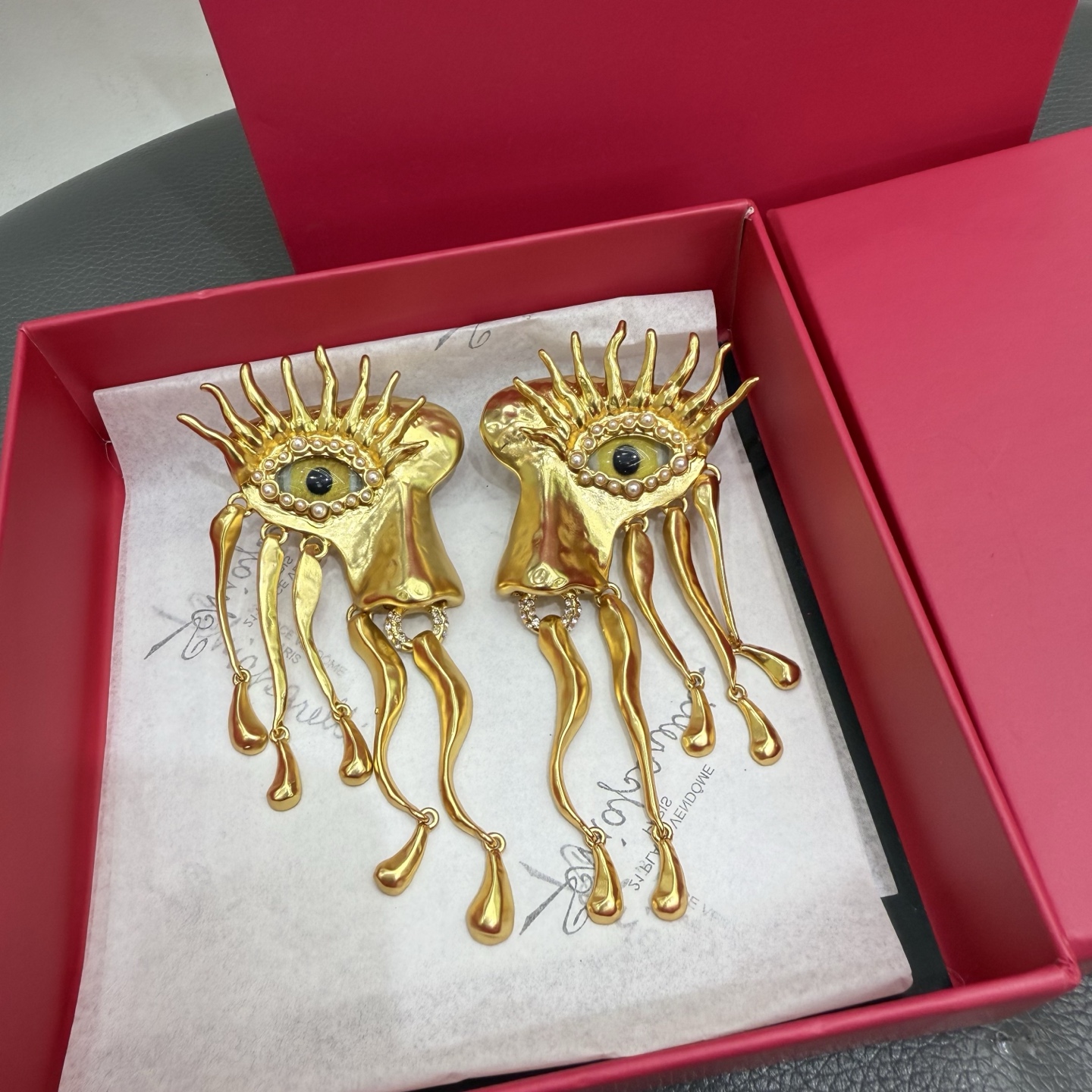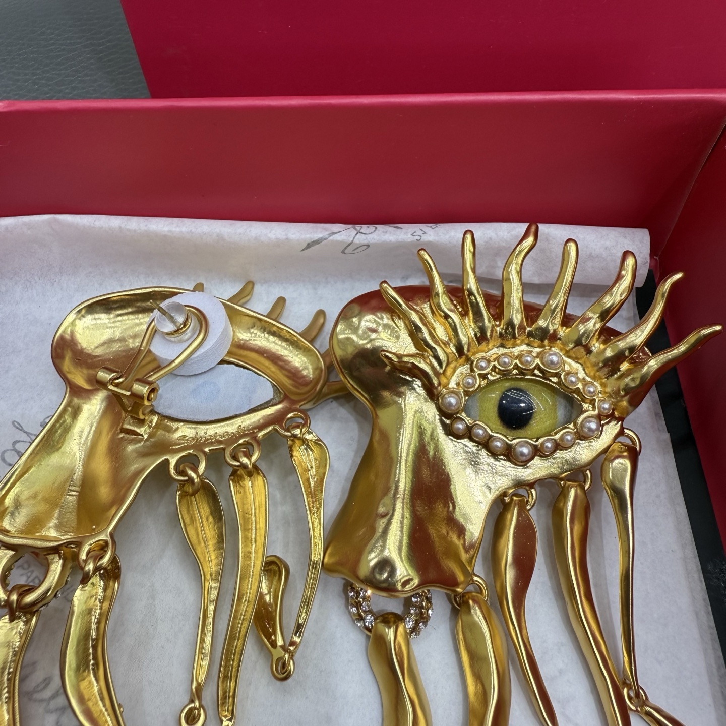 這款首飾是AAAAA 1:1 質量(非常棒). 使用了和原版一模一樣的材料. 商標部分也保持了和Schiaparelli一樣. 圖片拍攝是實物首飾拍攝, 您所收到的實物保證和我們圖片一模一樣.
