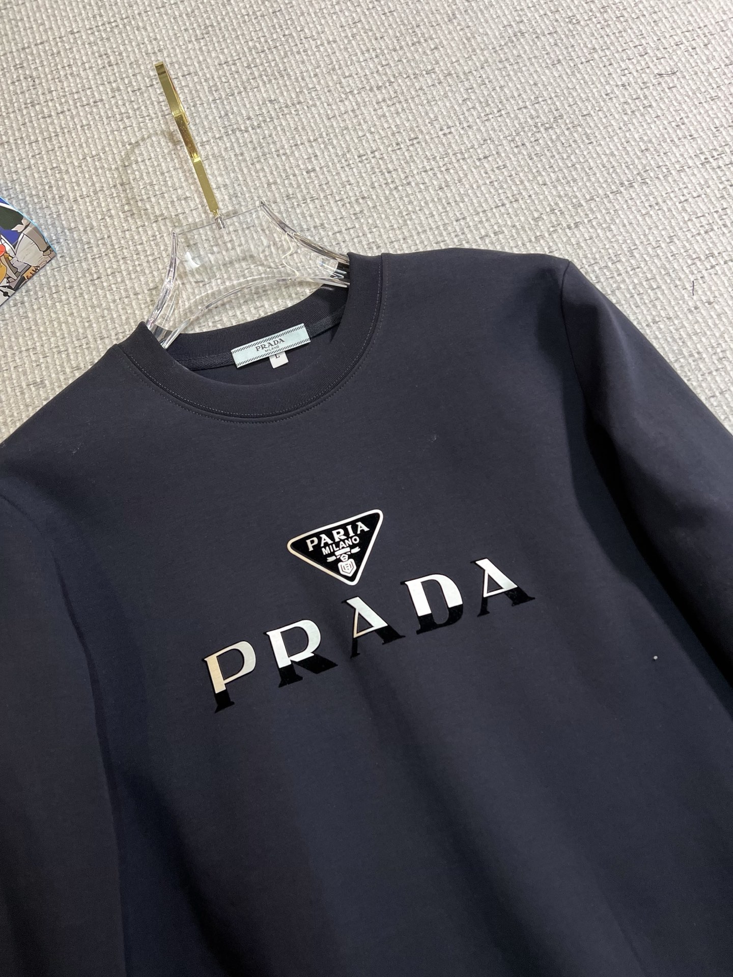 這款衣服是AAAAA 1:1 質量(非常棒). 使用了和原版一模一樣的材料. 商標部分也保持了和普拉達/Prada一樣. 圖片拍攝是實物衣服拍攝, 您所收到的實物保證和我們圖片一模一樣.