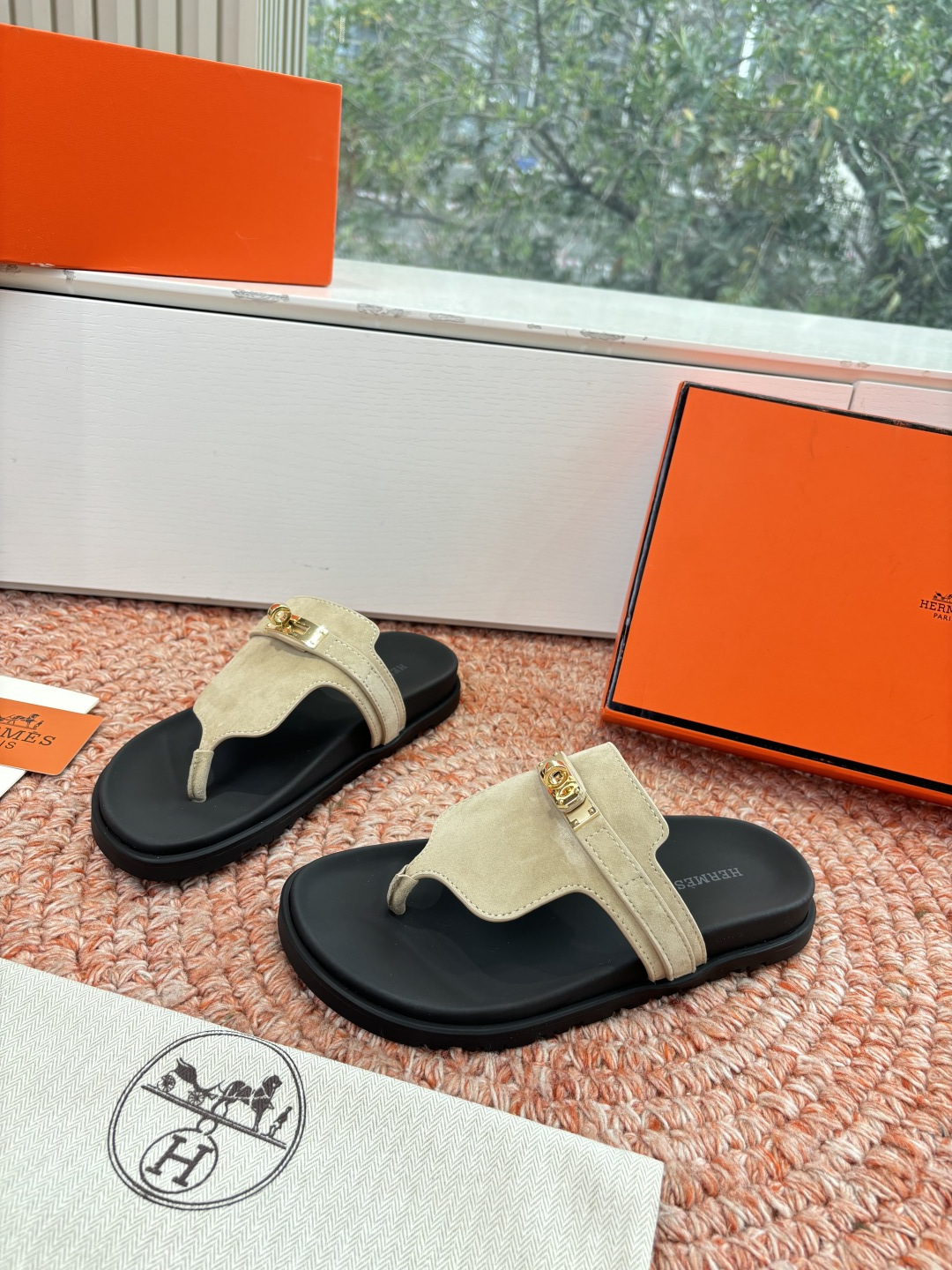這款鞋子是AAAAA 1:1 質量(非常棒). 使用了和原版一模一樣的材料. 商標部分也保持了和愛馬仕/Hermes一樣. 圖片拍攝是實物鞋子拍攝, 您所收到的實物保證和我們圖片一模一樣.