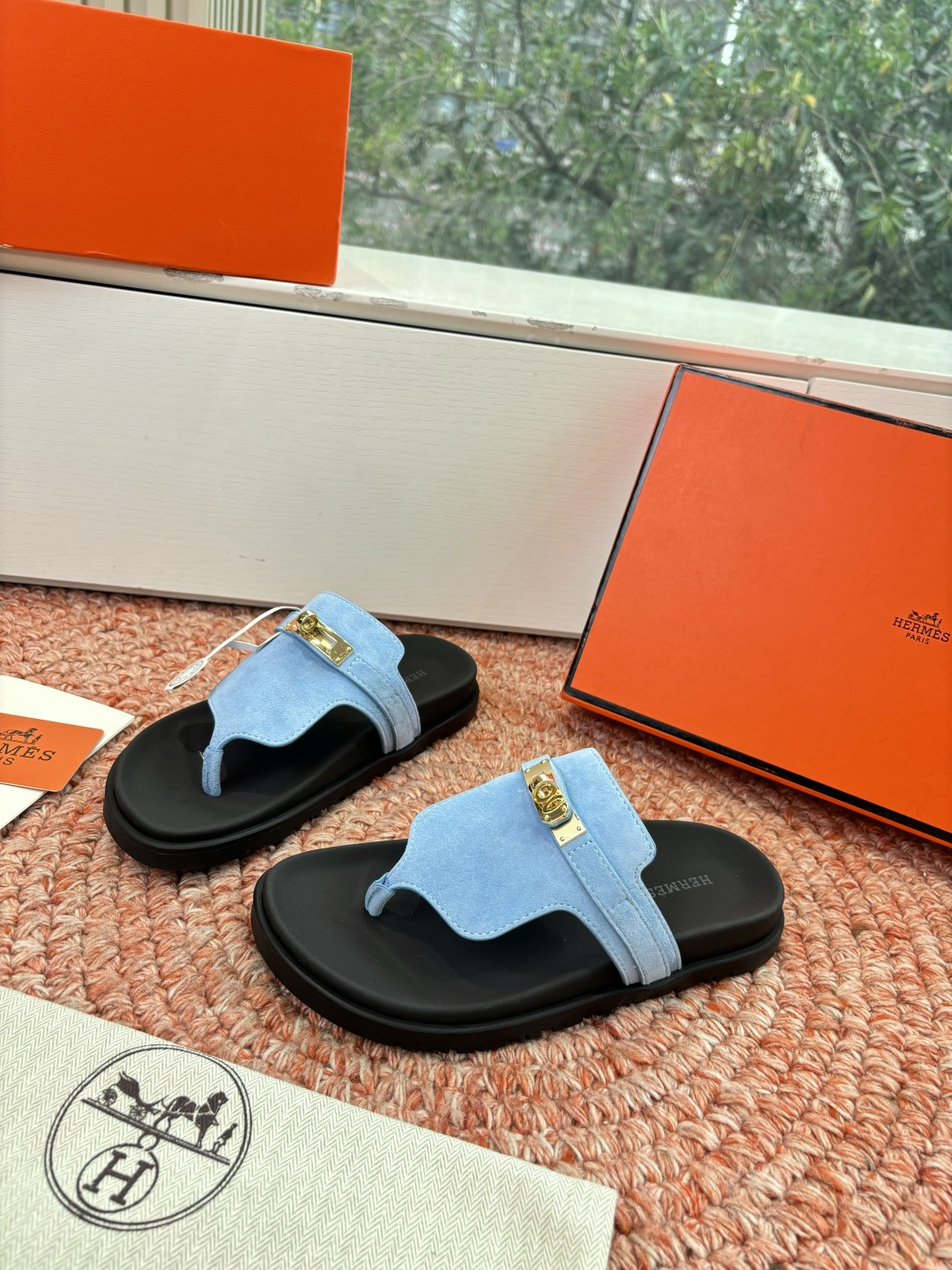 這款鞋子是AAAAA 1:1 質量(非常棒). 使用了和原版一模一樣的材料. 商標部分也保持了和愛馬仕/Hermes一樣. 圖片拍攝是實物鞋子拍攝, 您所收到的實物保證和我們圖片一模一樣.