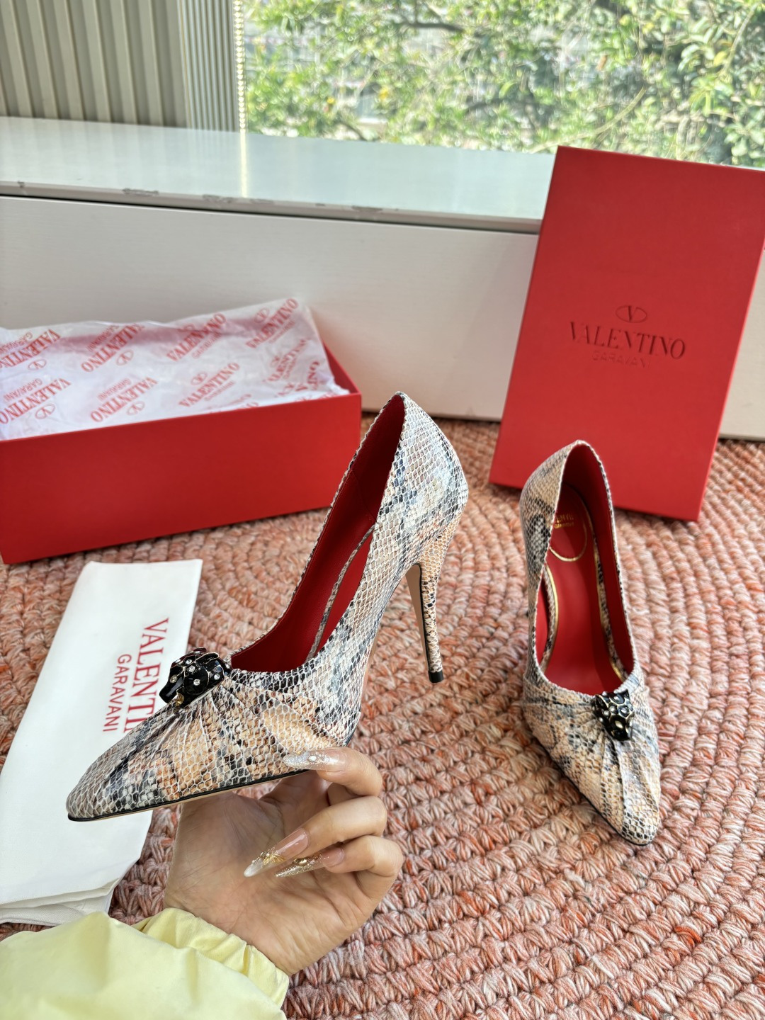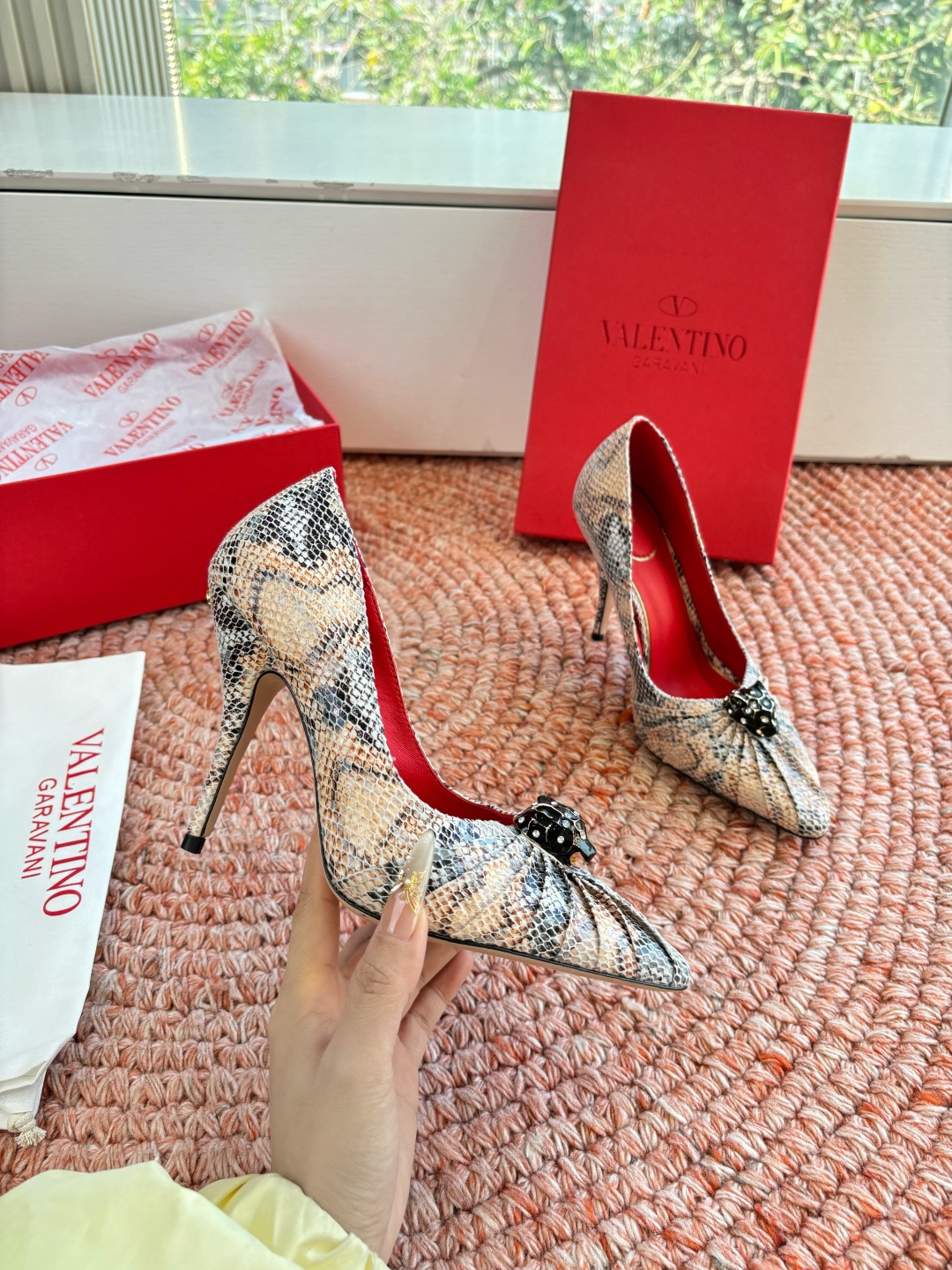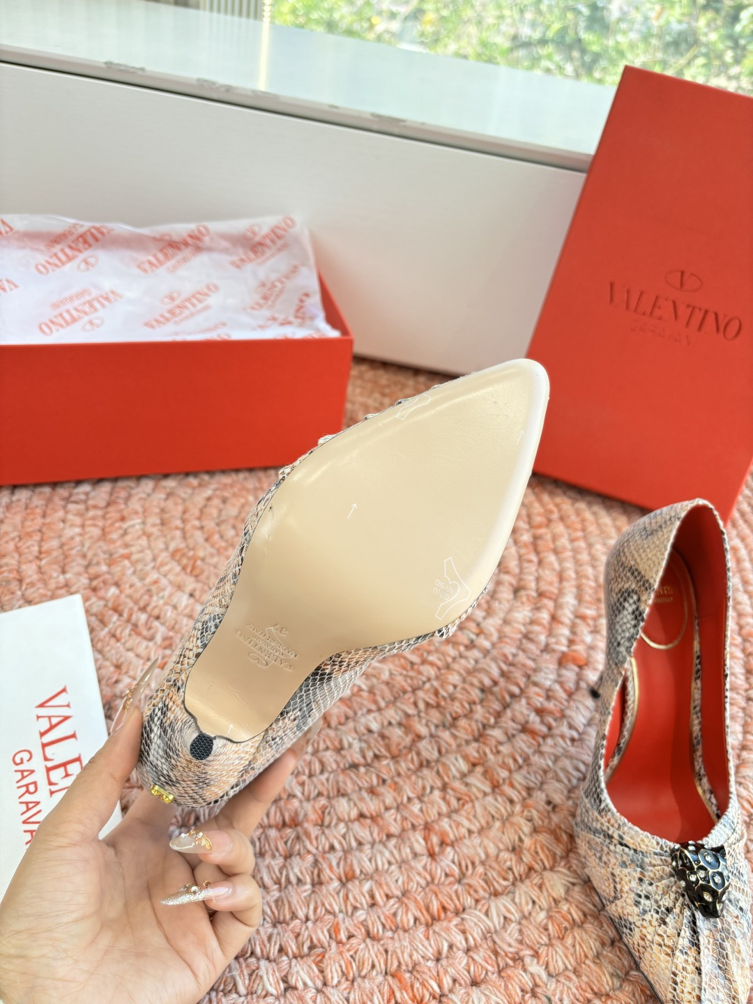 這款鞋子是AAAAA 1:1 質量(非常棒). 使用了和原版一模一樣的材料. 商標部分也保持了和瓦倫蒂諾/Valentino一樣. 圖片拍攝是實物鞋子拍攝, 您所收到的實物保證和我們圖片一模一樣.