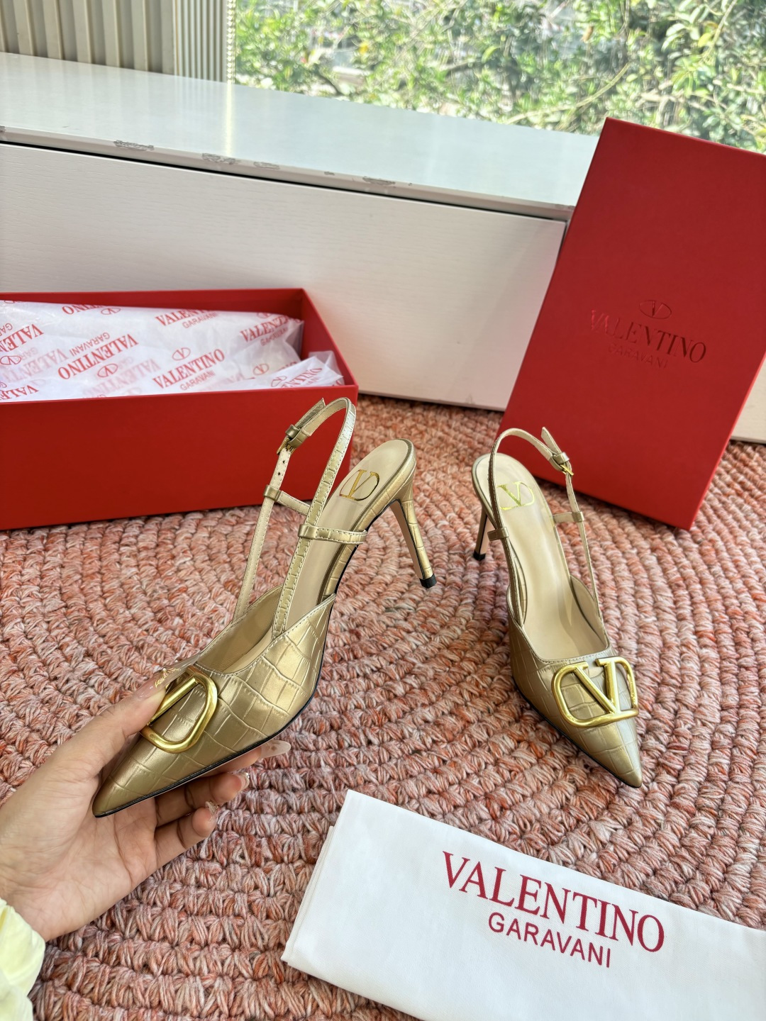 這款鞋子是AAAAA 1:1 質量(非常棒). 使用了和原版一模一樣的材料. 商標部分也保持了和瓦倫蒂諾/Valentino一樣. 圖片拍攝是實物鞋子拍攝, 您所收到的實物保證和我們圖片一模一樣.
