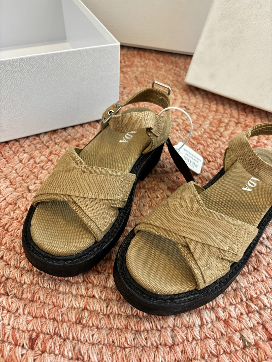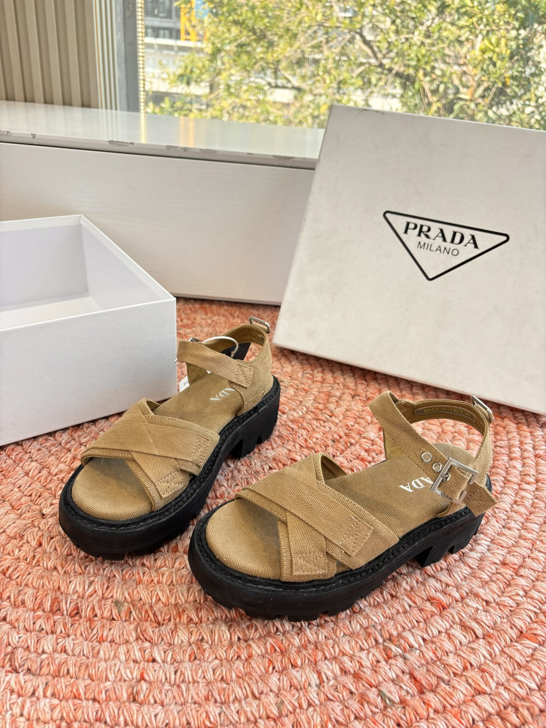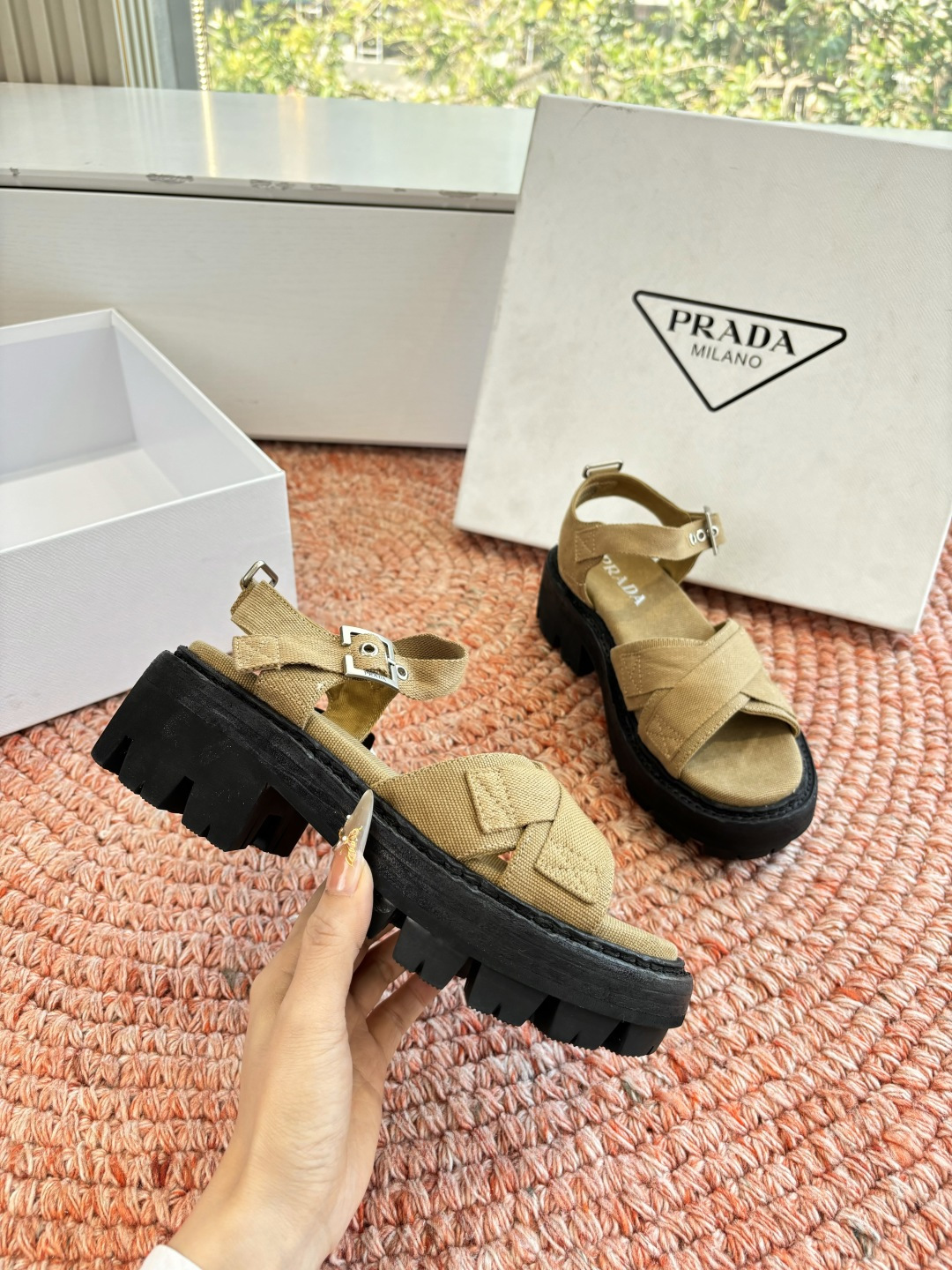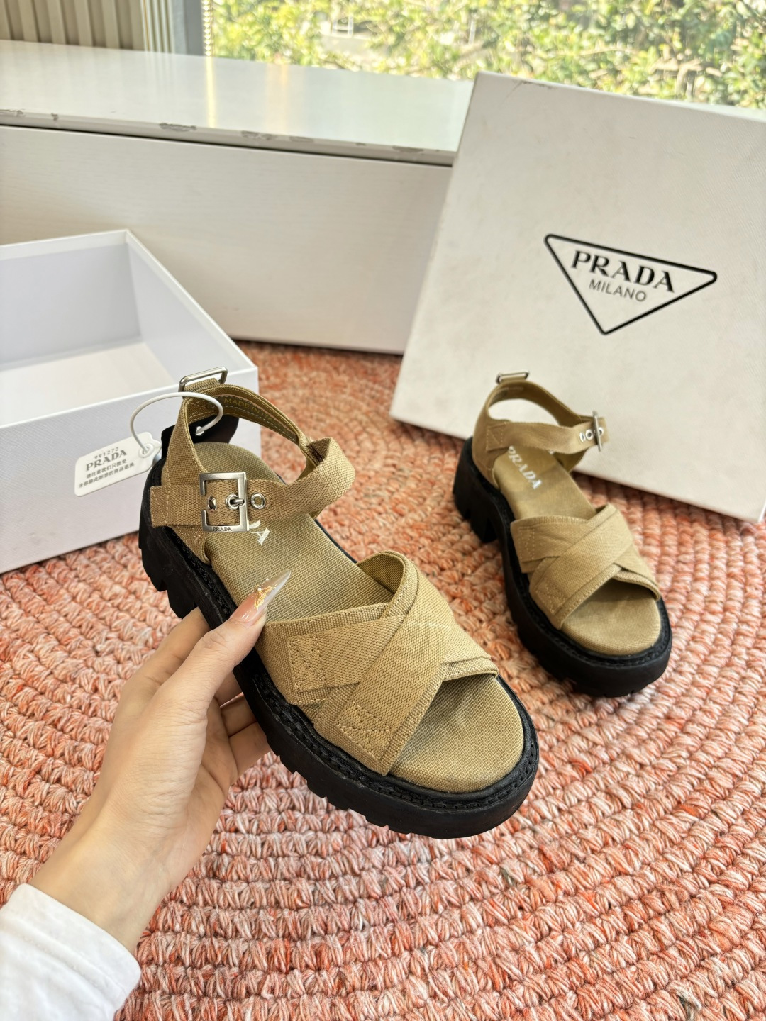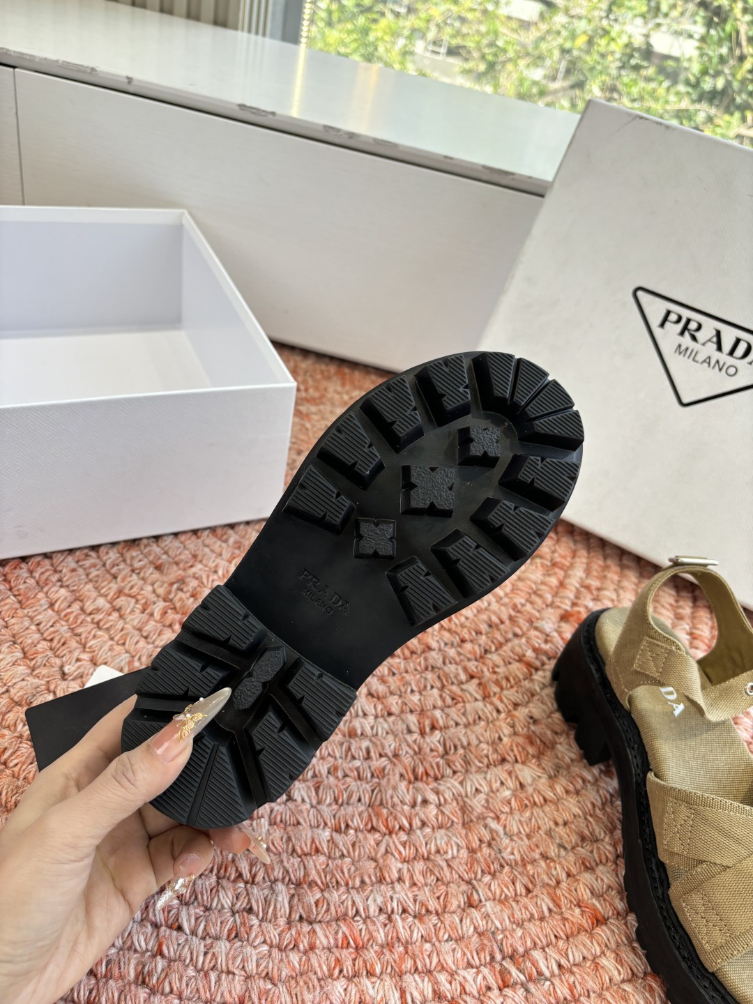 這款鞋子是AAAAA 1:1 質量(非常棒). 使用了和原版一模一樣的材料. 商標部分也保持了和普拉達/Prada一樣. 圖片拍攝是實物鞋子拍攝, 您所收到的實物保證和我們圖片一模一樣.