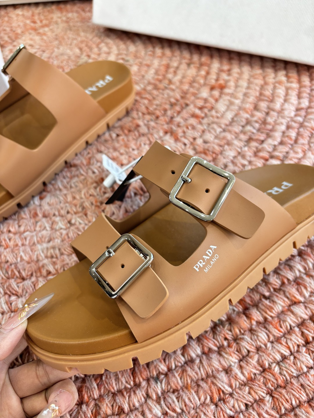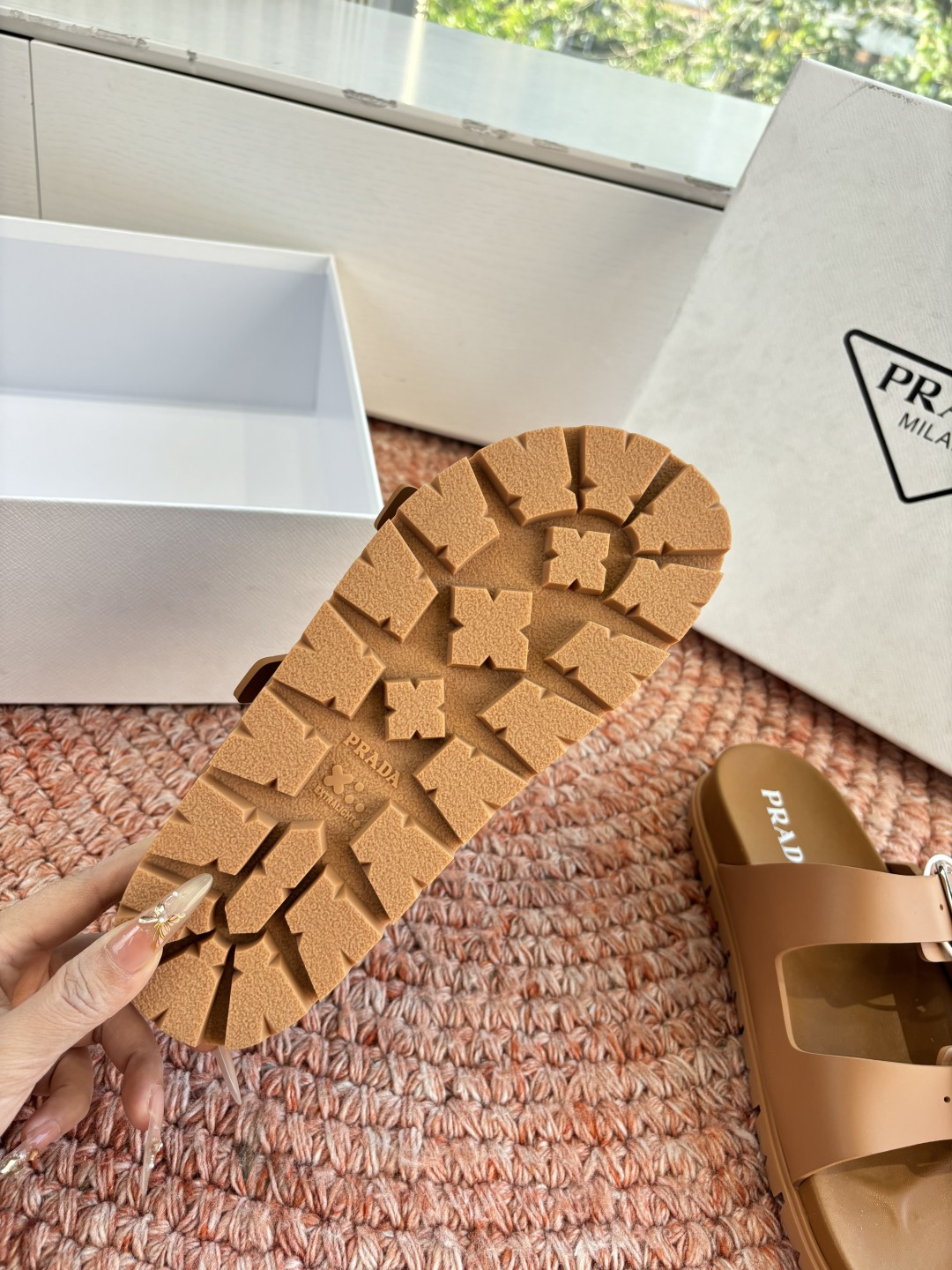這款鞋子是AAAAA 1:1 質量(非常棒). 使用了和原版一模一樣的材料. 商標部分也保持了和普拉達/Prada一樣. 圖片拍攝是實物鞋子拍攝, 您所收到的實物保證和我們圖片一模一樣.