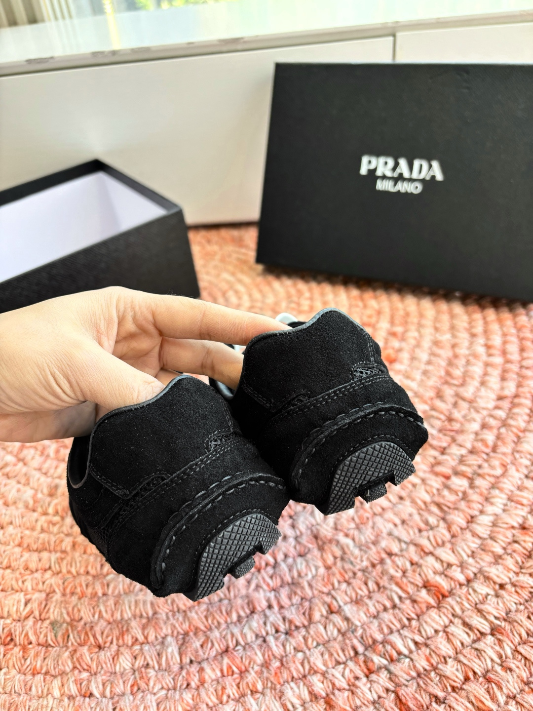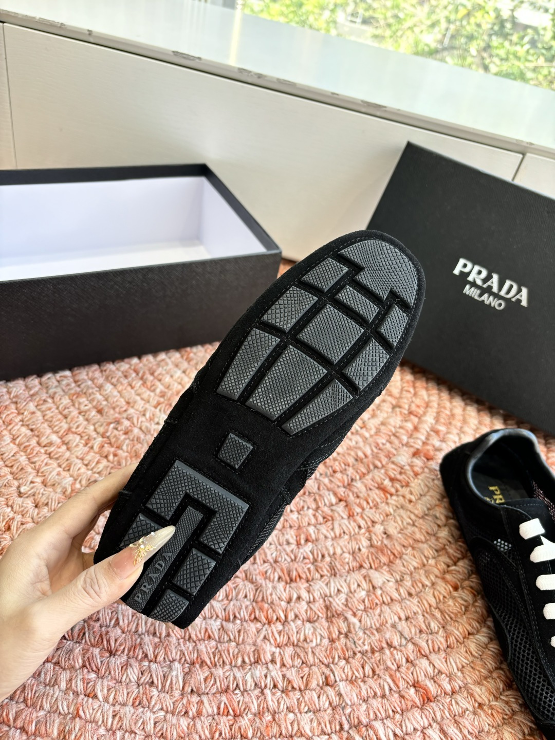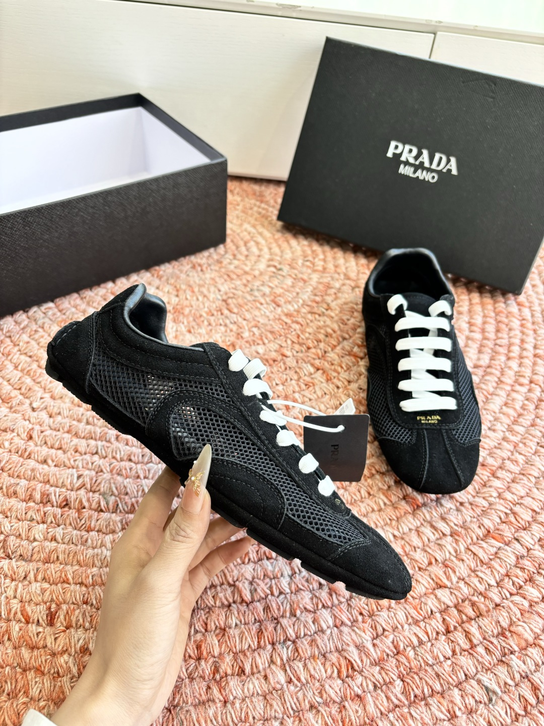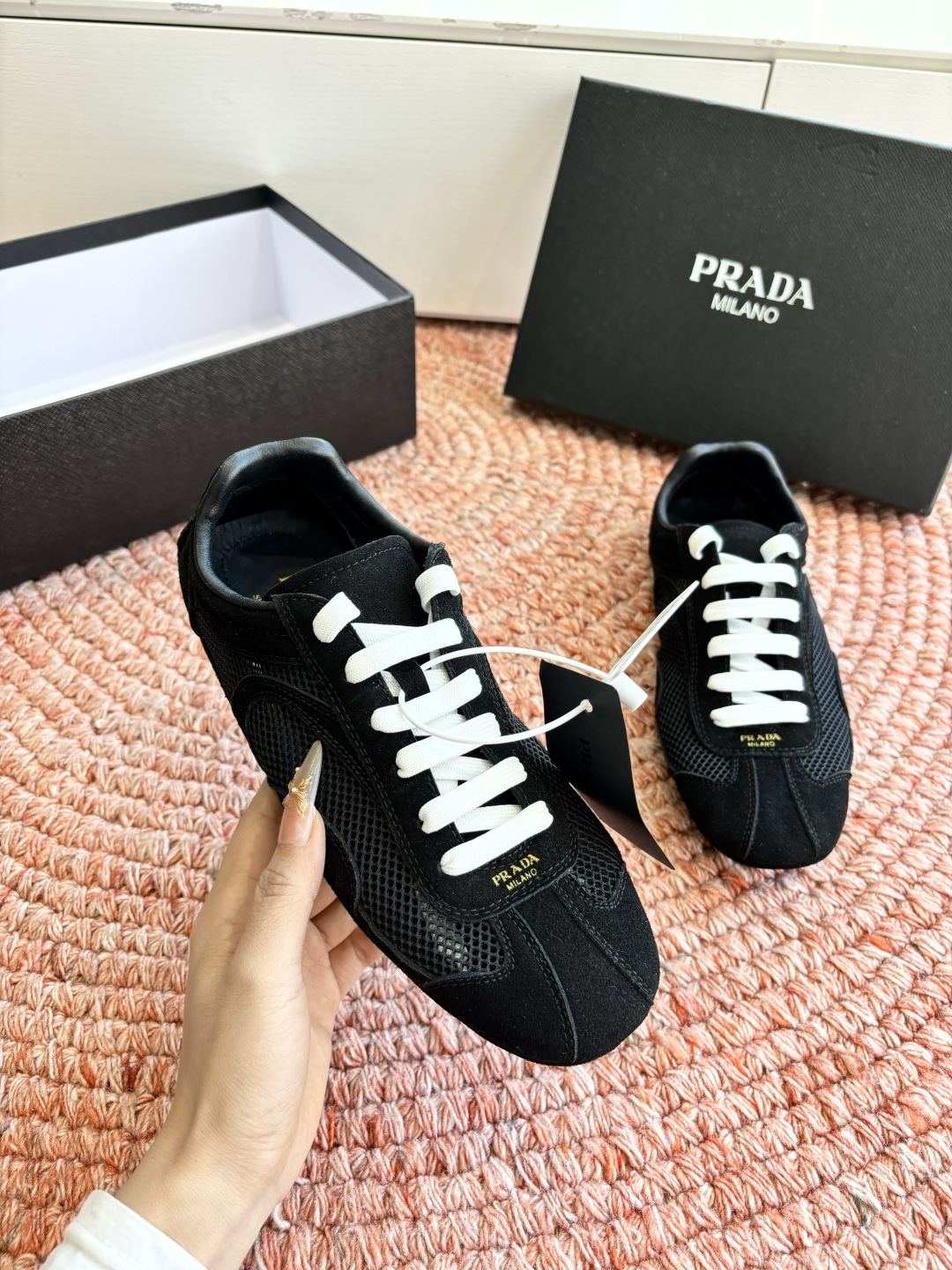 這款鞋子是AAAAA 1:1 質量(非常棒). 使用了和原版一模一樣的材料. 商標部分也保持了和普拉達/Prada一樣. 圖片拍攝是實物鞋子拍攝, 您所收到的實物保證和我們圖片一模一樣.