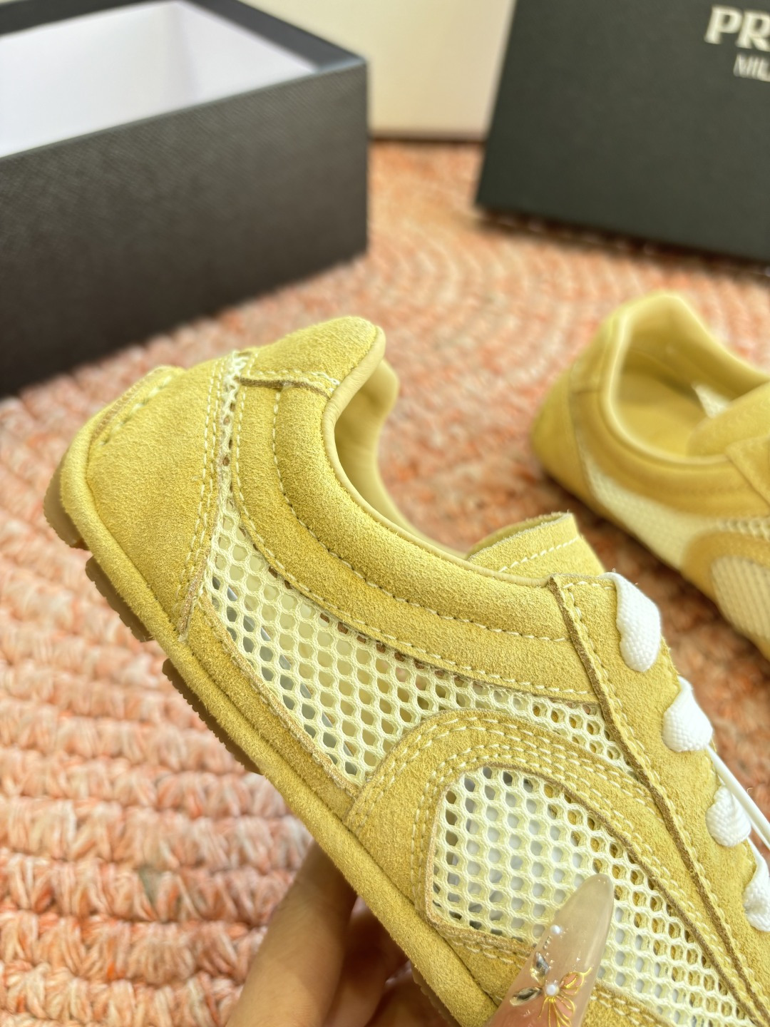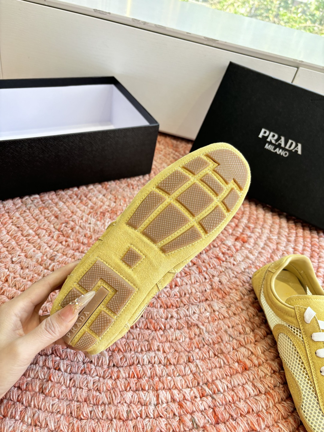 這款鞋子是AAAAA 1:1 質量(非常棒). 使用了和原版一模一樣的材料. 商標部分也保持了和普拉達/Prada一樣. 圖片拍攝是實物鞋子拍攝, 您所收到的實物保證和我們圖片一模一樣.