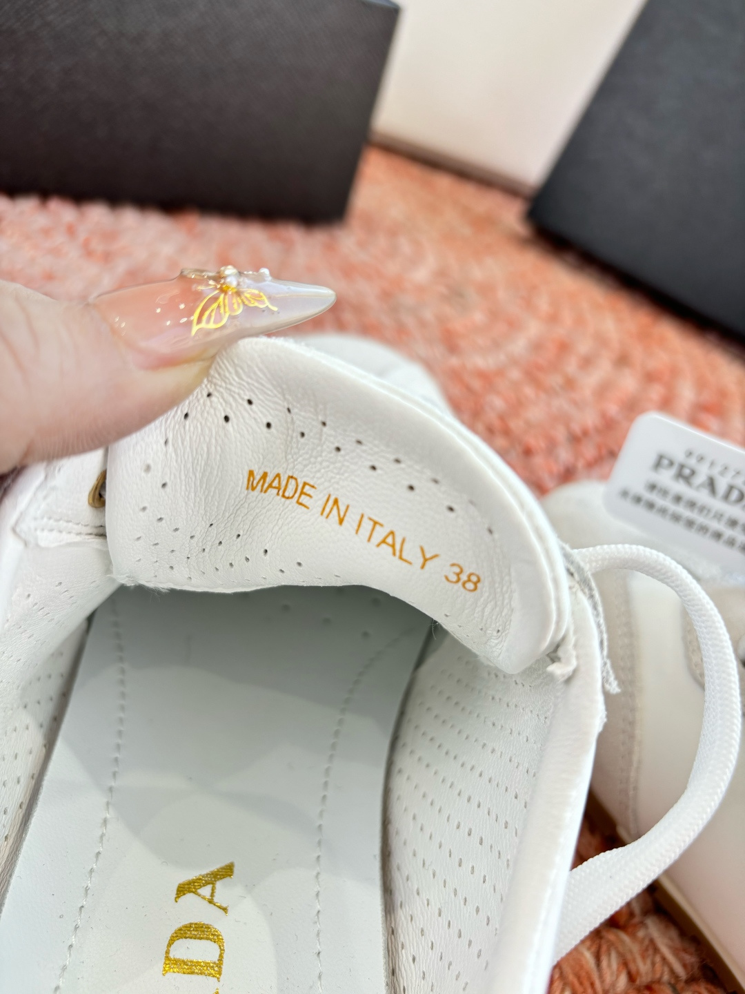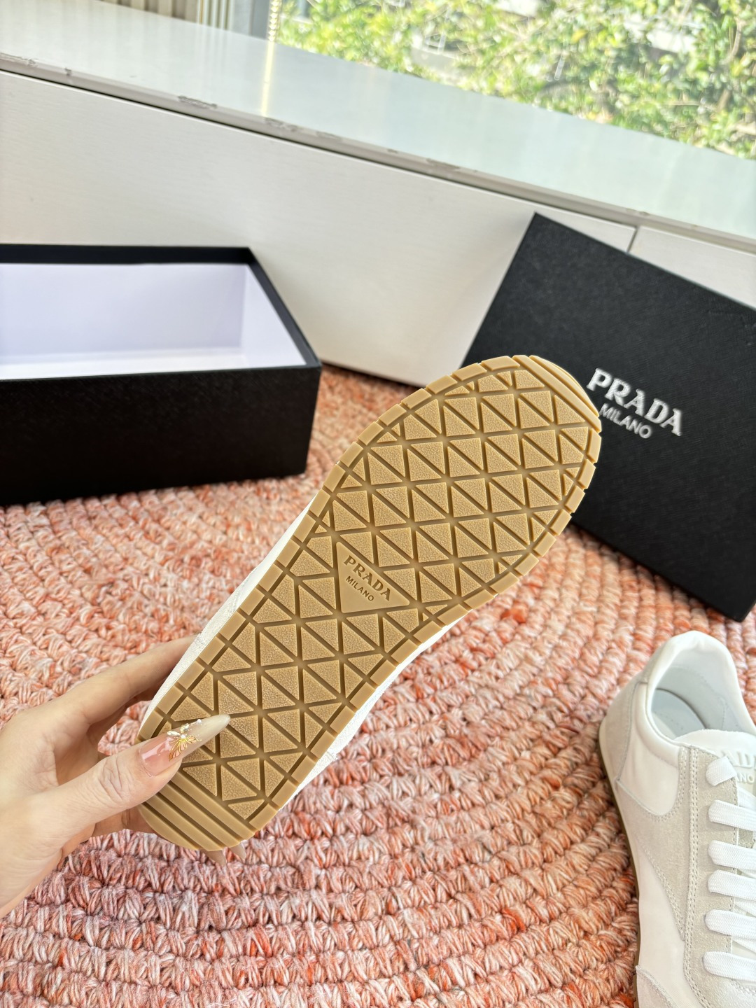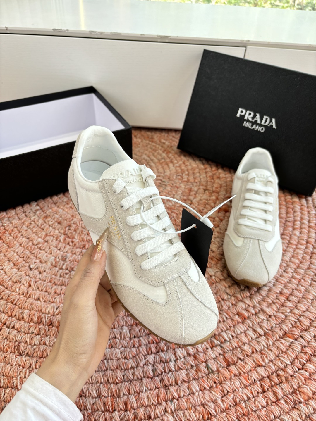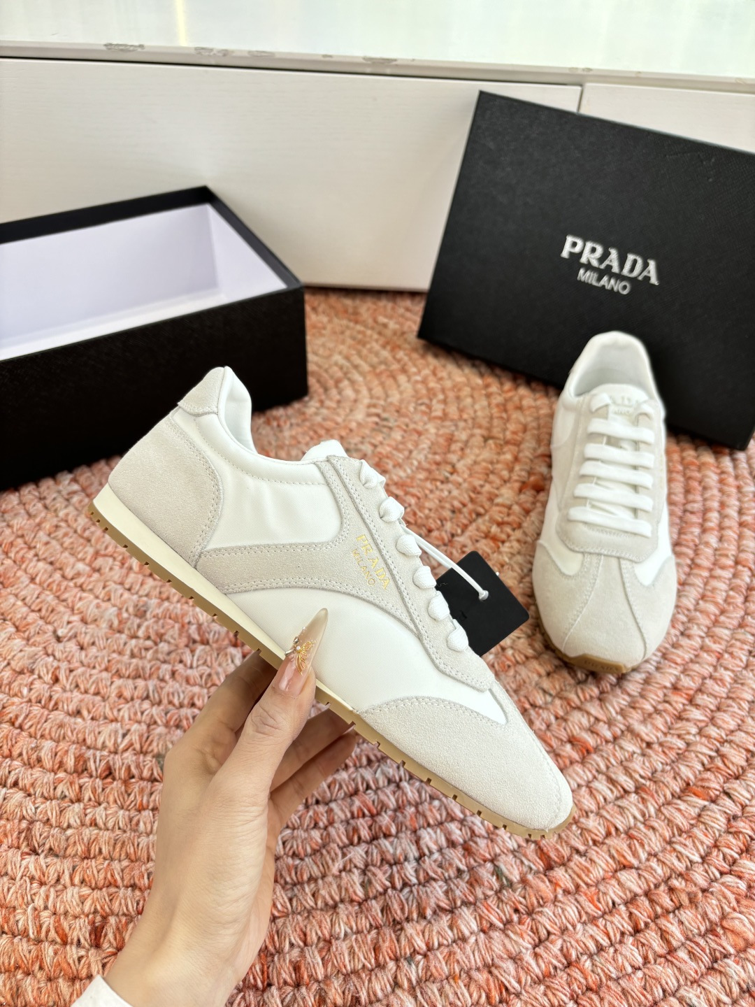 這款鞋子是AAAAA 1:1 質量(非常棒). 使用了和原版一模一樣的材料. 商標部分也保持了和普拉達/Prada一樣. 圖片拍攝是實物鞋子拍攝, 您所收到的實物保證和我們圖片一模一樣.