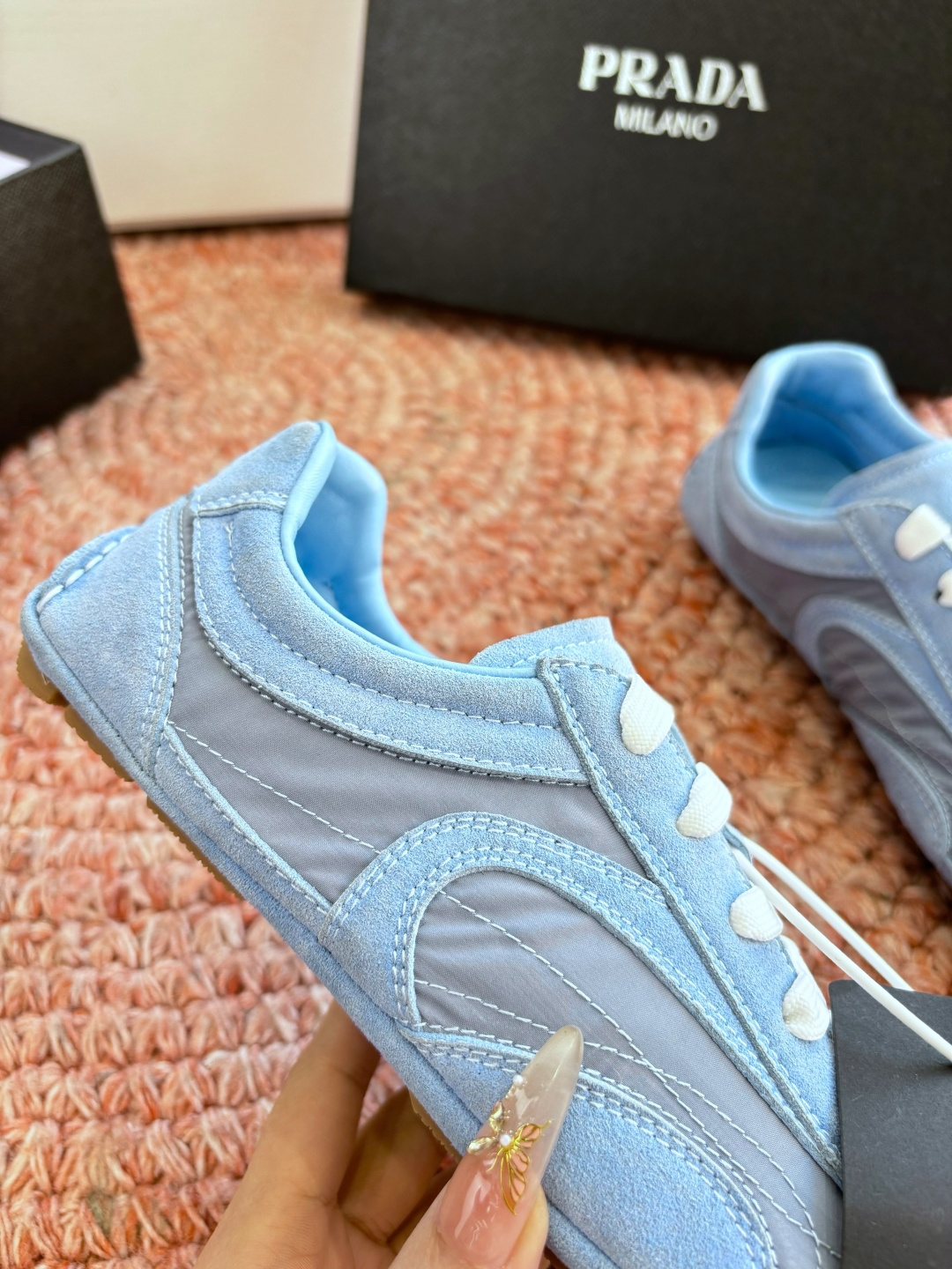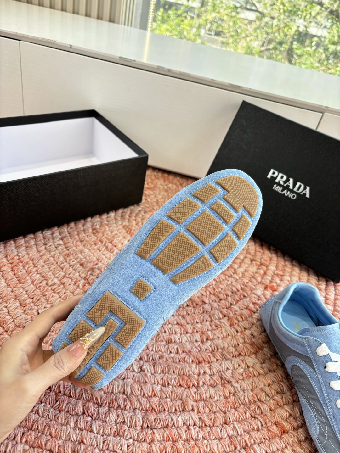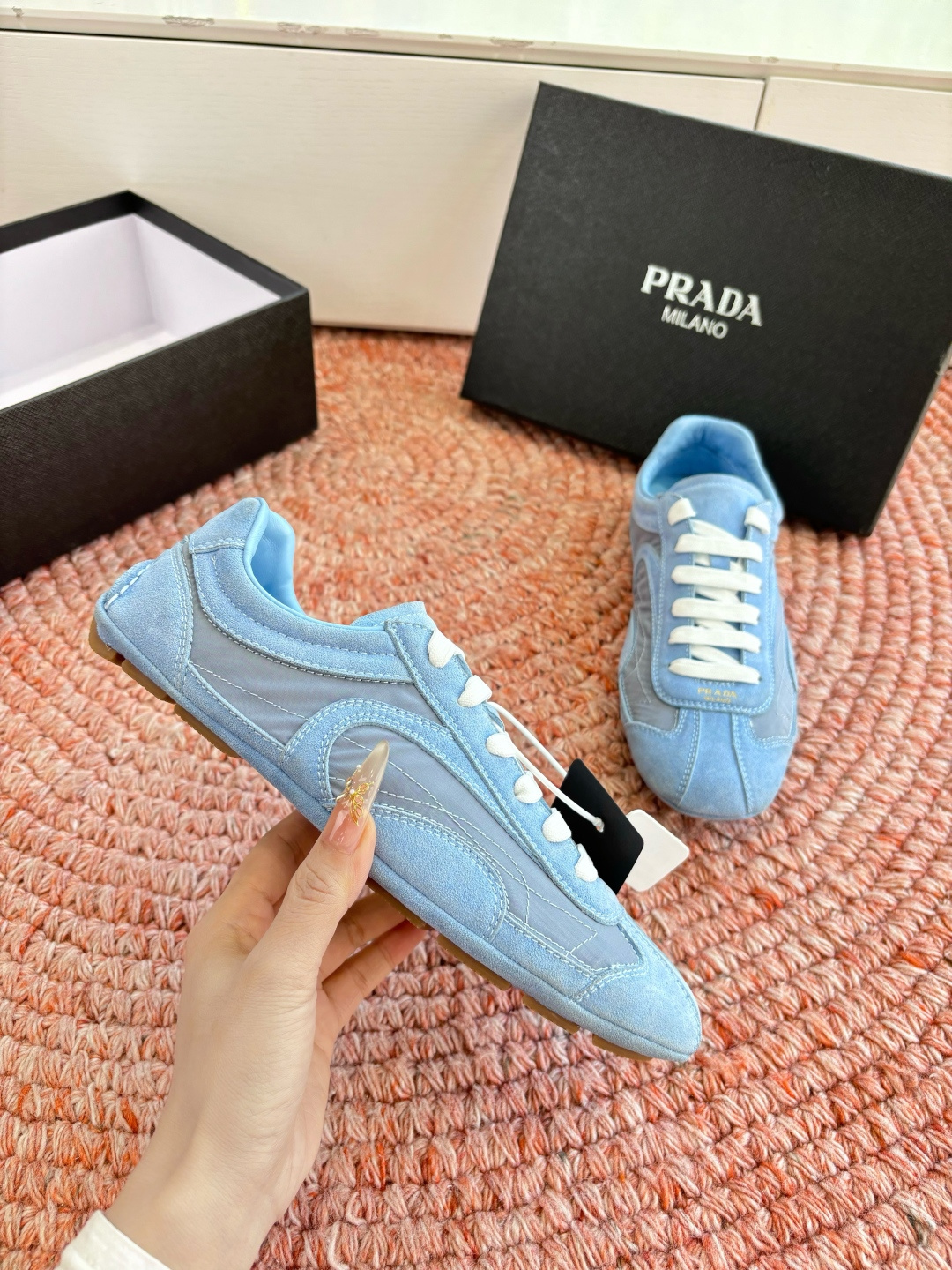 這款鞋子是AAAAA 1:1 質量(非常棒). 使用了和原版一模一樣的材料. 商標部分也保持了和普拉達/Prada一樣. 圖片拍攝是實物鞋子拍攝, 您所收到的實物保證和我們圖片一模一樣.