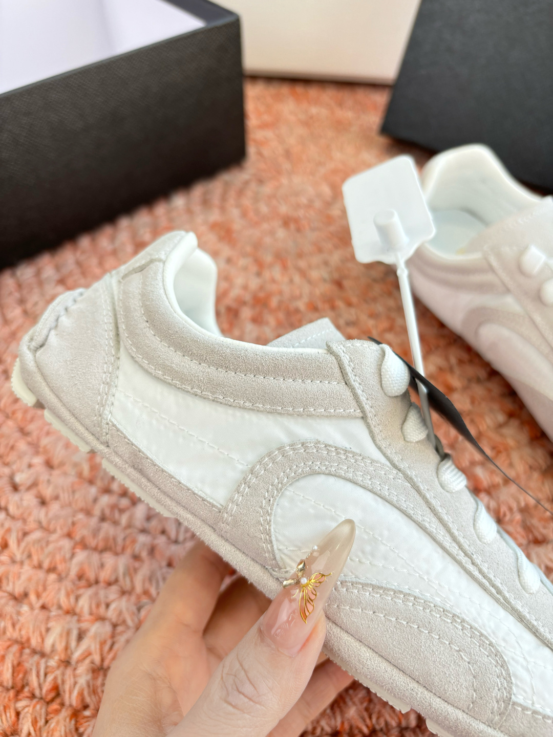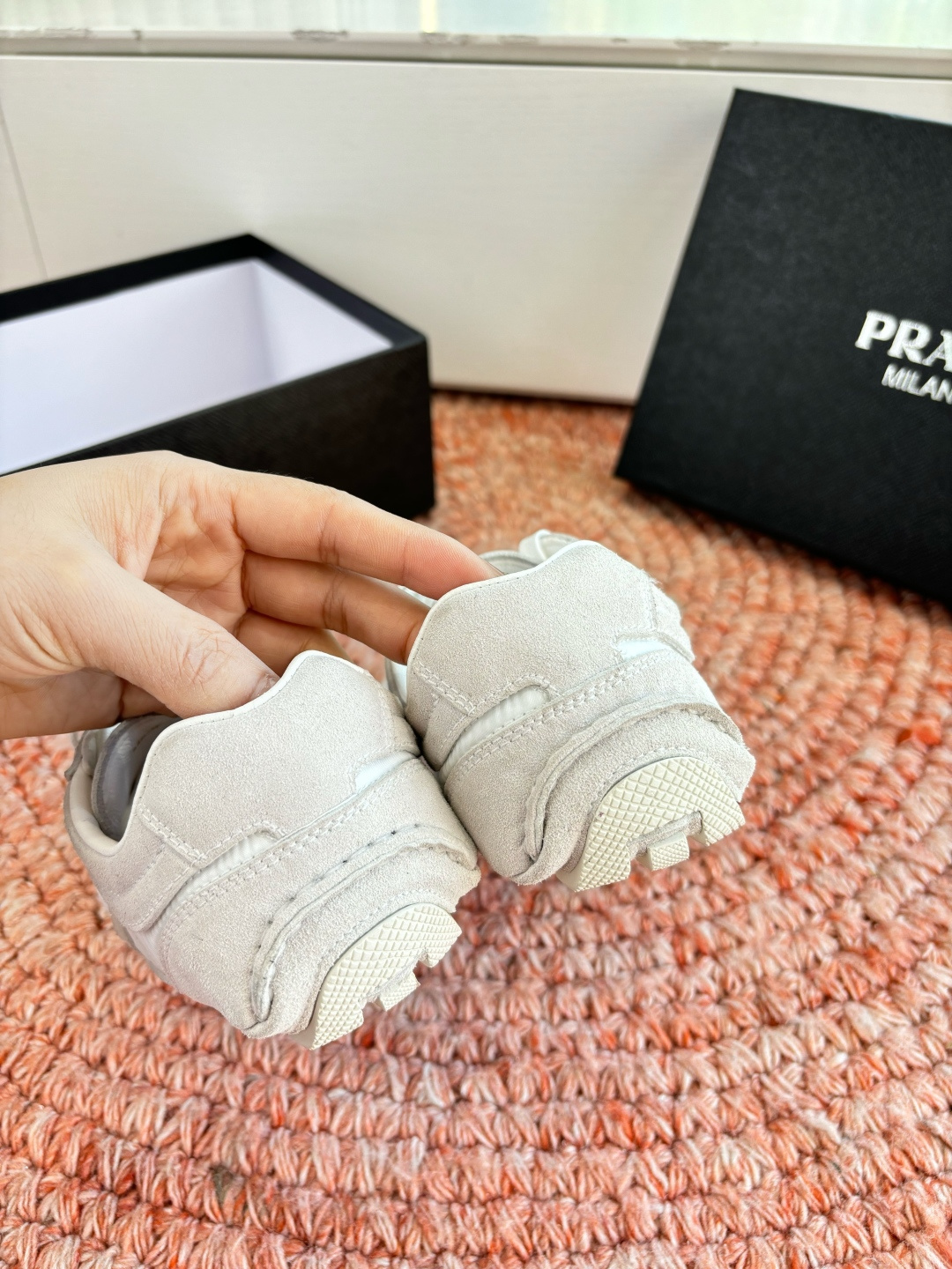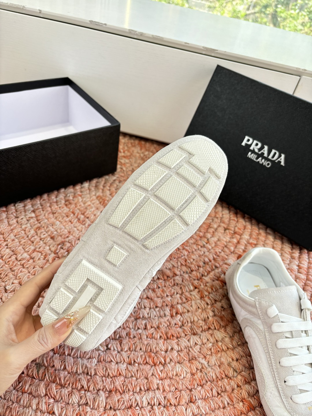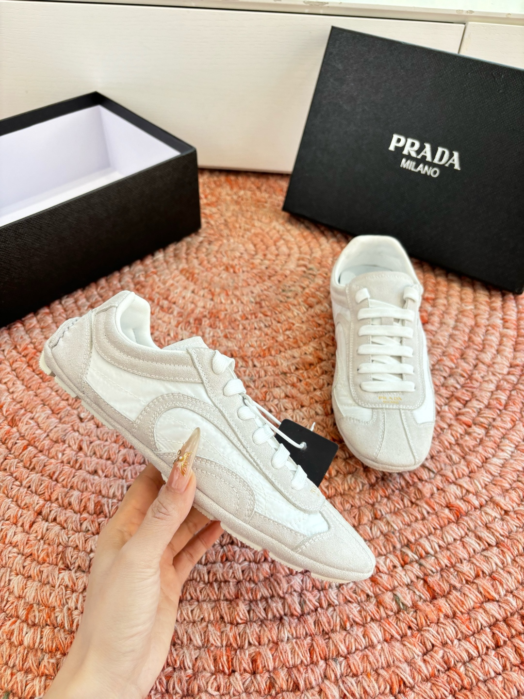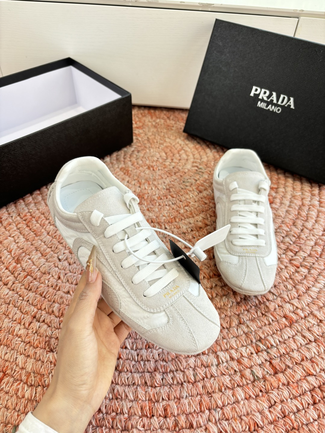 這款鞋子是AAAAA 1:1 質量(非常棒). 使用了和原版一模一樣的材料. 商標部分也保持了和普拉達/Prada一樣. 圖片拍攝是實物鞋子拍攝, 您所收到的實物保證和我們圖片一模一樣.