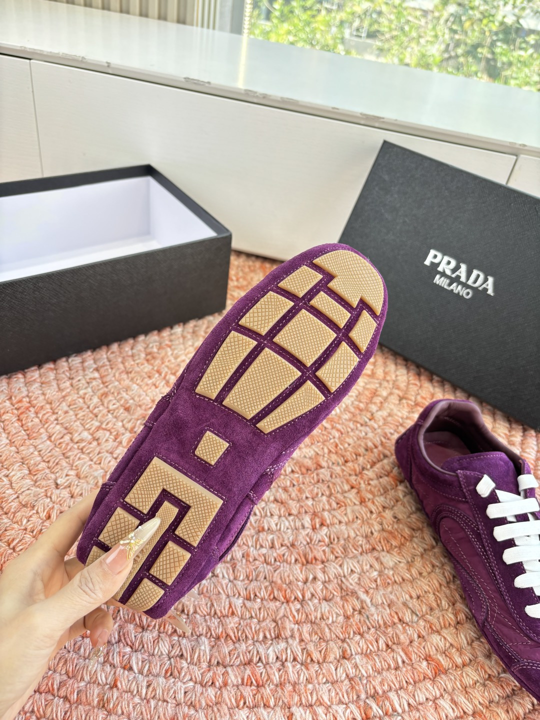 這款鞋子是AAAAA 1:1 質量(非常棒). 使用了和原版一模一樣的材料. 商標部分也保持了和普拉達/Prada一樣. 圖片拍攝是實物鞋子拍攝, 您所收到的實物保證和我們圖片一模一樣.