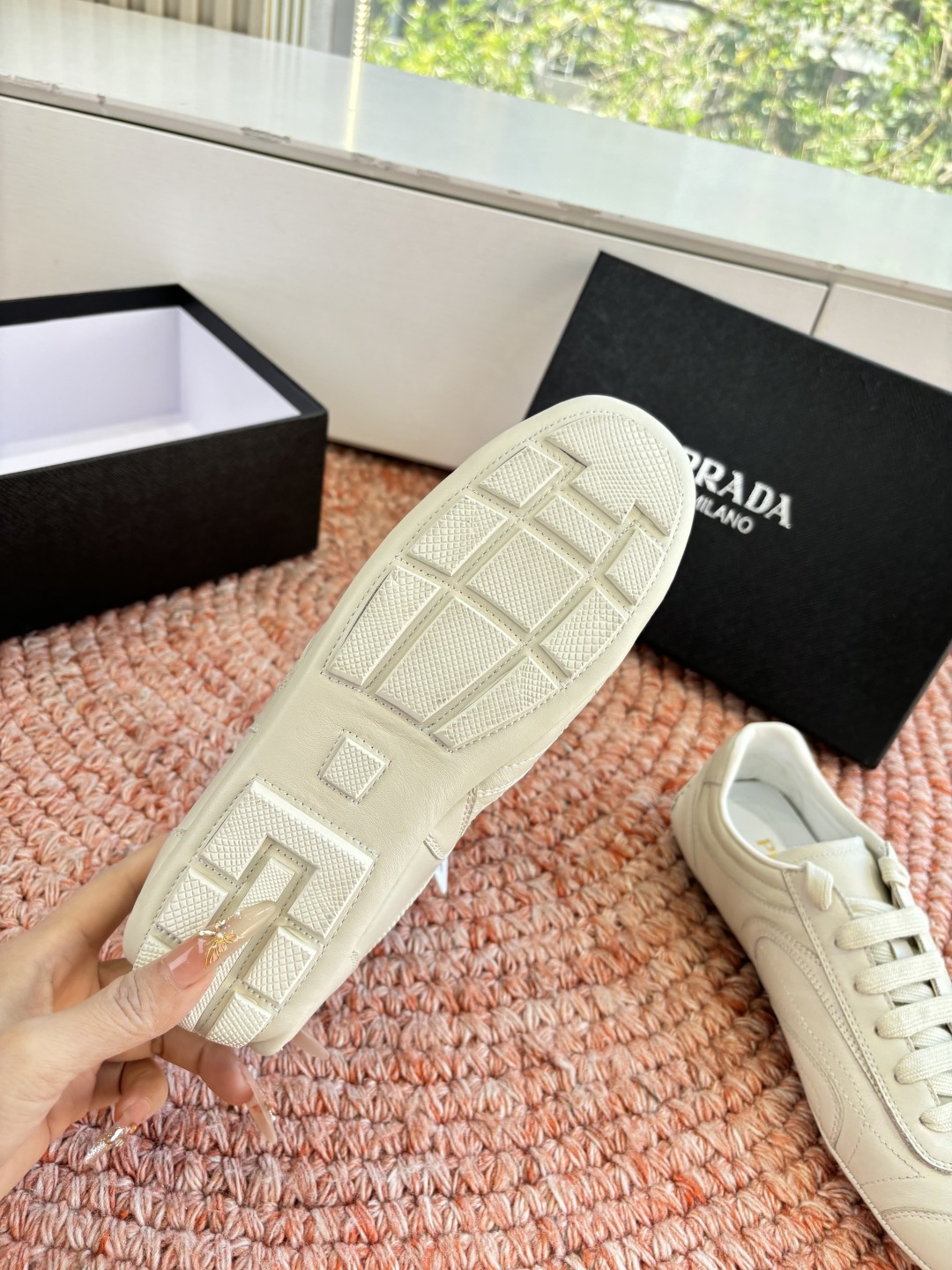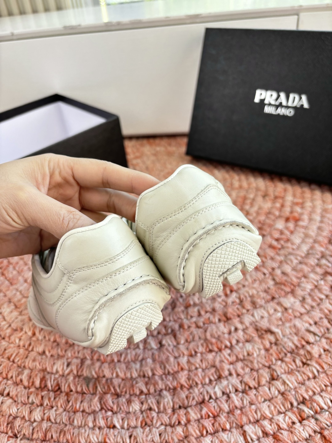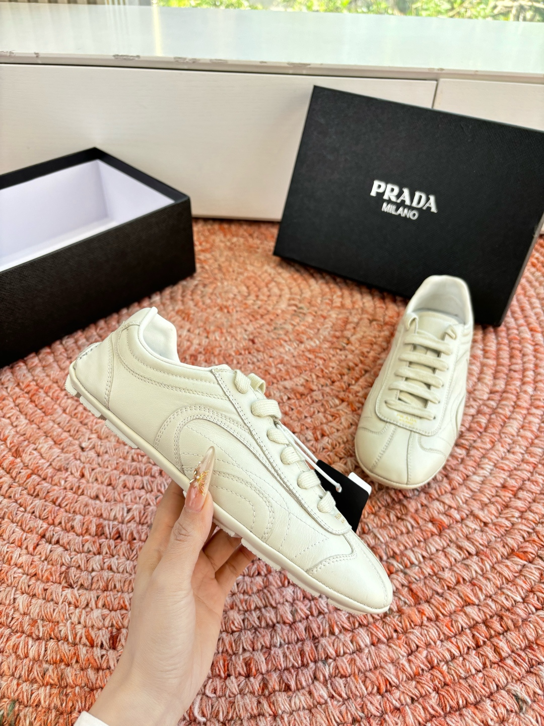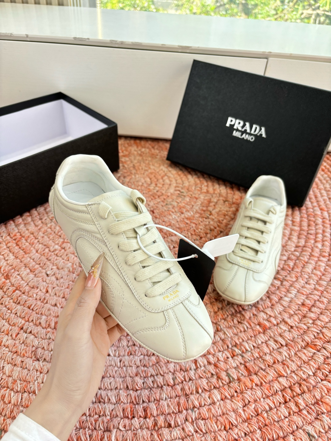 這款鞋子是AAAAA 1:1 質量(非常棒). 使用了和原版一模一樣的材料. 商標部分也保持了和普拉達/Prada一樣. 圖片拍攝是實物鞋子拍攝, 您所收到的實物保證和我們圖片一模一樣.