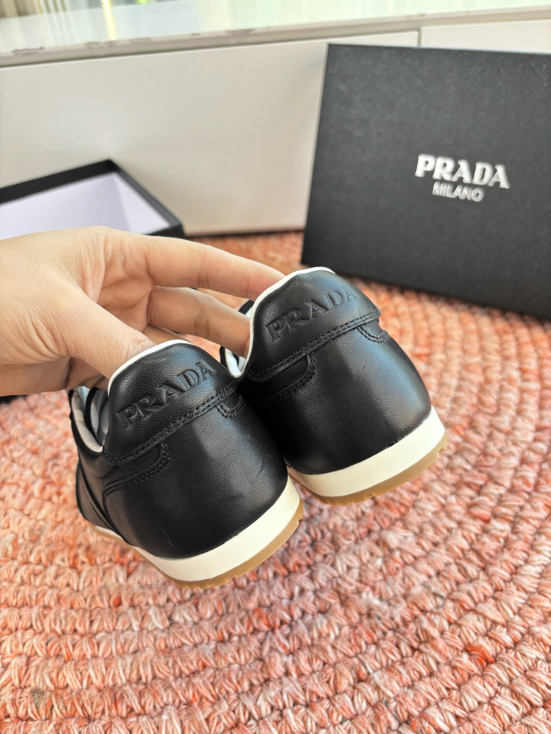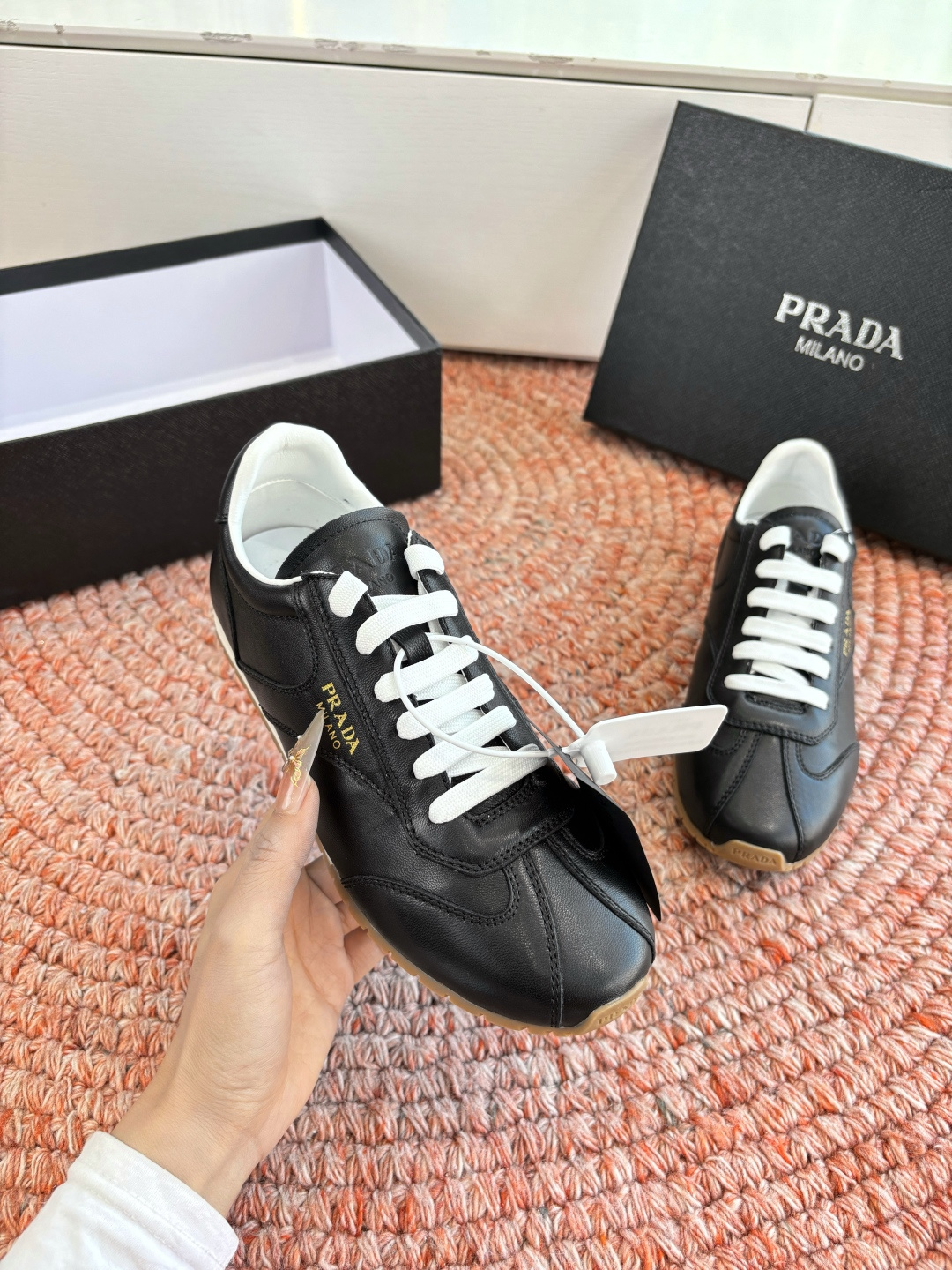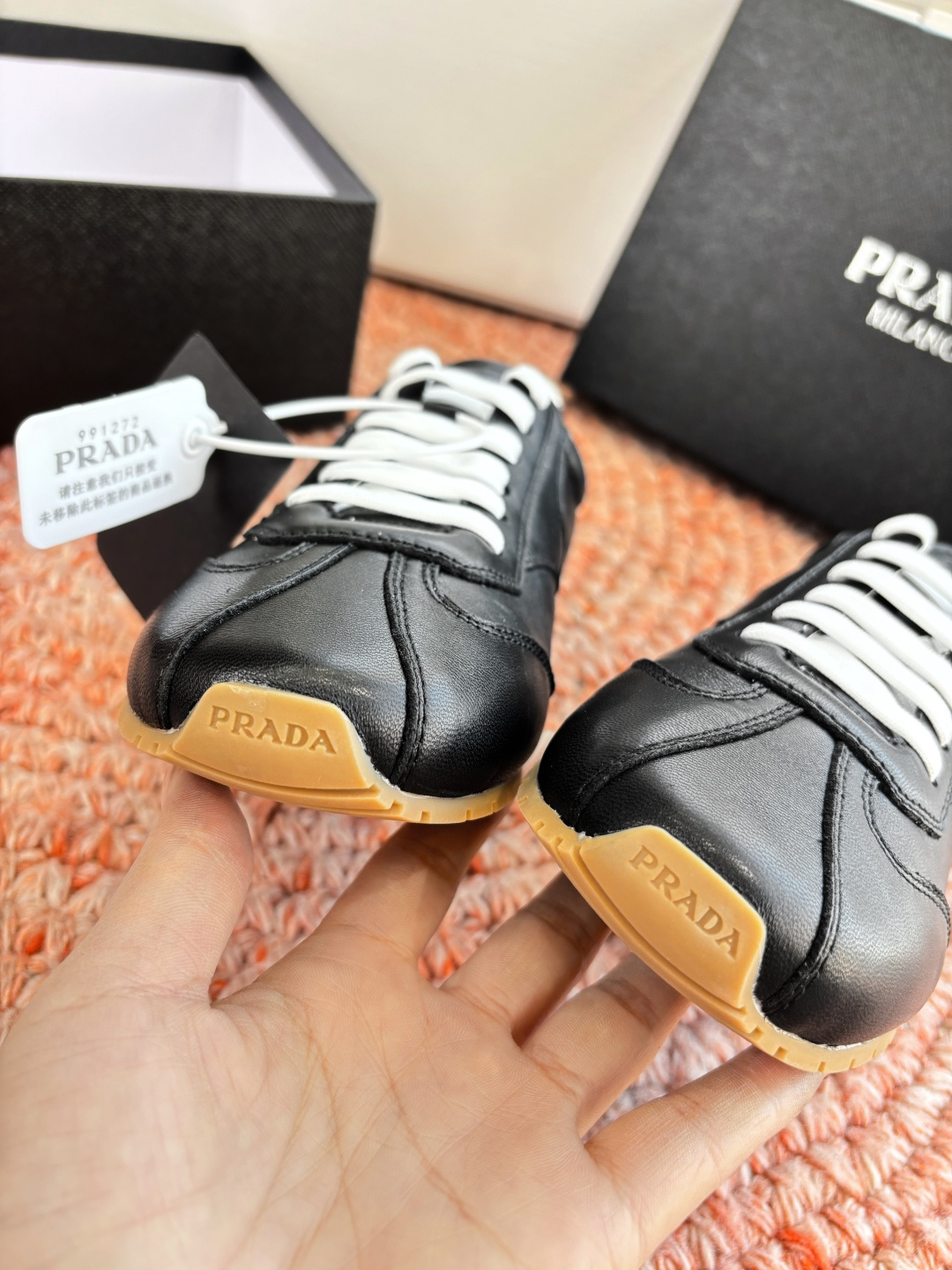 這款鞋子是AAAAA 1:1 質量(非常棒). 使用了和原版一模一樣的材料. 商標部分也保持了和普拉達/Prada一樣. 圖片拍攝是實物鞋子拍攝, 您所收到的實物保證和我們圖片一模一樣.