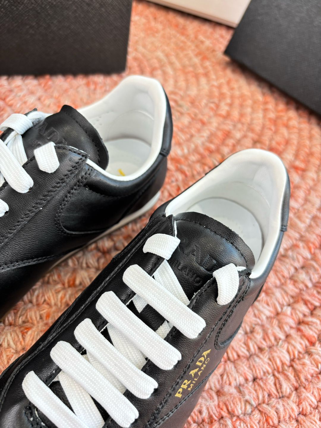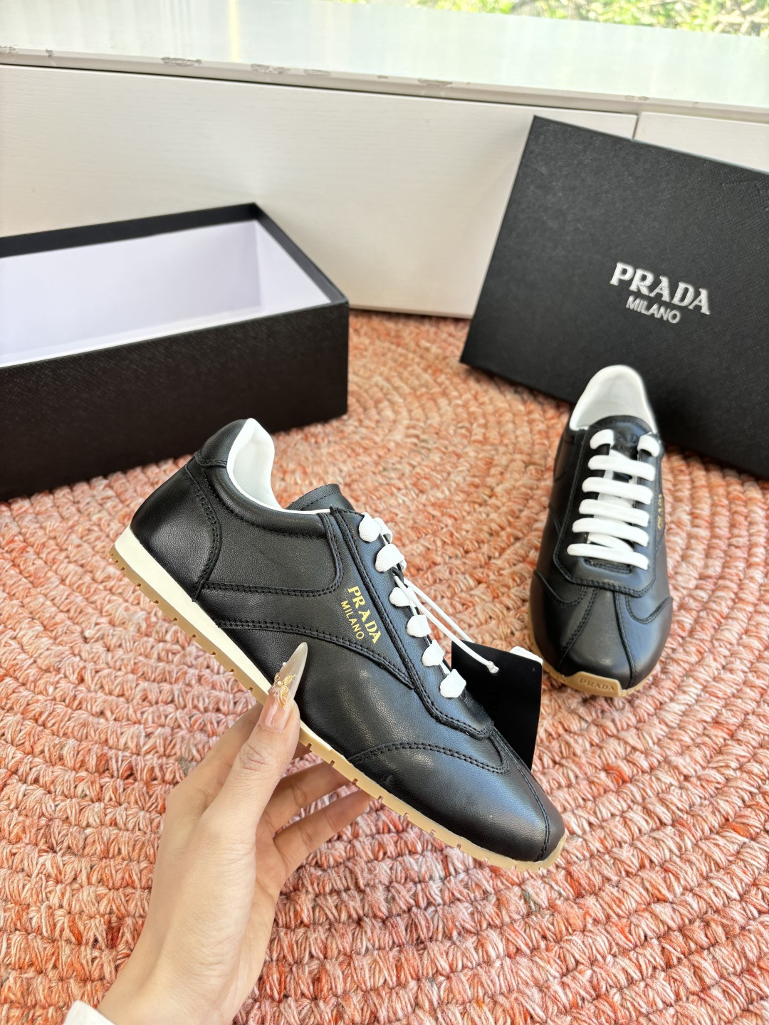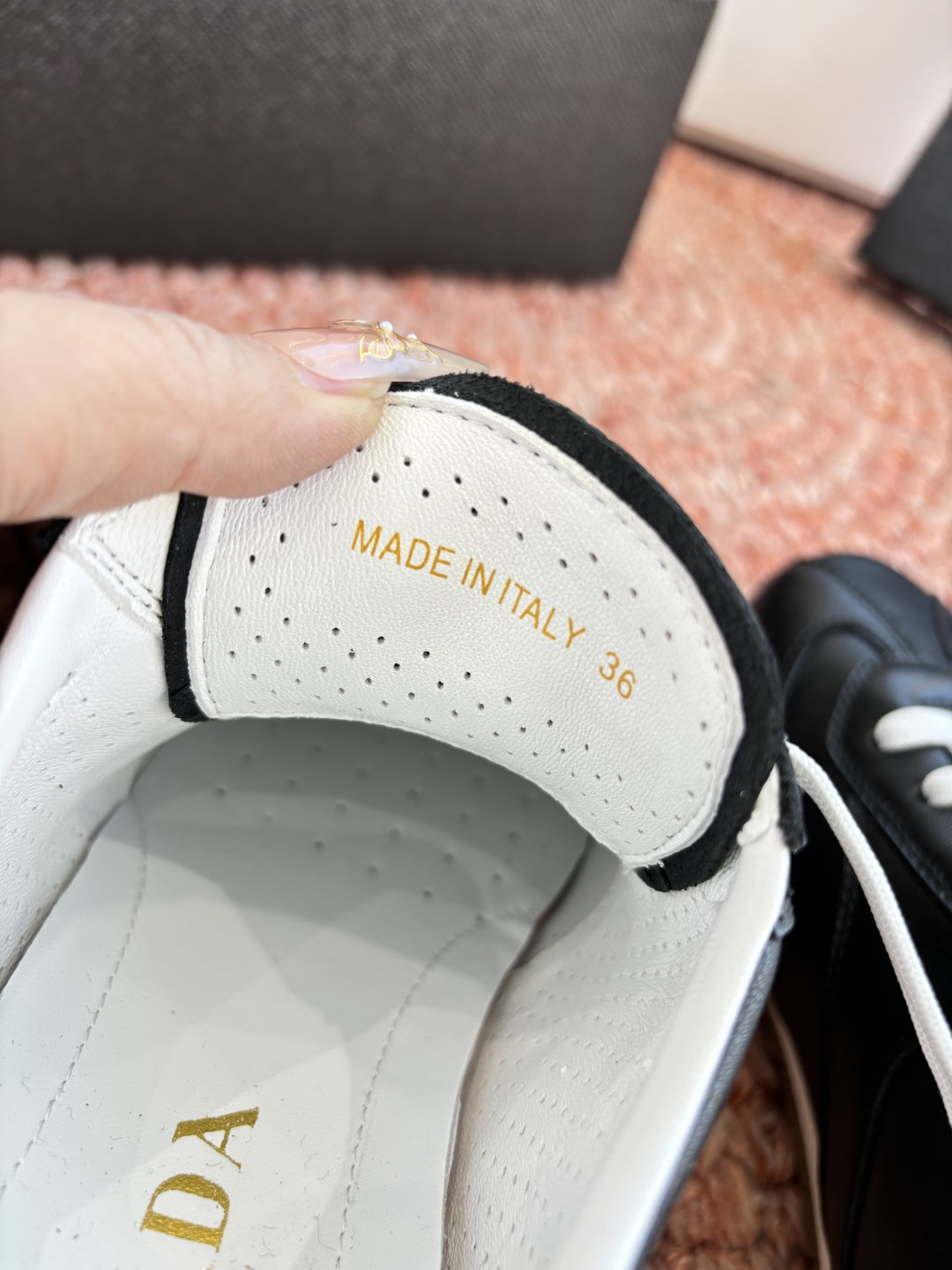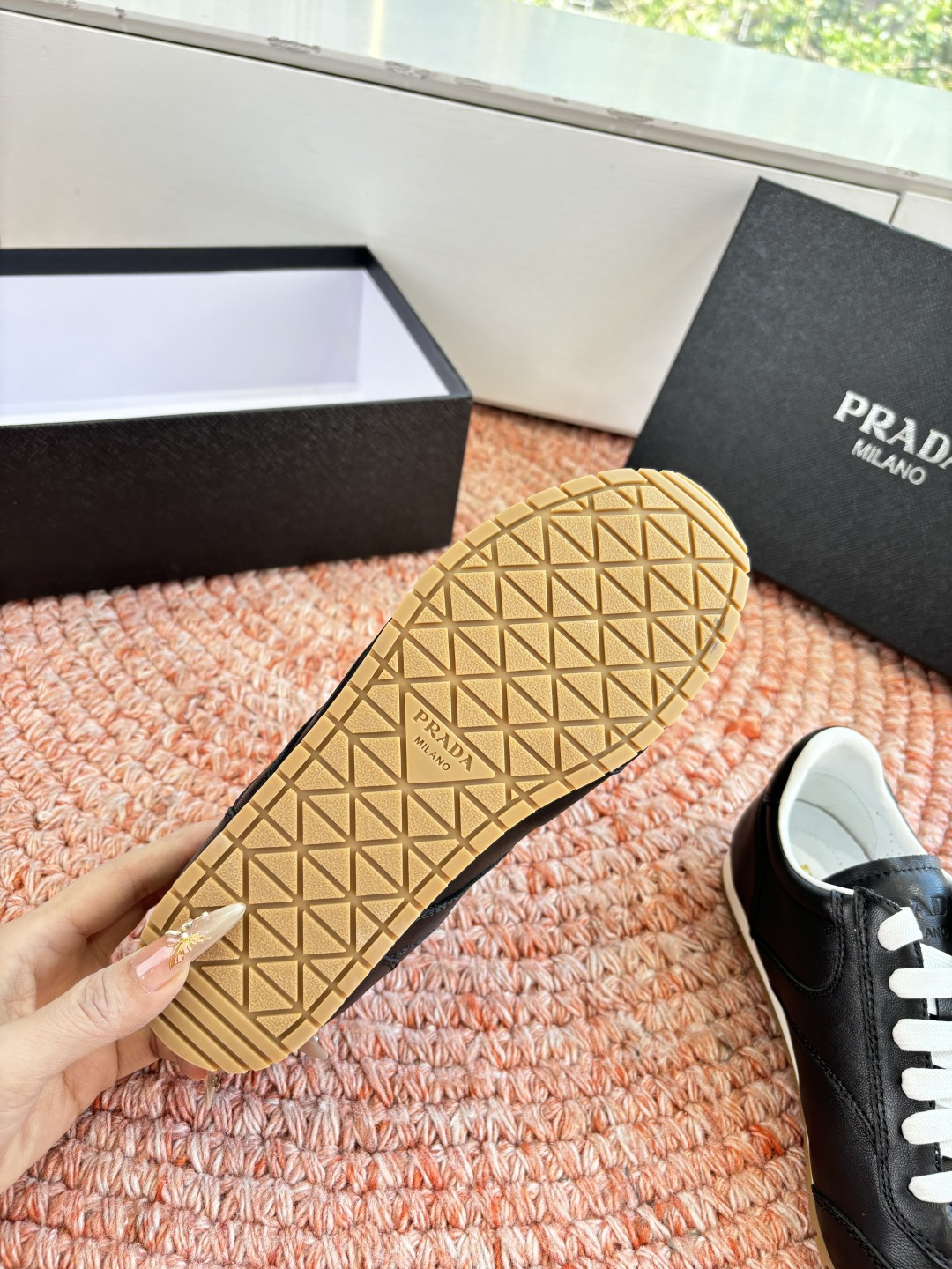 這款鞋子是AAAAA 1:1 質量(非常棒). 使用了和原版一模一樣的材料. 商標部分也保持了和普拉達/Prada一樣. 圖片拍攝是實物鞋子拍攝, 您所收到的實物保證和我們圖片一模一樣.