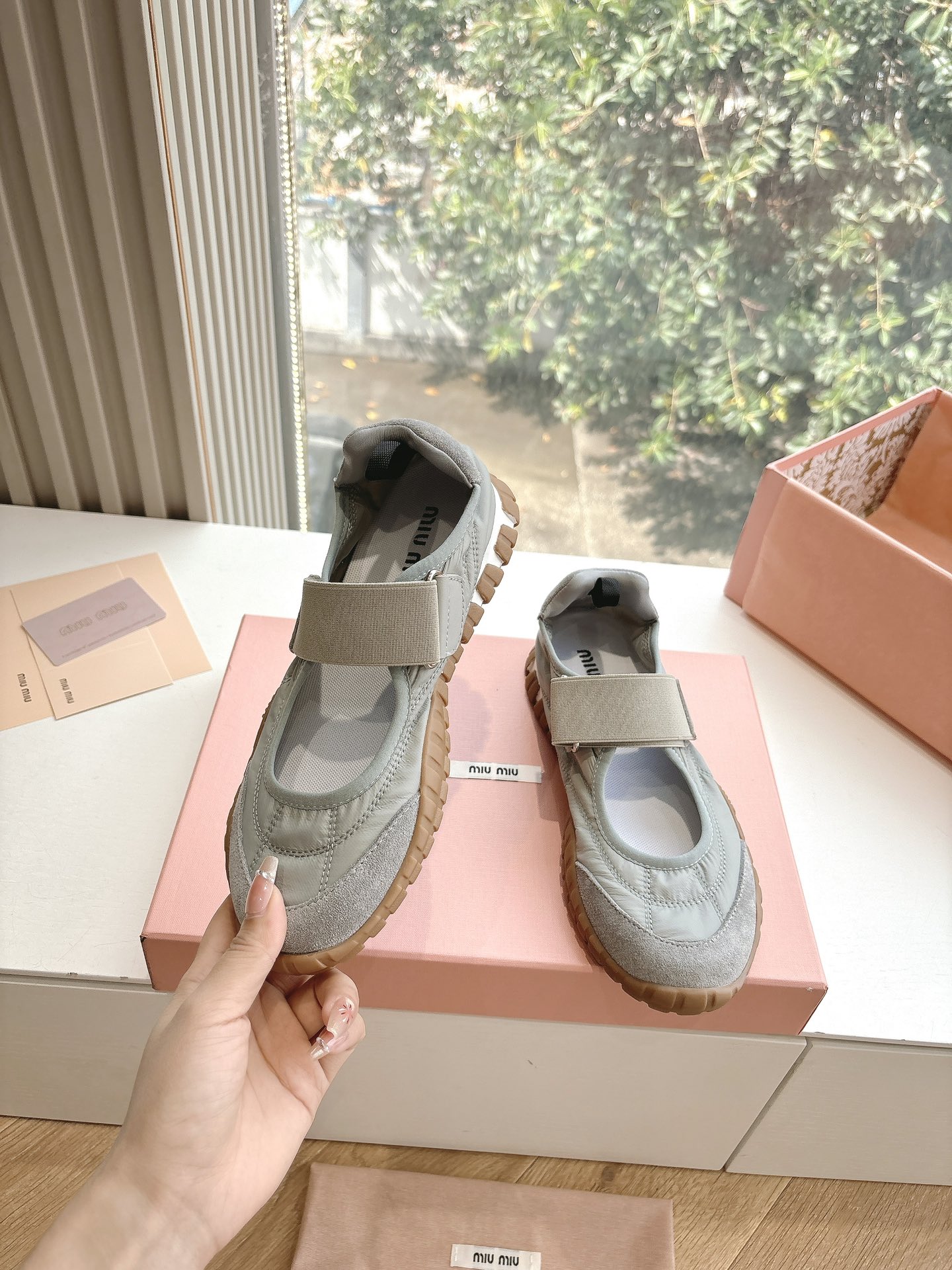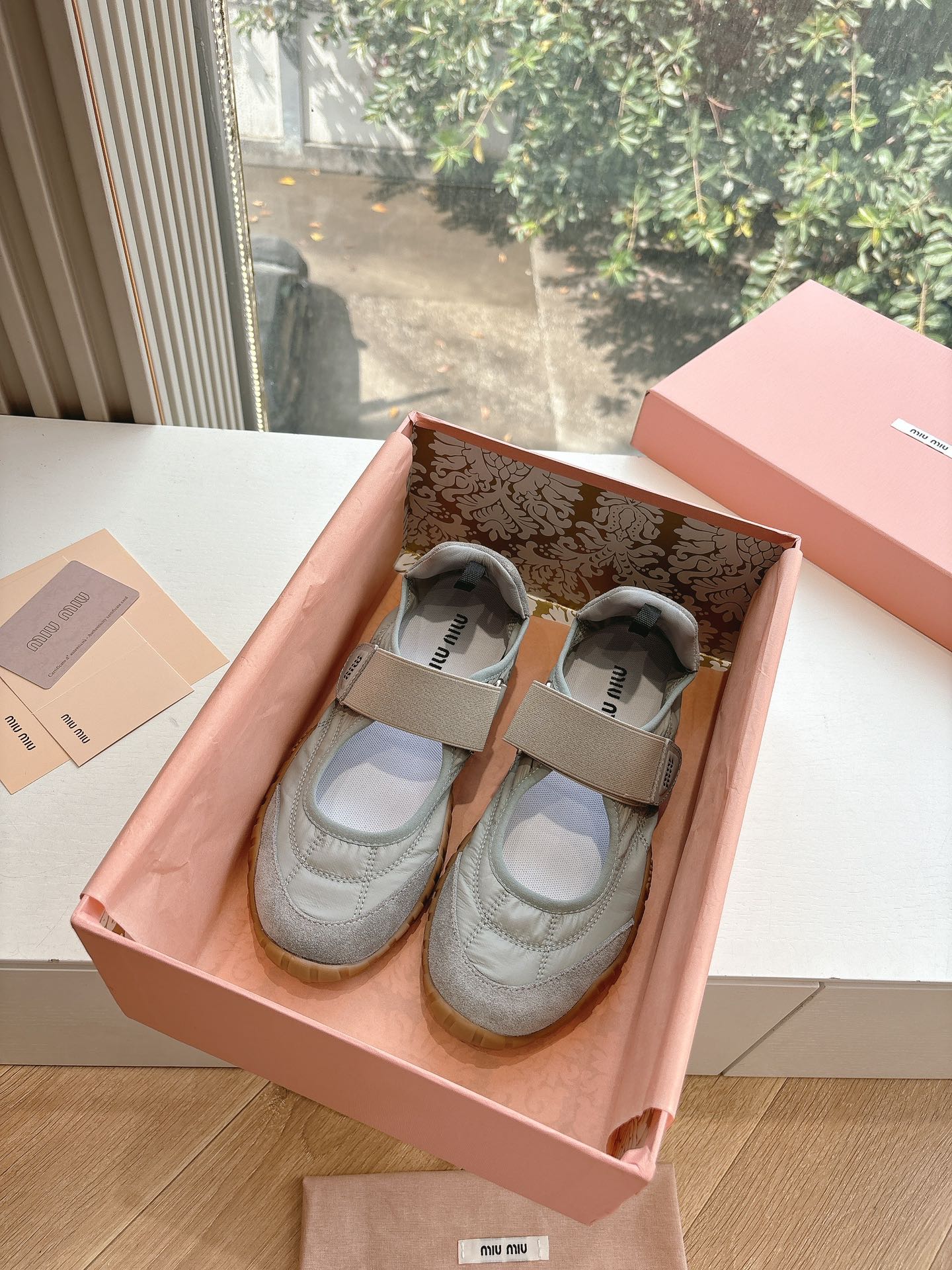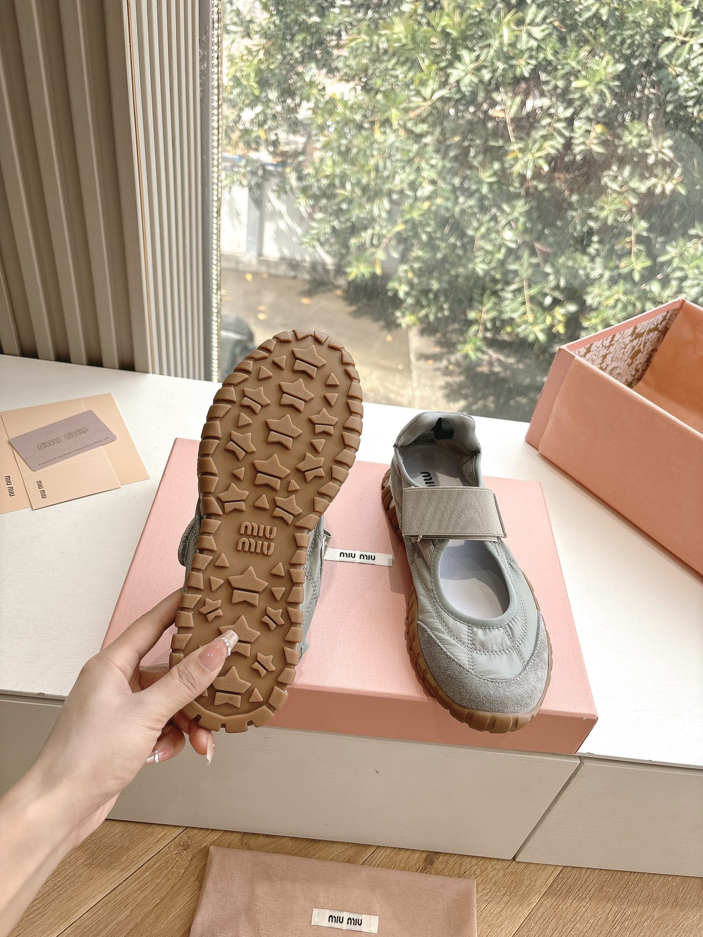 這款鞋子是AAAAA 1:1 質量(非常棒). 使用了和原版一模一樣的材料. 商標部分也保持了和繆繆/Miu Miu一樣. 圖片拍攝是實物鞋子拍攝, 您所收到的實物保證和我們圖片一模一樣.