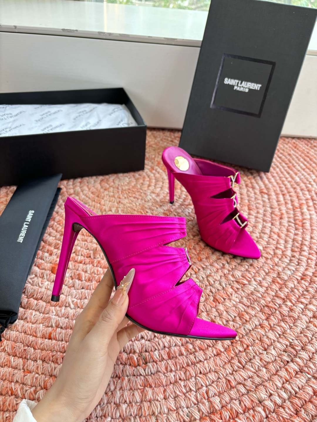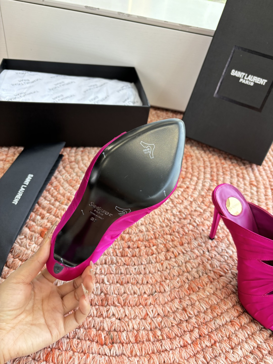 這款鞋子是AAAAA 1:1 質量(非常棒). 使用了和原版一模一樣的材料. 商標部分也保持了和聖羅蘭/Saint Laurent一樣. 圖片拍攝是實物鞋子拍攝, 您所收到的實物保證和我們圖片一模一樣.