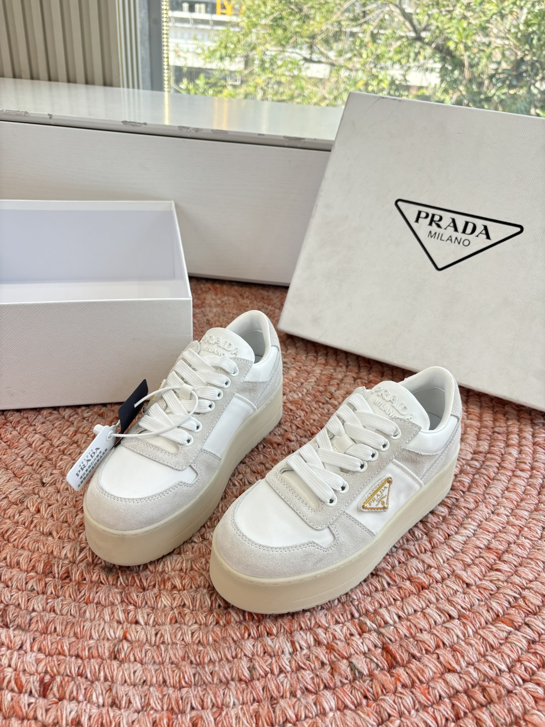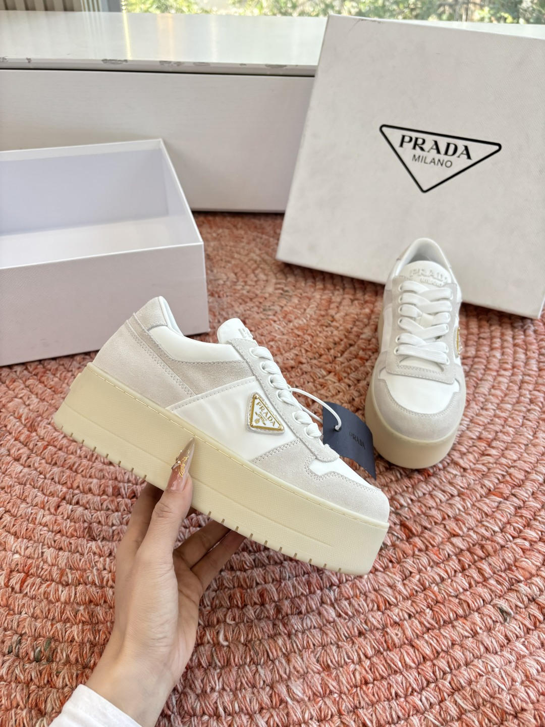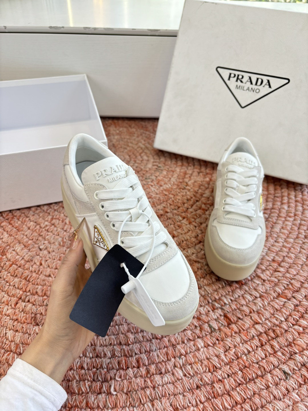 這款鞋子是AAAAA 1:1 質量(非常棒). 使用了和原版一模一樣的材料. 商標部分也保持了和普拉達/Prada一樣. 圖片拍攝是實物鞋子拍攝, 您所收到的實物保證和我們圖片一模一樣.