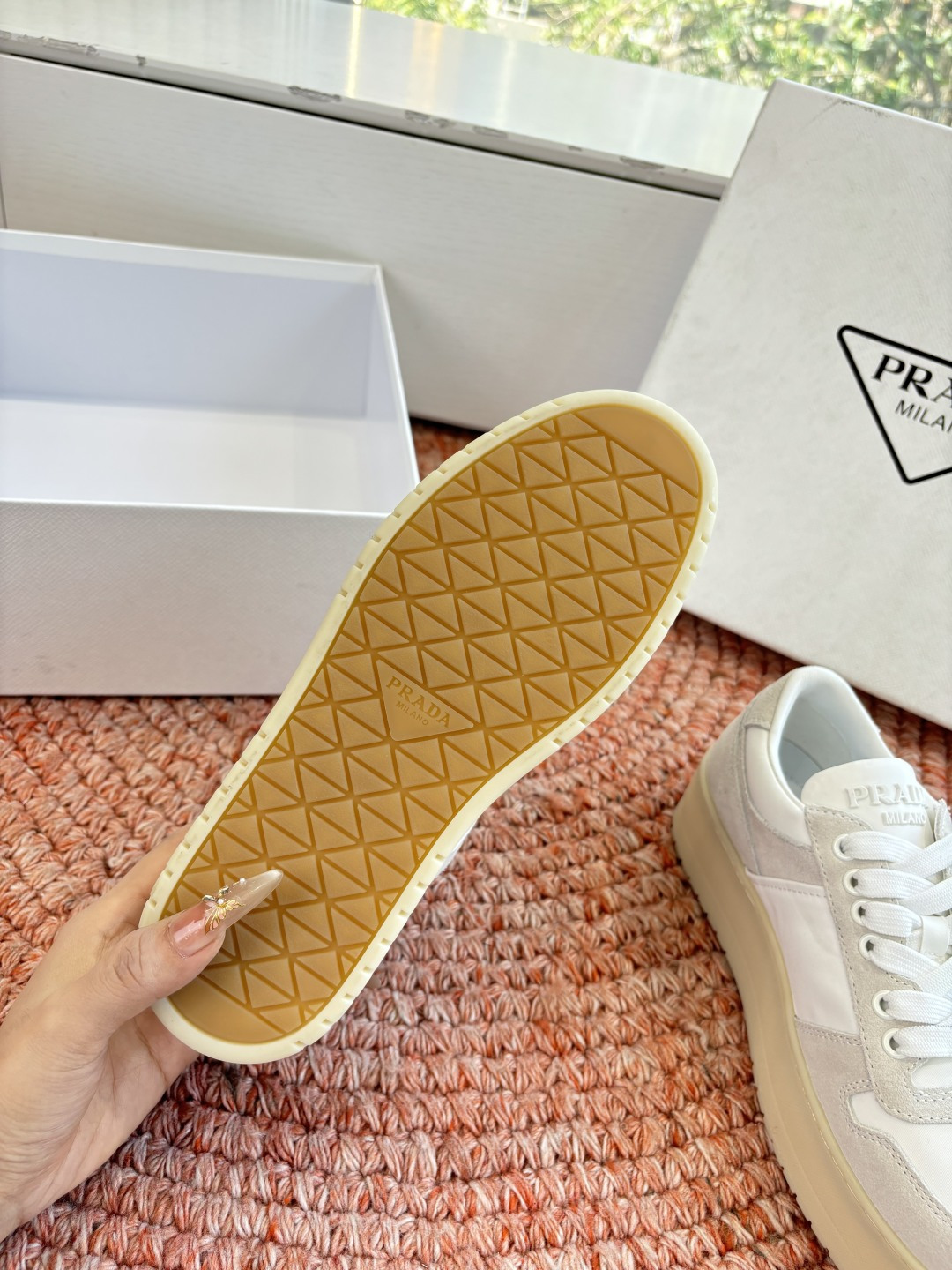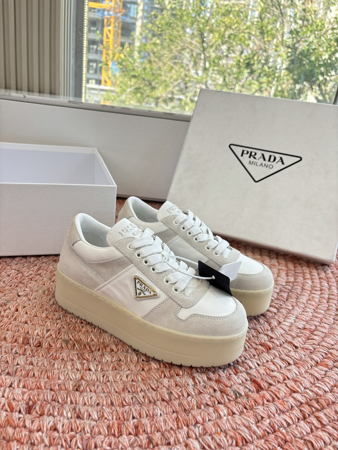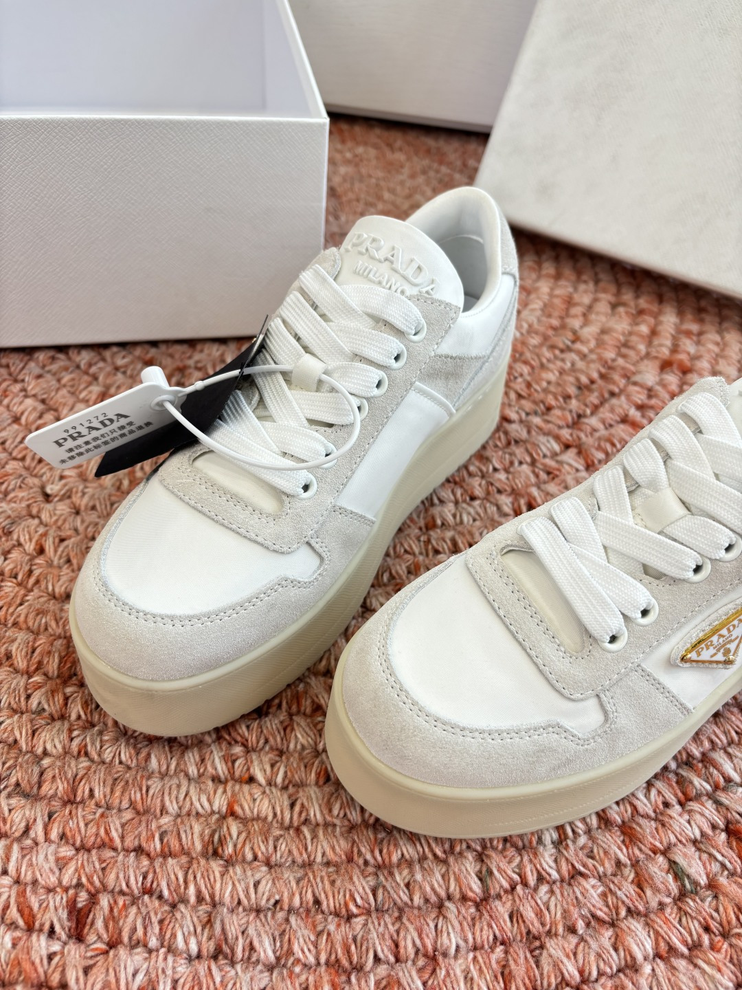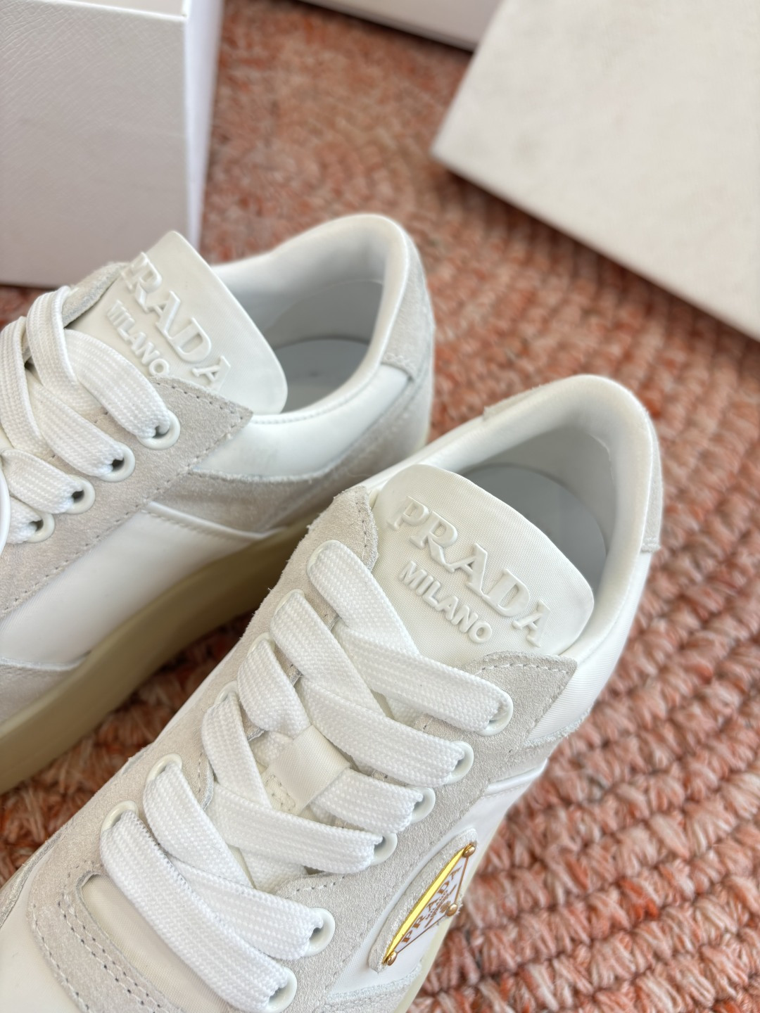 這款鞋子是AAAAA 1:1 質量(非常棒). 使用了和原版一模一樣的材料. 商標部分也保持了和普拉達/Prada一樣. 圖片拍攝是實物鞋子拍攝, 您所收到的實物保證和我們圖片一模一樣.