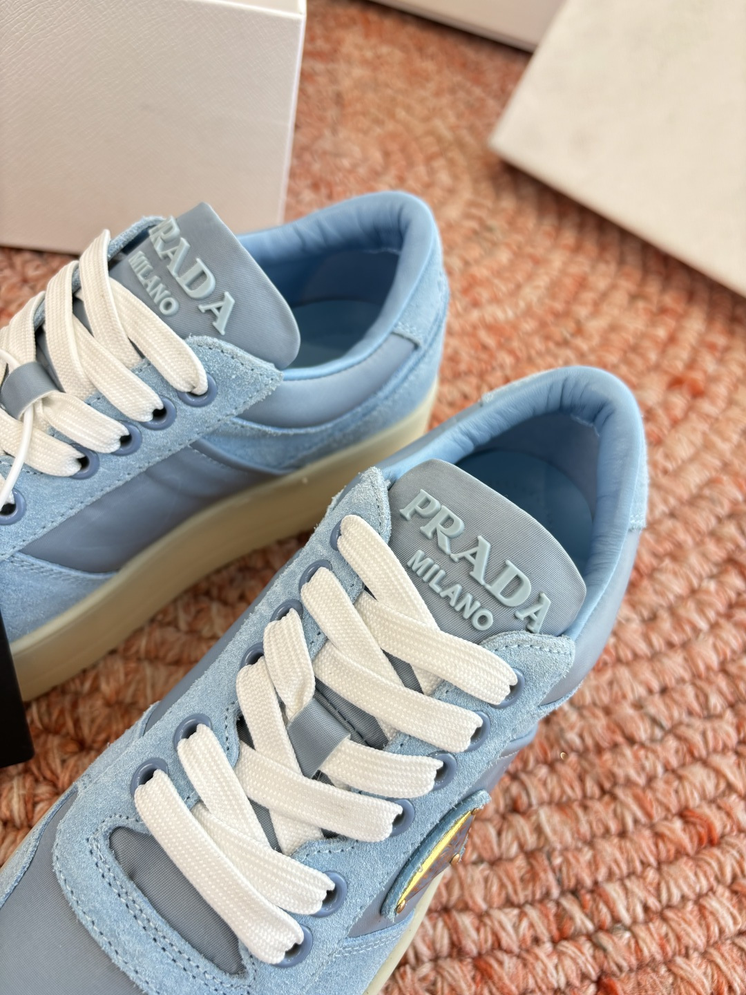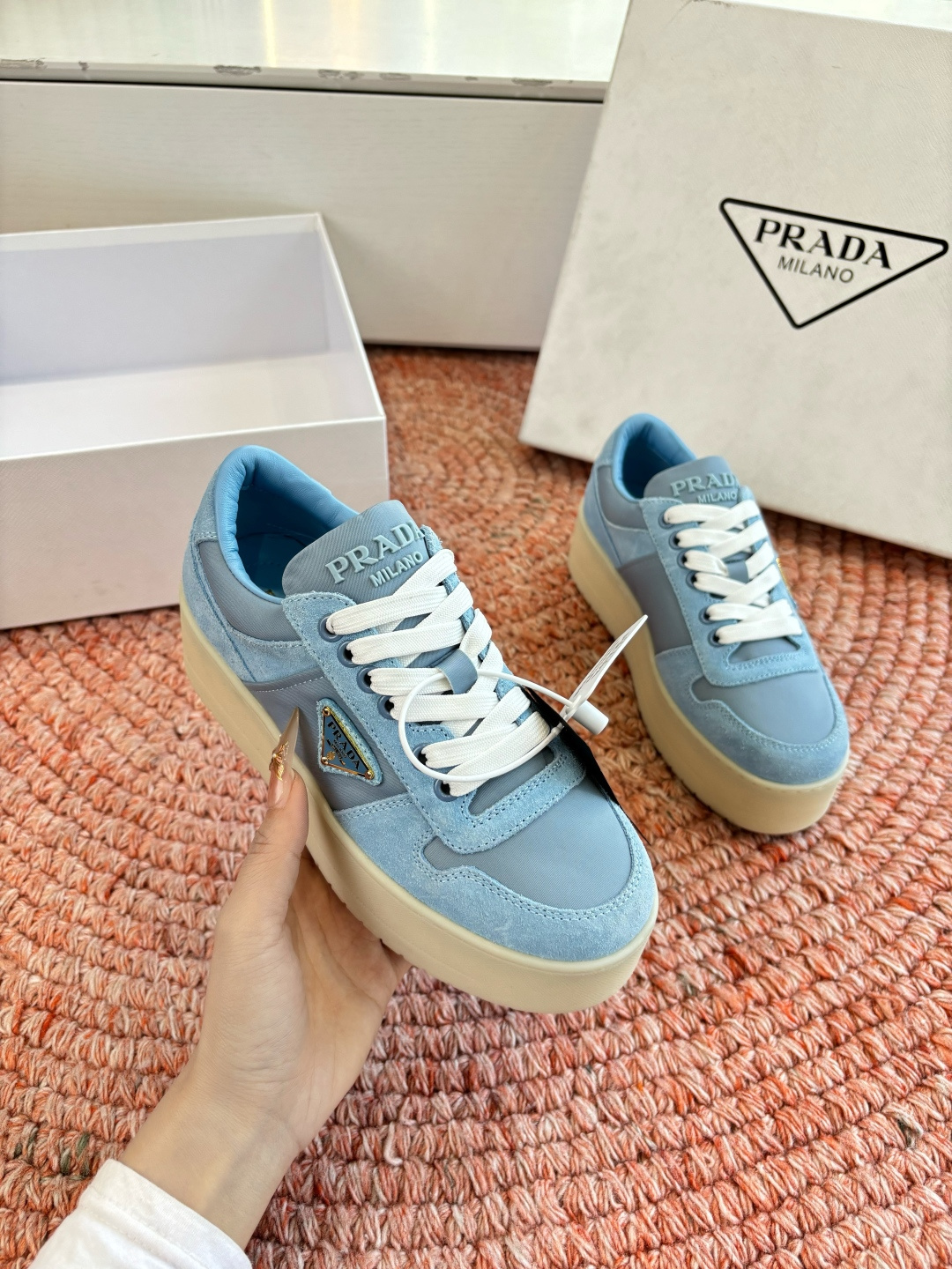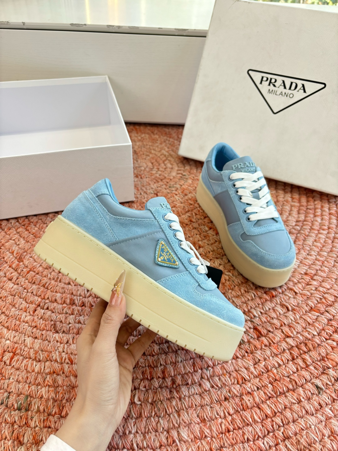 這款鞋子是AAAAA 1:1 質量(非常棒). 使用了和原版一模一樣的材料. 商標部分也保持了和普拉達/Prada一樣. 圖片拍攝是實物鞋子拍攝, 您所收到的實物保證和我們圖片一模一樣.