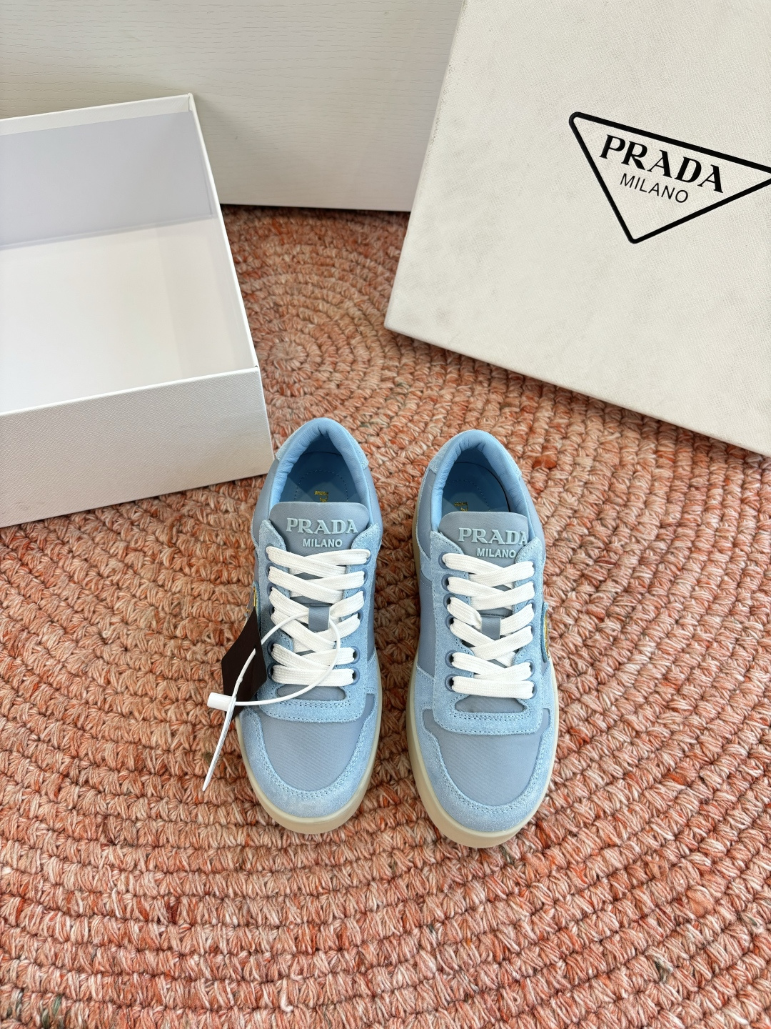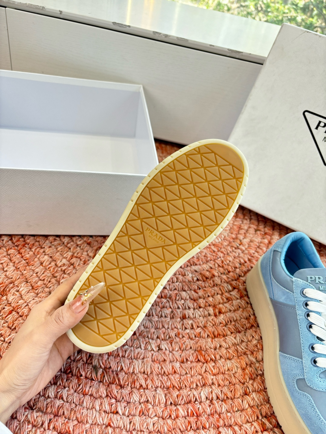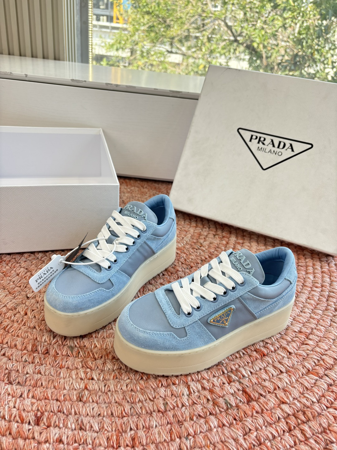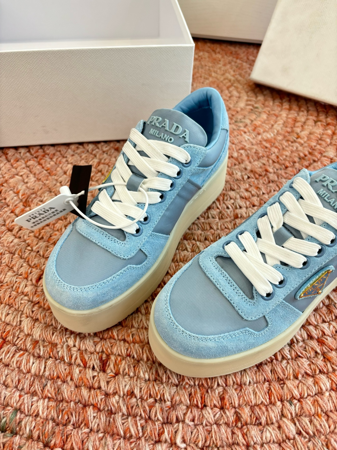 這款鞋子是AAAAA 1:1 質量(非常棒). 使用了和原版一模一樣的材料. 商標部分也保持了和普拉達/Prada一樣. 圖片拍攝是實物鞋子拍攝, 您所收到的實物保證和我們圖片一模一樣.