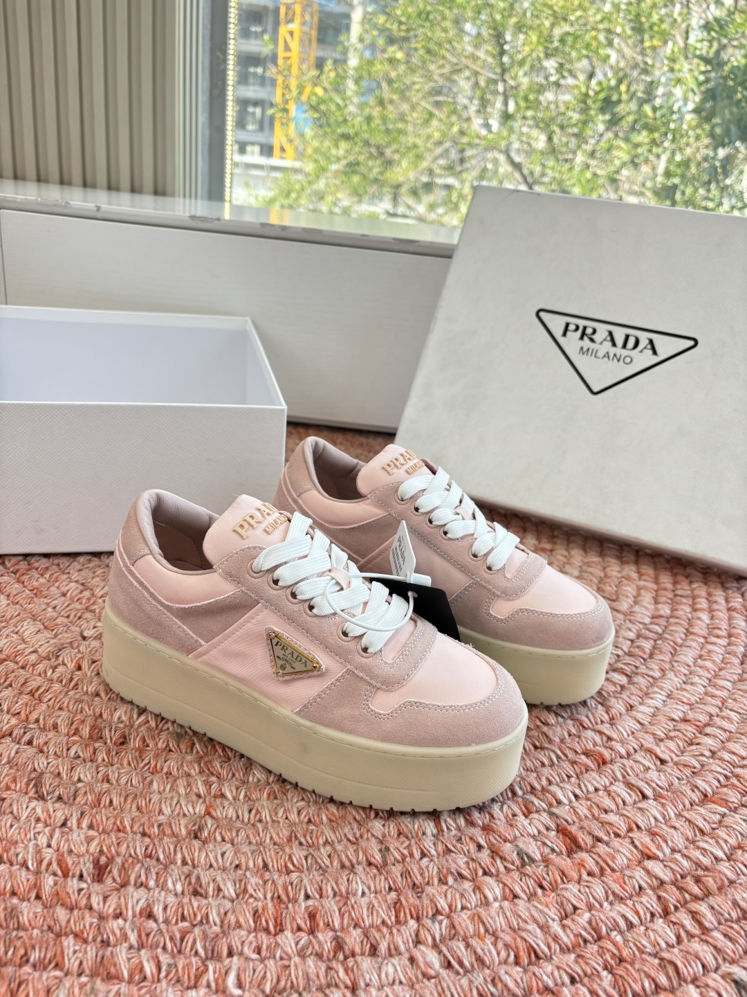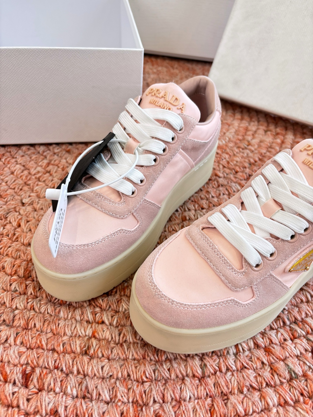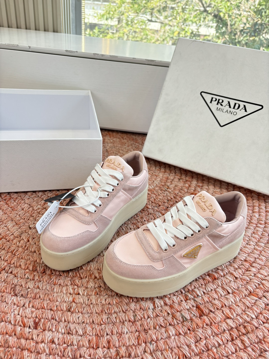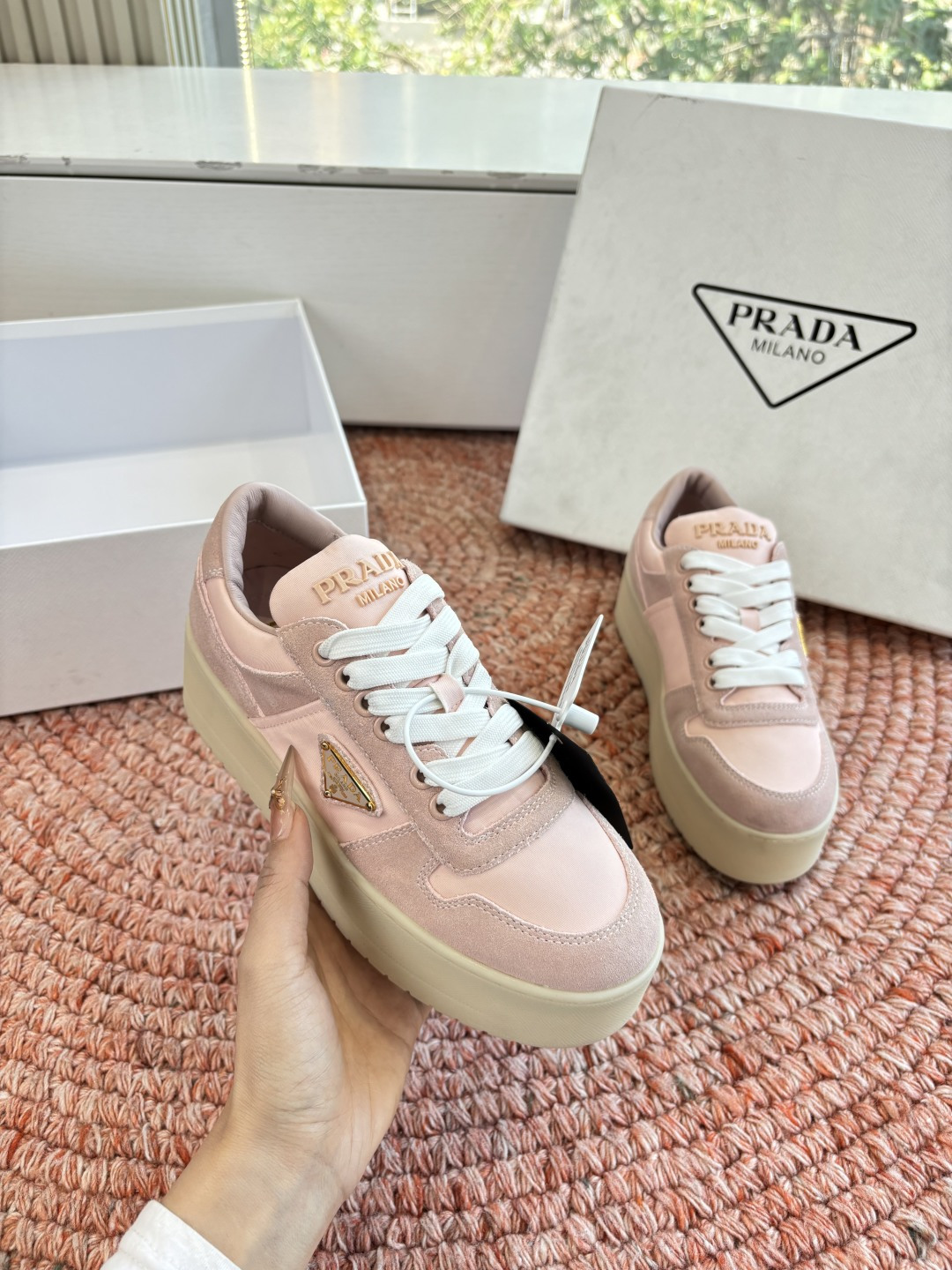 這款鞋子是AAAAA 1:1 質量(非常棒). 使用了和原版一模一樣的材料. 商標部分也保持了和普拉達/Prada一樣. 圖片拍攝是實物鞋子拍攝, 您所收到的實物保證和我們圖片一模一樣.