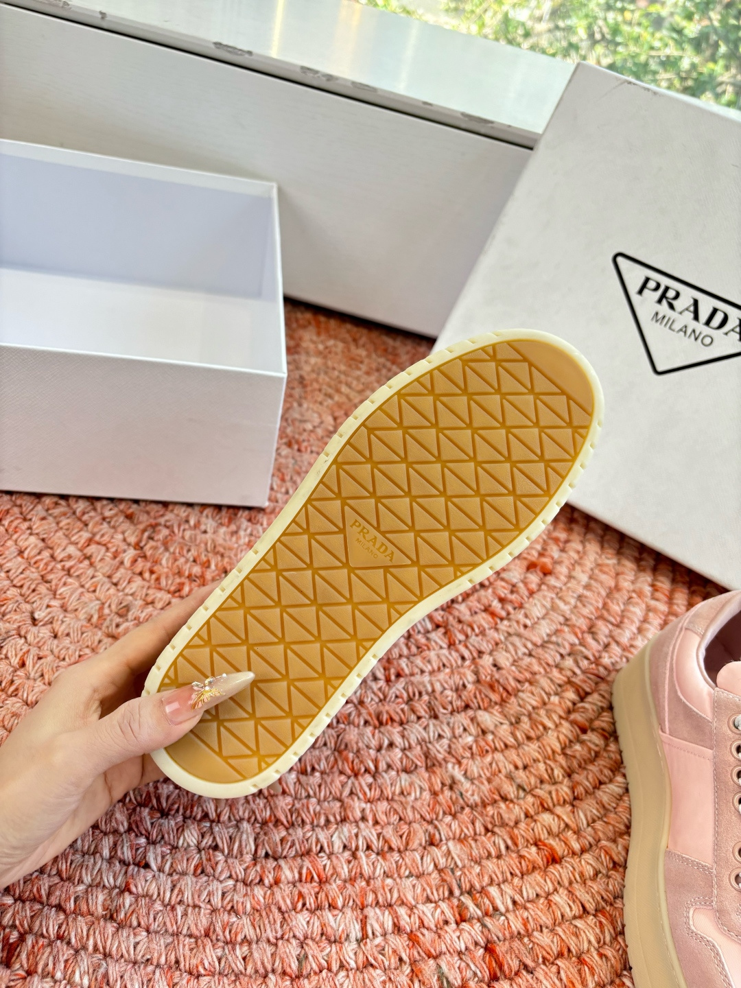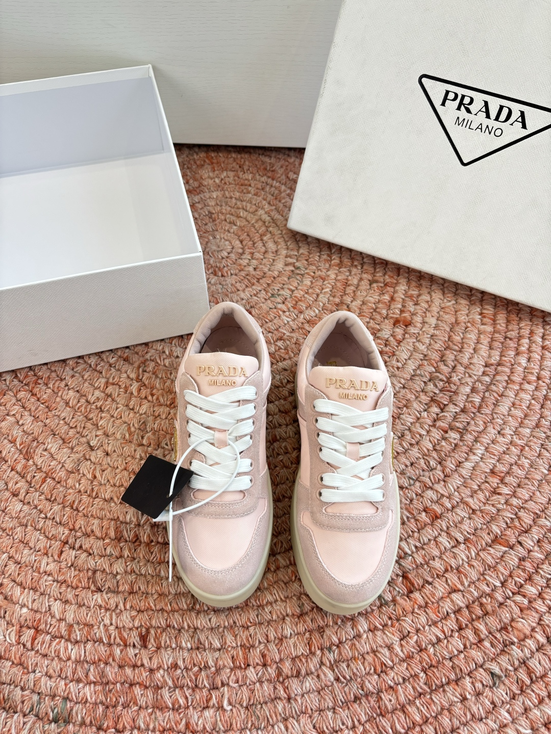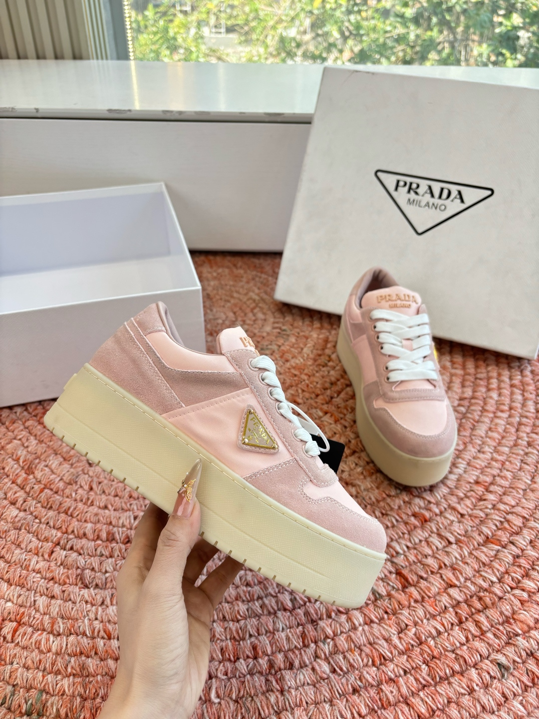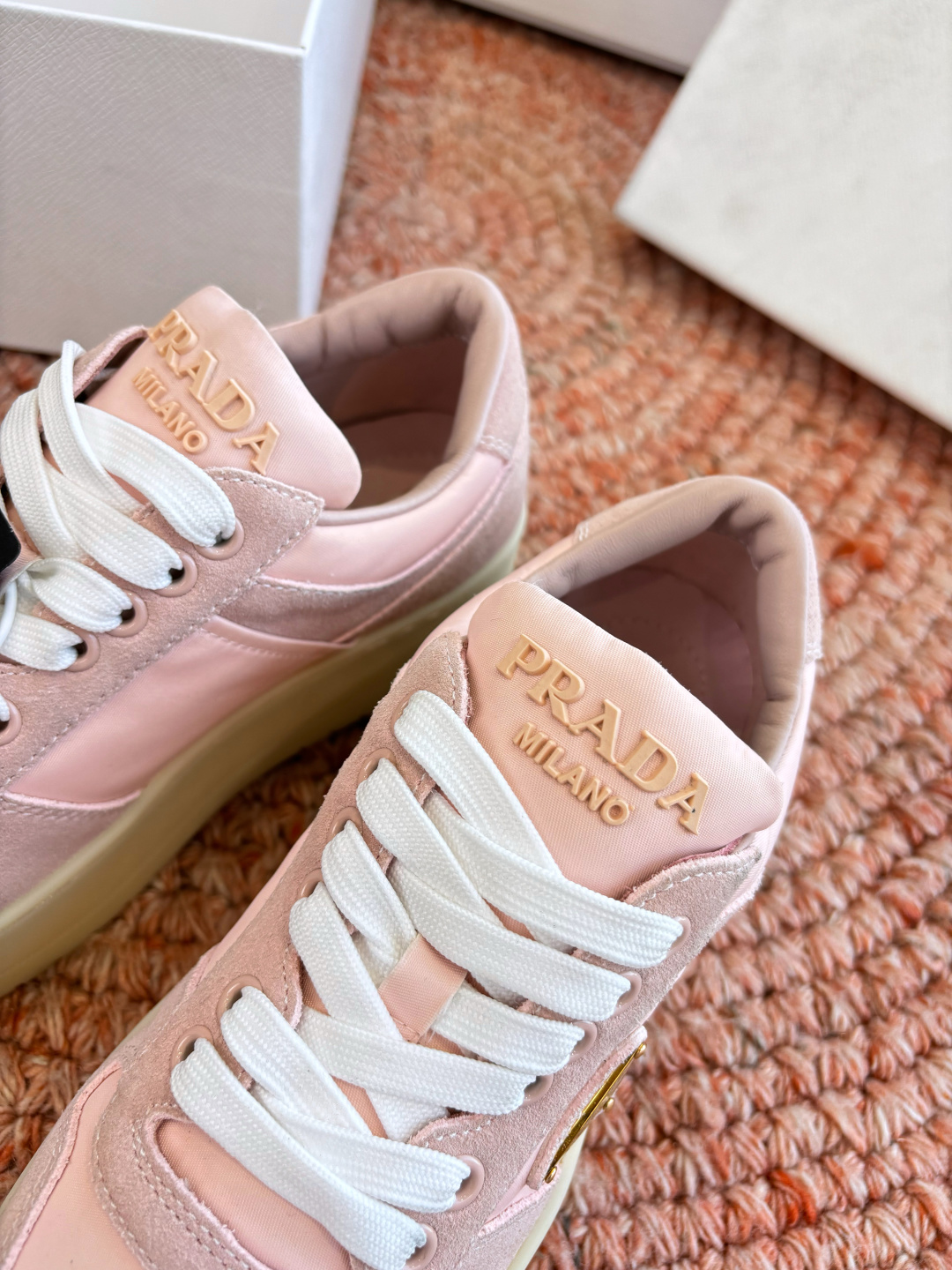 這款鞋子是AAAAA 1:1 質量(非常棒). 使用了和原版一模一樣的材料. 商標部分也保持了和普拉達/Prada一樣. 圖片拍攝是實物鞋子拍攝, 您所收到的實物保證和我們圖片一模一樣.