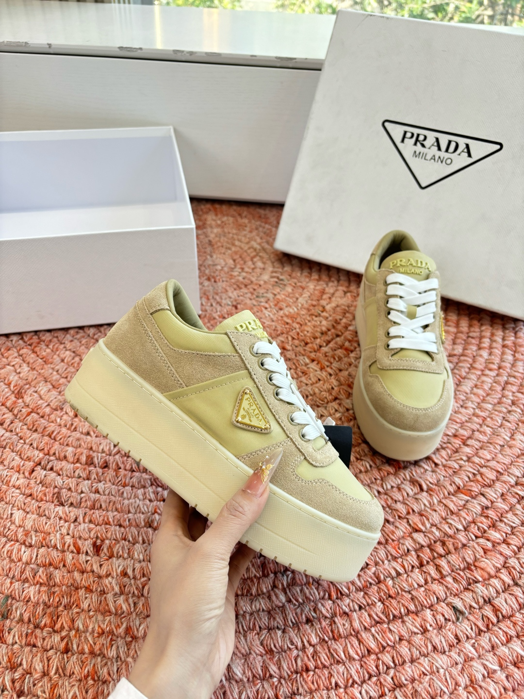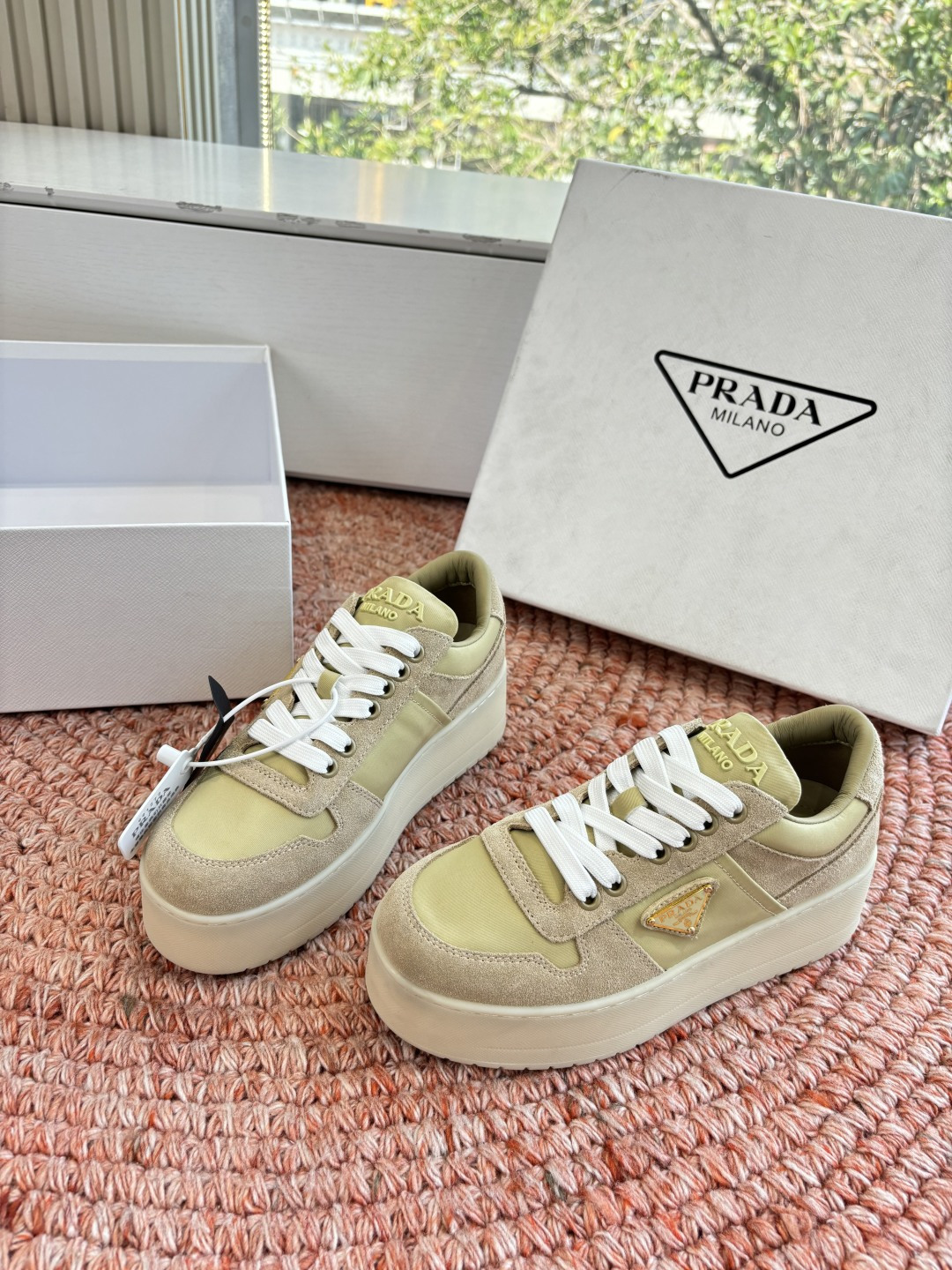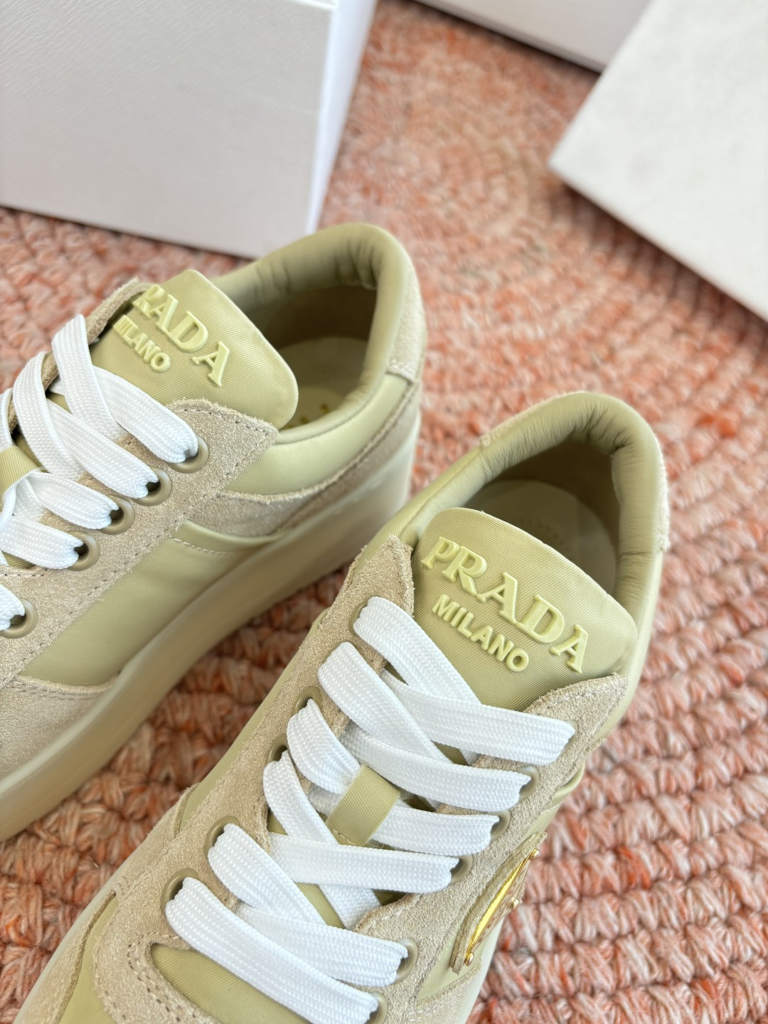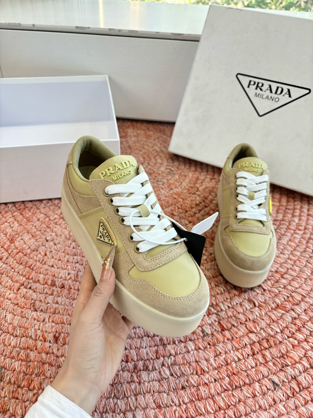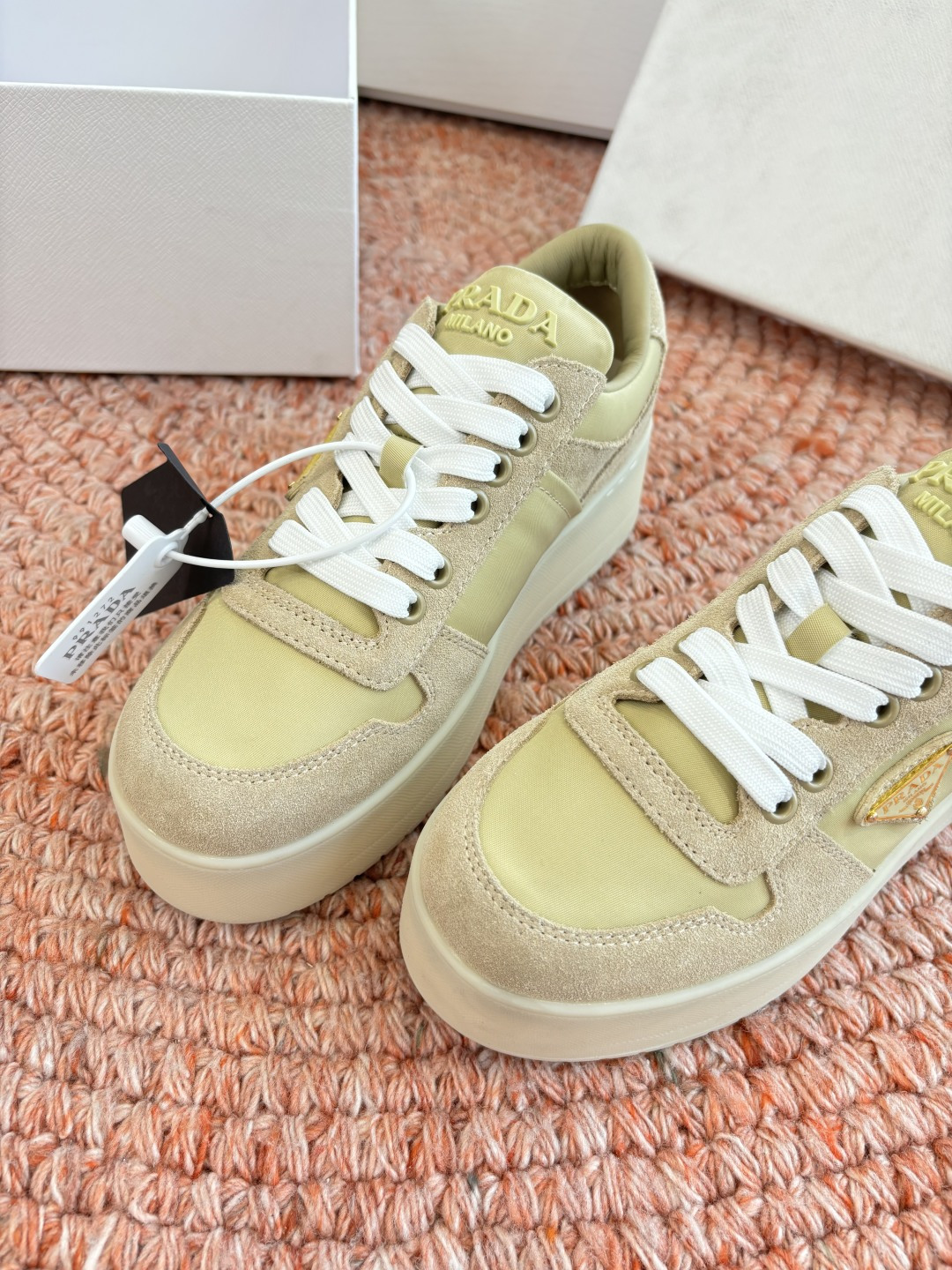 這款鞋子是AAAAA 1:1 質量(非常棒). 使用了和原版一模一樣的材料. 商標部分也保持了和普拉達/Prada一樣. 圖片拍攝是實物鞋子拍攝, 您所收到的實物保證和我們圖片一模一樣.