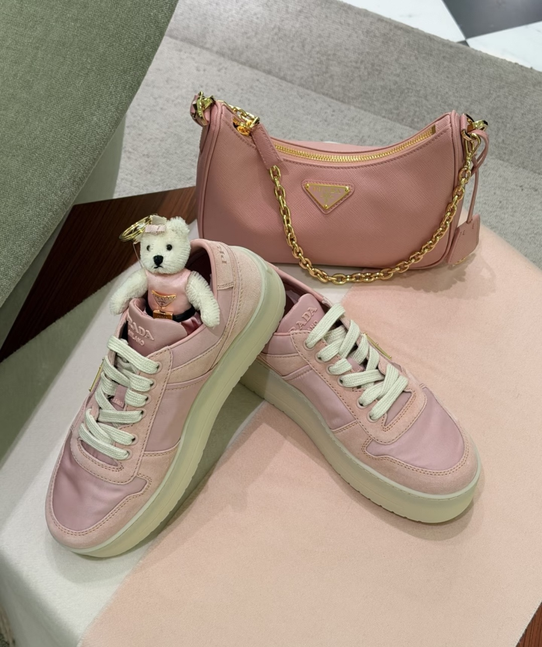 這款鞋子是AAAAA 1:1 質量(非常棒). 使用了和原版一模一樣的材料. 商標部分也保持了和普拉達/Prada一樣. 圖片拍攝是實物鞋子拍攝, 您所收到的實物保證和我們圖片一模一樣.