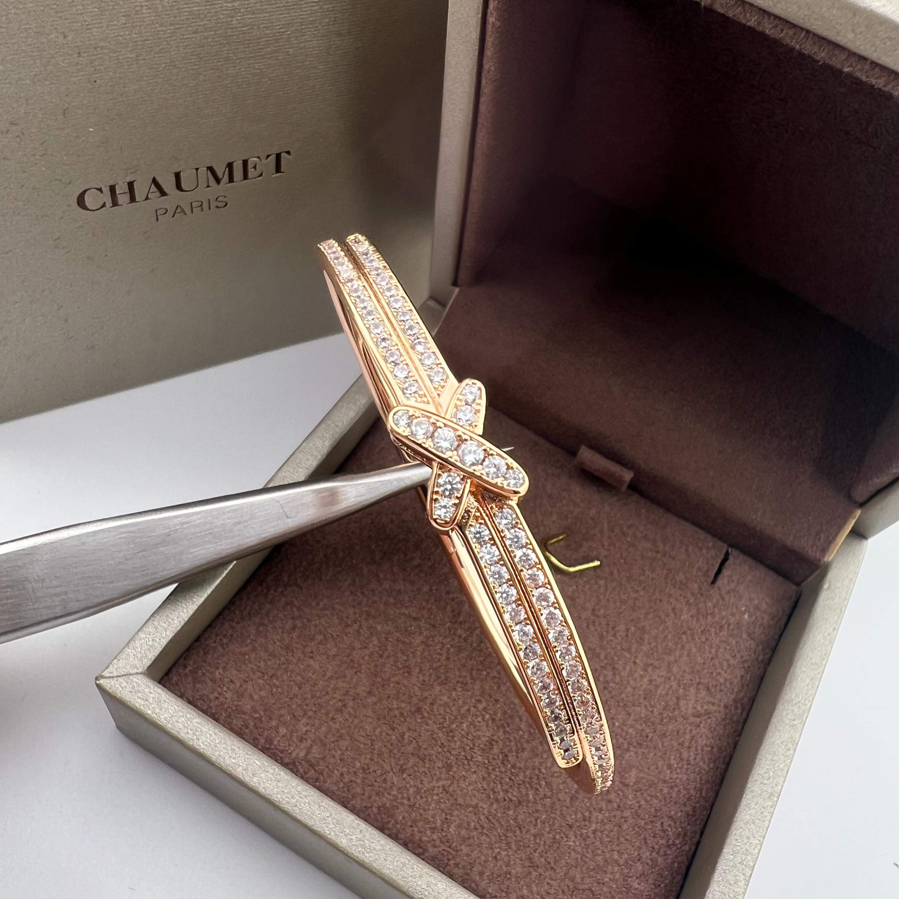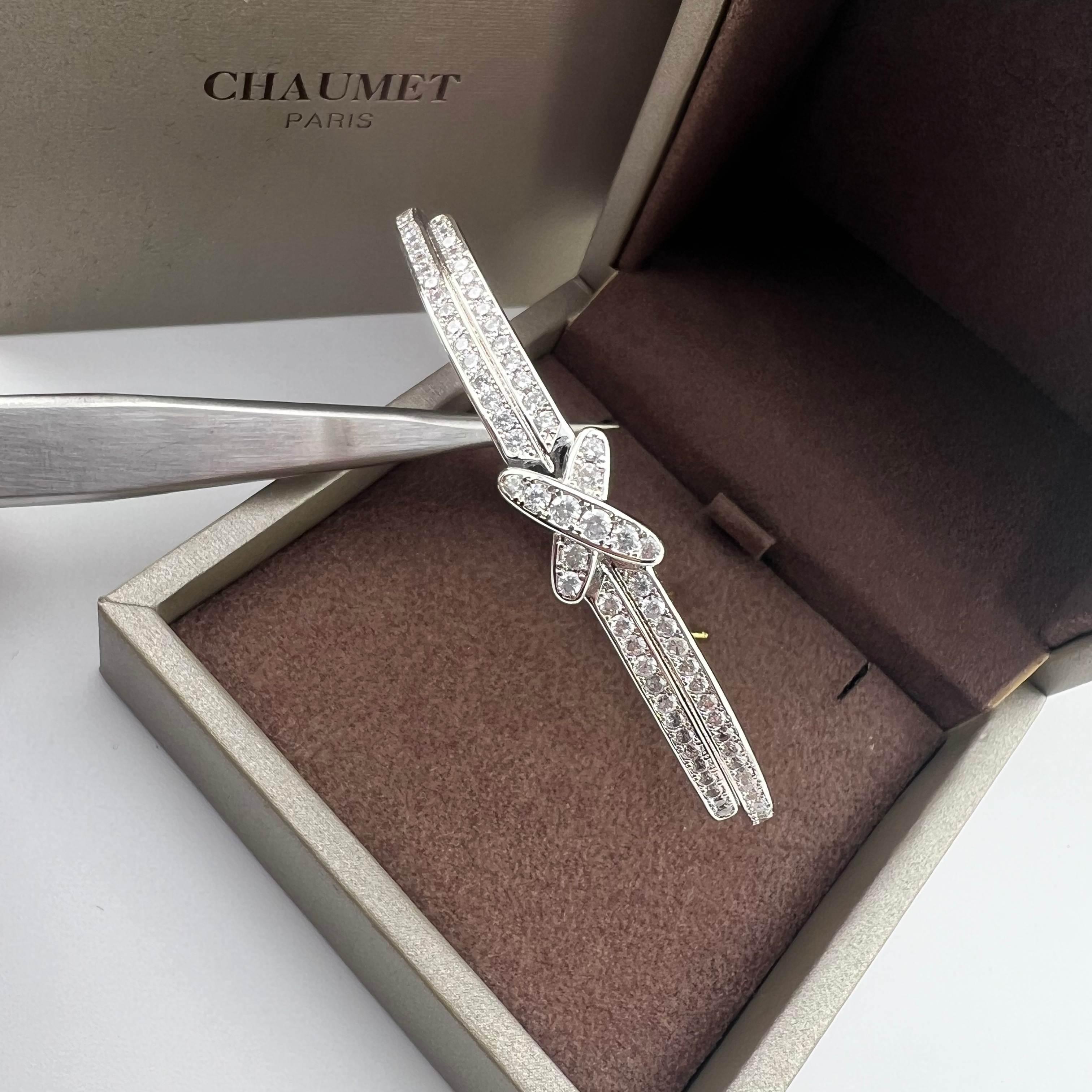 這款首飾是AAAAA 1:1 質量(非常棒). 使用了和原版一模一樣的材料. 商標部分也保持了和Chaumet一樣. 圖片拍攝是實物首飾拍攝, 您所收到的實物保證和我們圖片一模一樣.