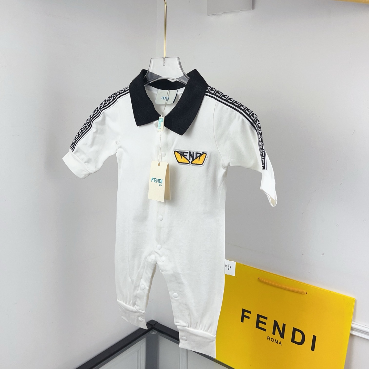 這款children's clothes是AAAAA 1:1 質量(非常棒). 使用了和原版一模一樣的材料. 商標部分也保持了和芬迪/Fendi一樣. 圖片拍攝是實物children's clothes拍攝, 您所收到的實物保證和我們圖片一模一樣.