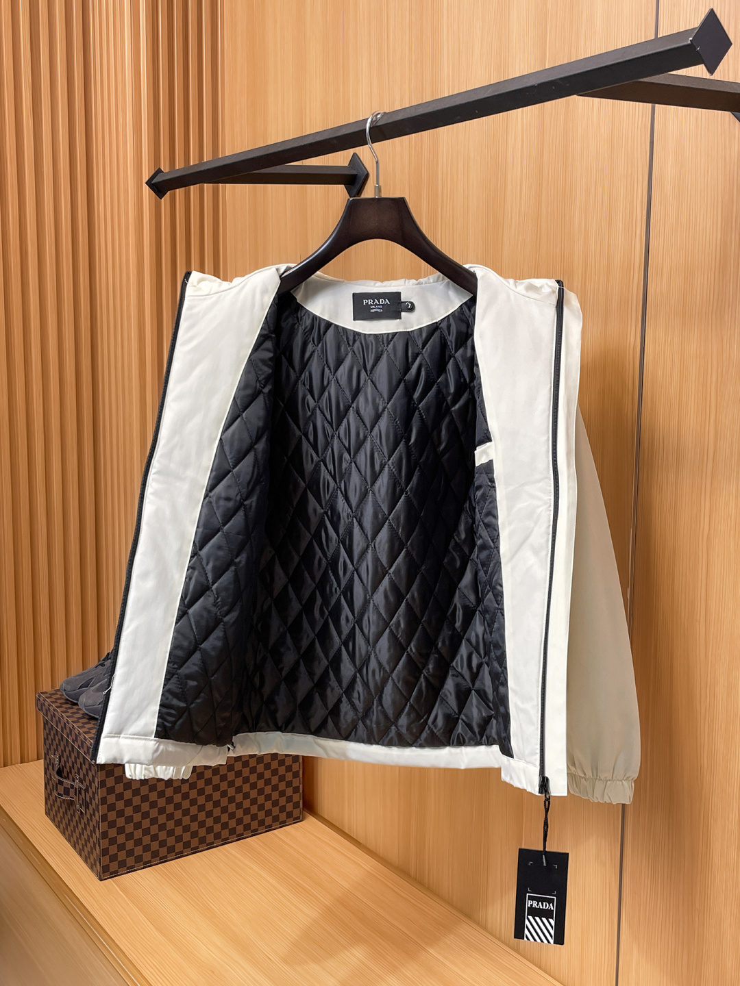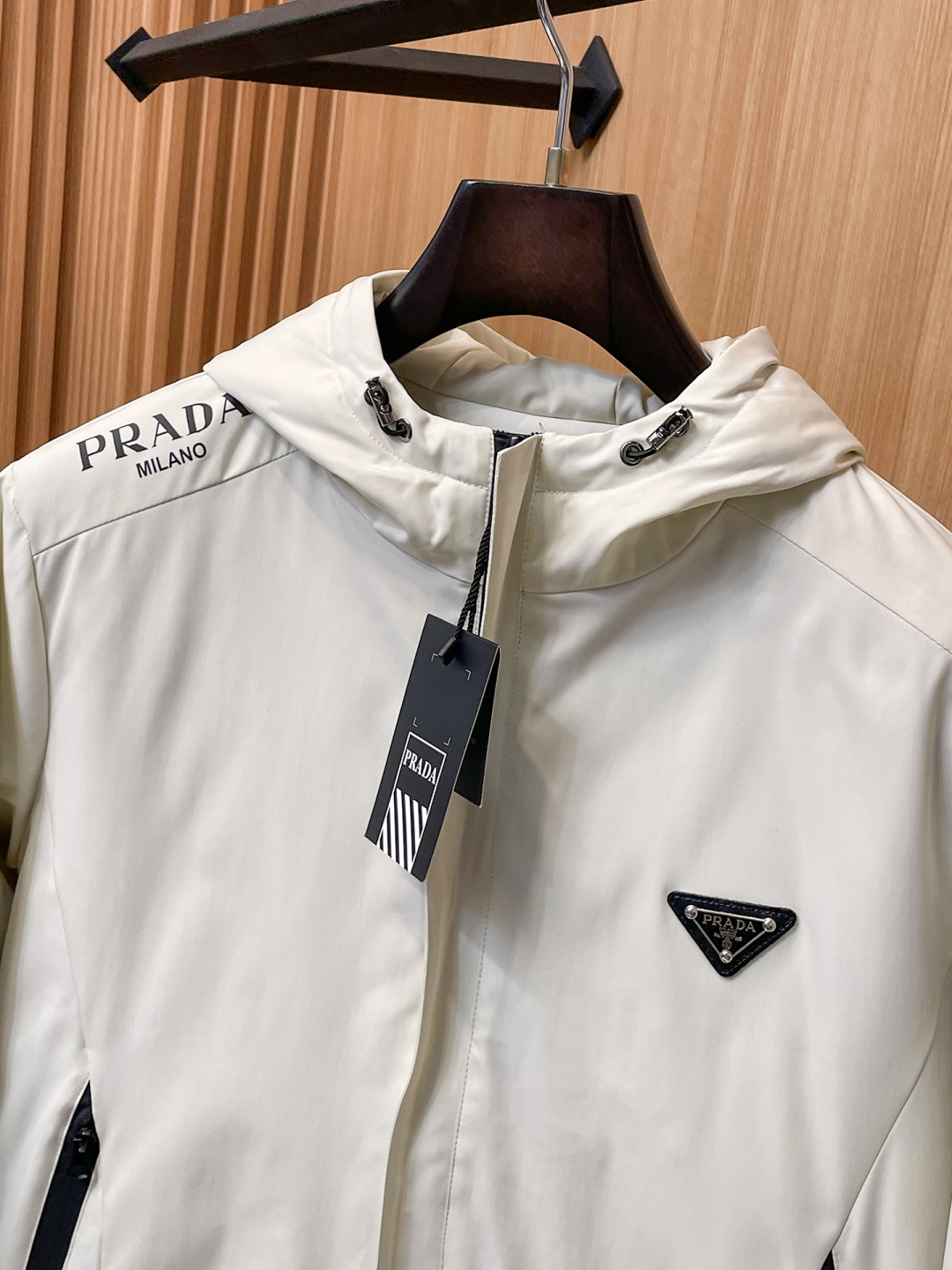這款衣服是AAAAA 1:1 質量(非常棒). 使用了和原版一模一樣的材料. 商標部分也保持了和普拉達/Prada一樣. 圖片拍攝是實物衣服拍攝, 您所收到的實物保證和我們圖片一模一樣.