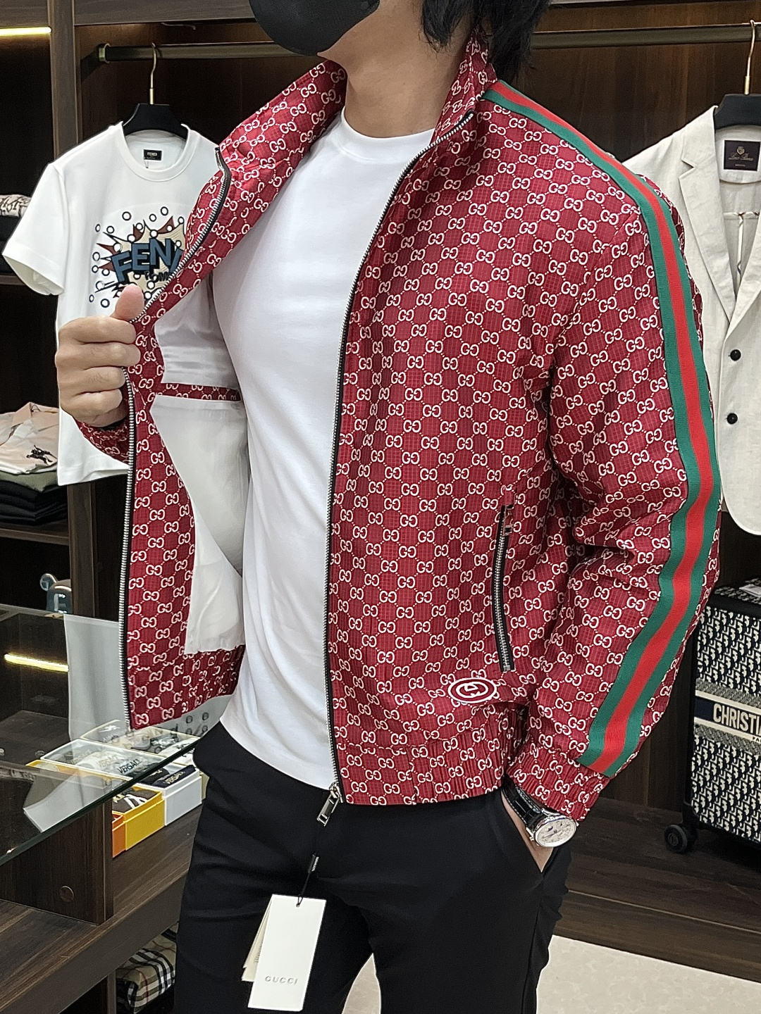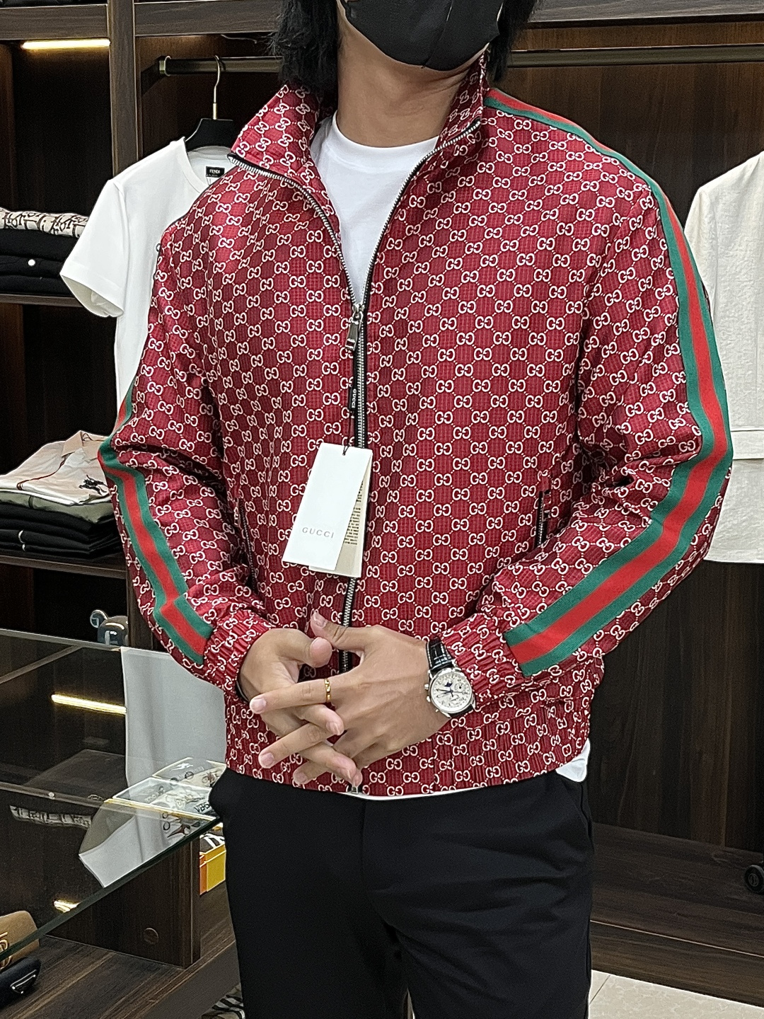 這款衣服是AAAAA 1:1 質量(非常棒). 使用了和原版一模一樣的材料. 商標部分也保持了和古奇/Gucci一樣. 圖片拍攝是實物衣服拍攝, 您所收到的實物保證和我們圖片一模一樣.