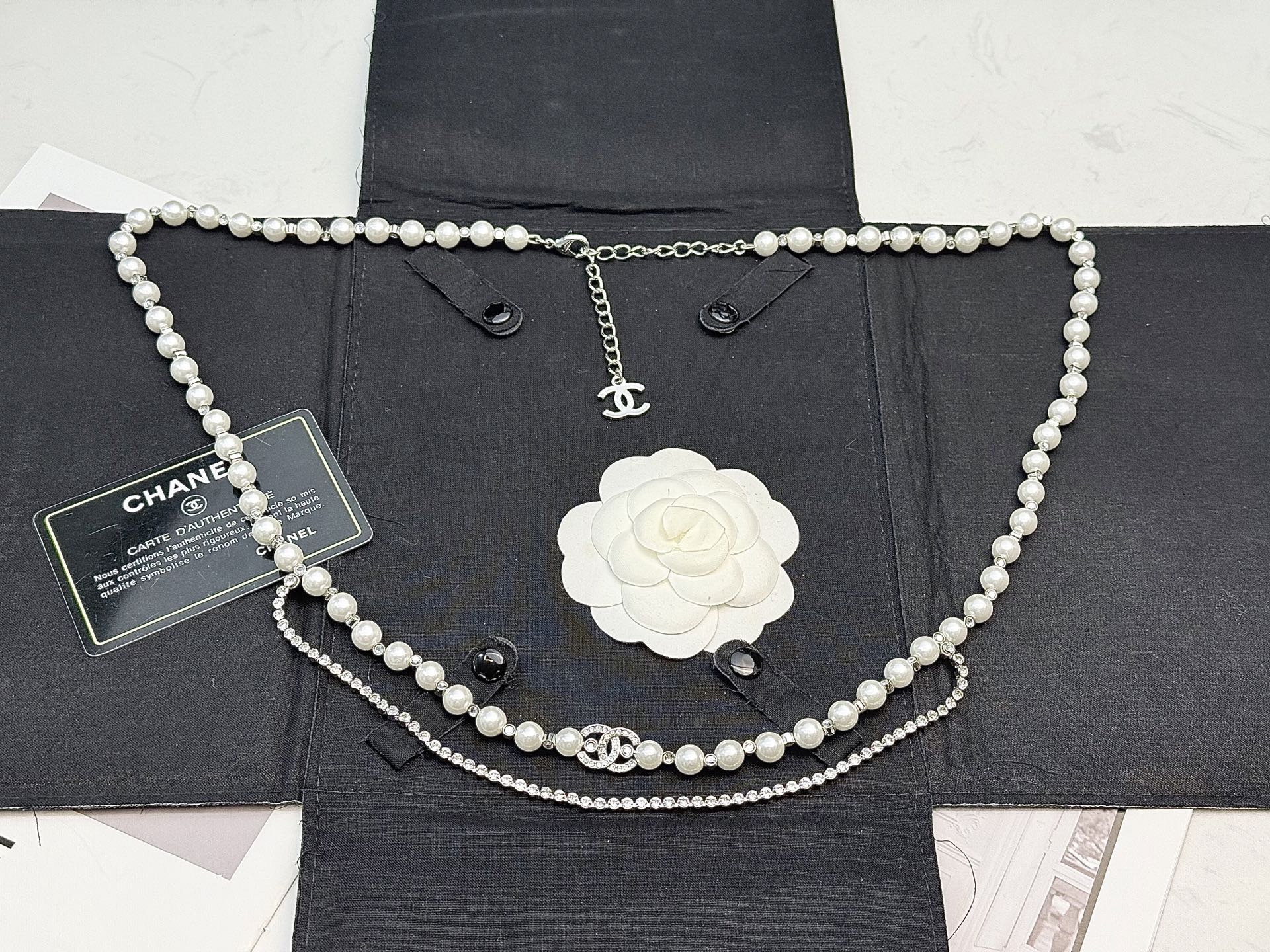 這款首飾是AAAAA 1:1 質量(非常棒). 使用了和原版一模一樣的材料. 商標部分也保持了和香奈兒/Chanel一樣. 圖片拍攝是實物首飾拍攝, 您所收到的實物保證和我們圖片一模一樣.