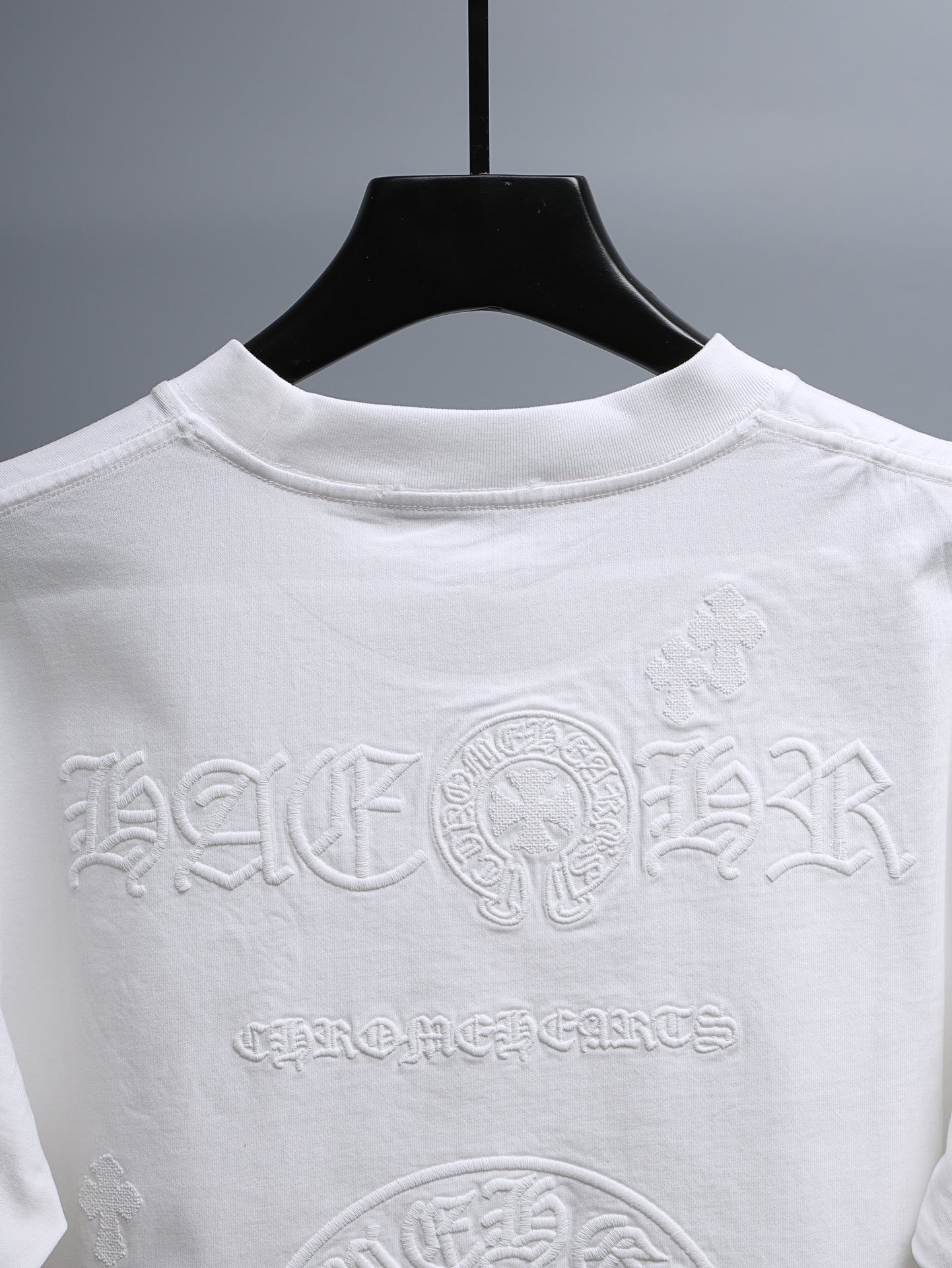 這款衣服是AAAAA 1:1 質量(非常棒). 使用了和原版一模一樣的材料. 商標部分也保持了和鉻心/Chrome Hearts一樣. 圖片拍攝是實物衣服拍攝, 您所收到的實物保證和我們圖片一模一樣.