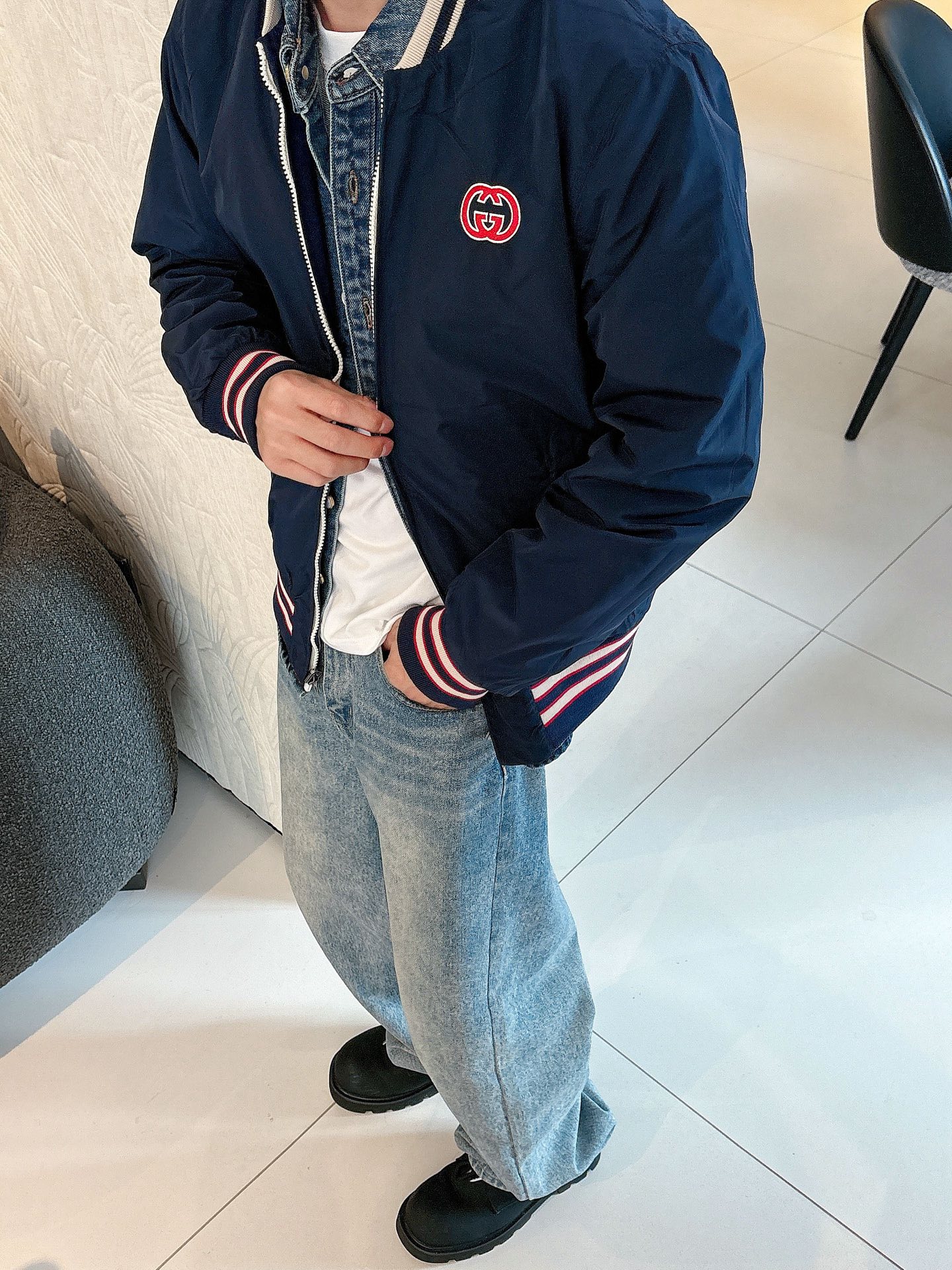 這款衣服是AAAAA 1:1 質量(非常棒). 使用了和原版一模一樣的材料. 商標部分也保持了和古奇/Gucci一樣. 圖片拍攝是實物衣服拍攝, 您所收到的實物保證和我們圖片一模一樣.