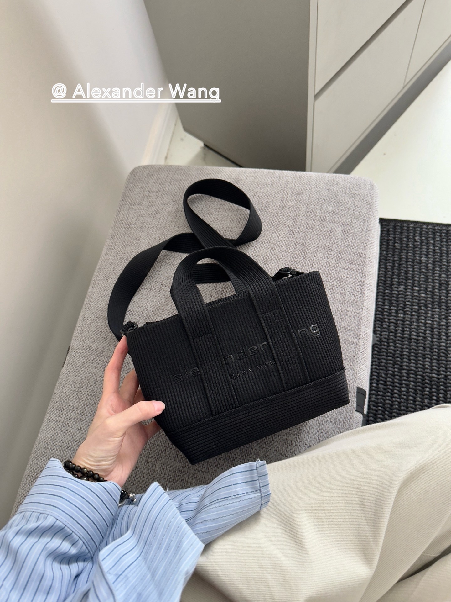 這款衣服是AAAAA 1:1 質量(非常棒). 使用了和原版一模一樣的材料. 商標部分也保持了和Alexander Wang一樣. 圖片拍攝是實物衣服拍攝, 您所收到的實物保證和我們圖片一模一樣.