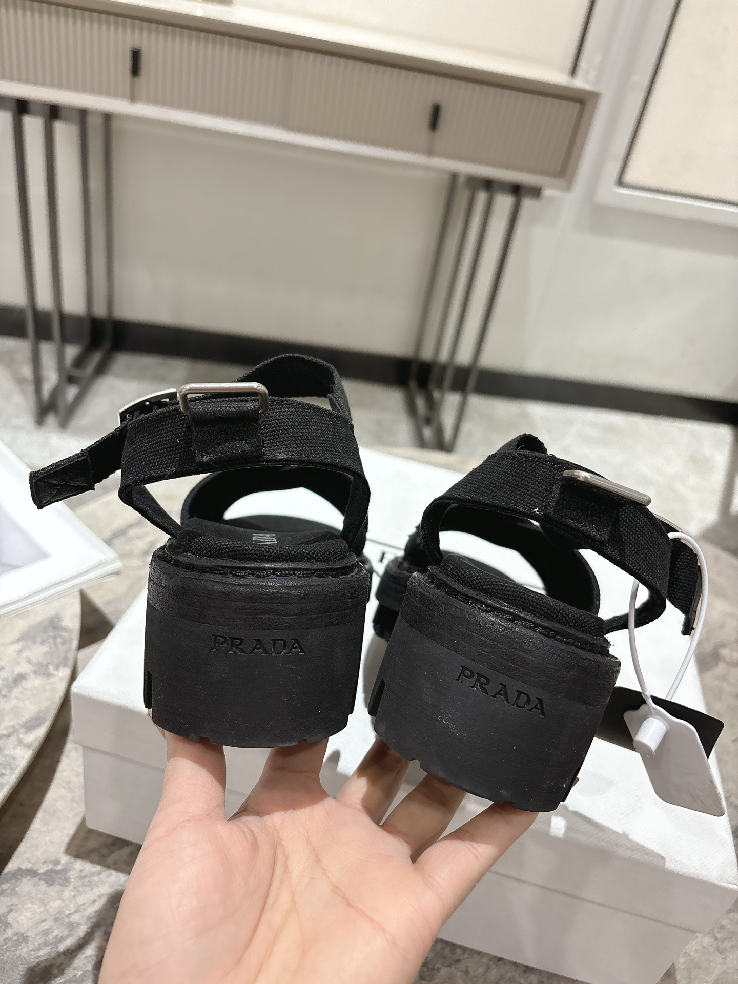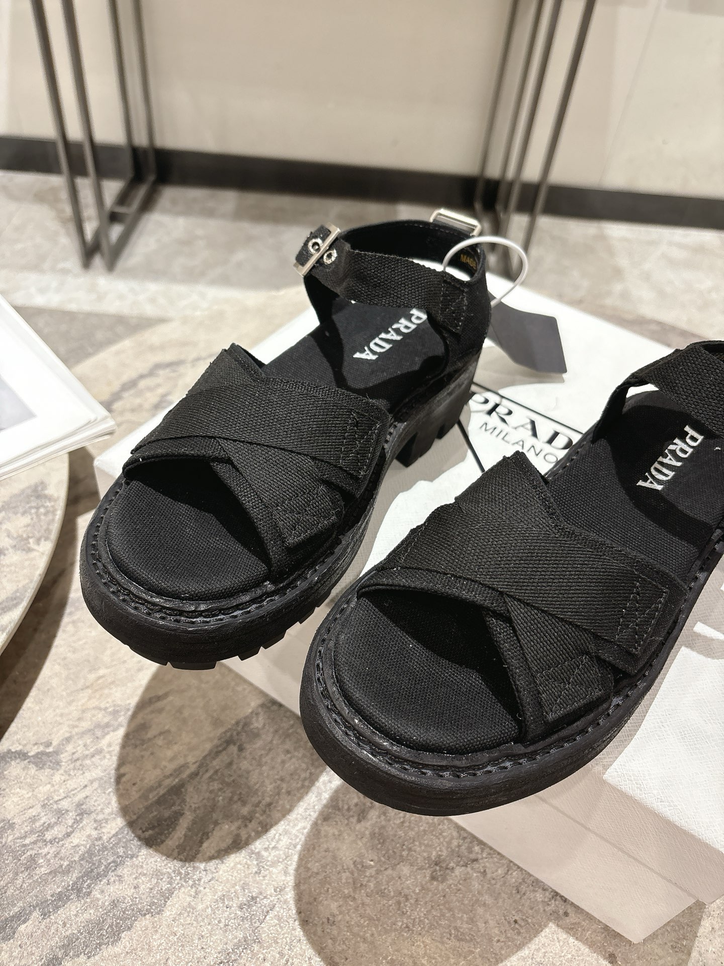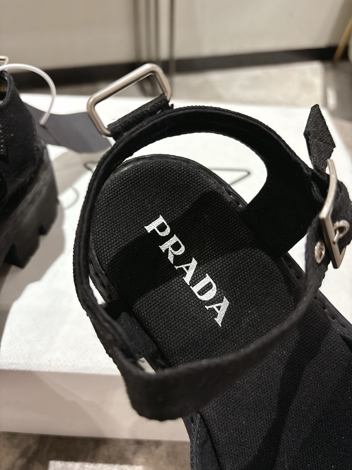 這款鞋子是AAAAA 1:1 質量(非常棒). 使用了和原版一模一樣的材料. 商標部分也保持了和普拉達/Prada一樣. 圖片拍攝是實物鞋子拍攝, 您所收到的實物保證和我們圖片一模一樣.