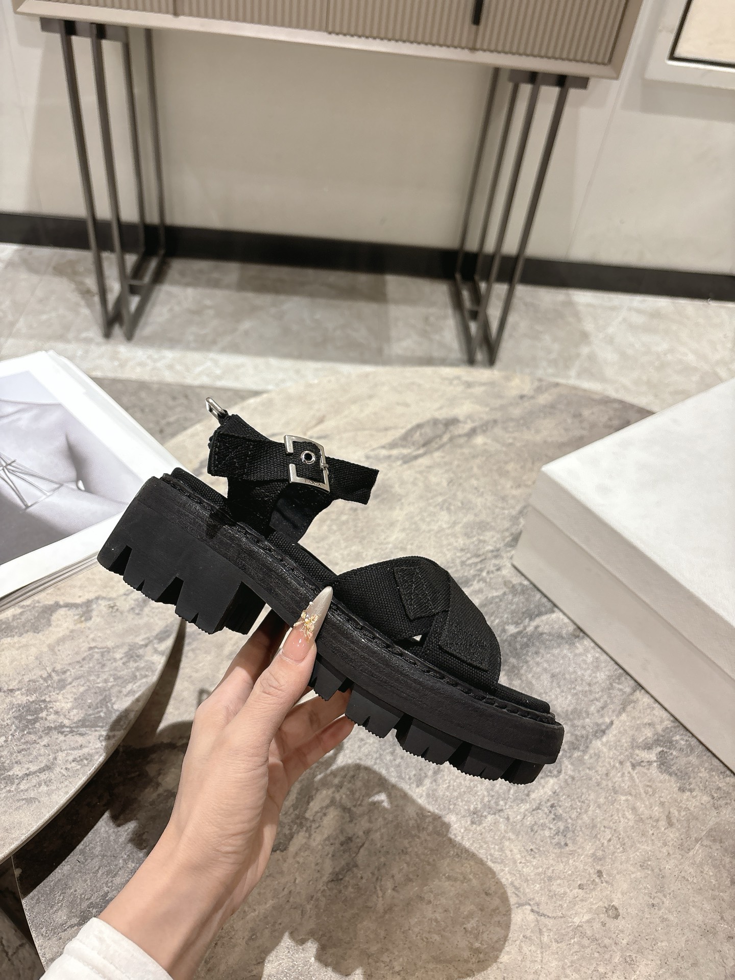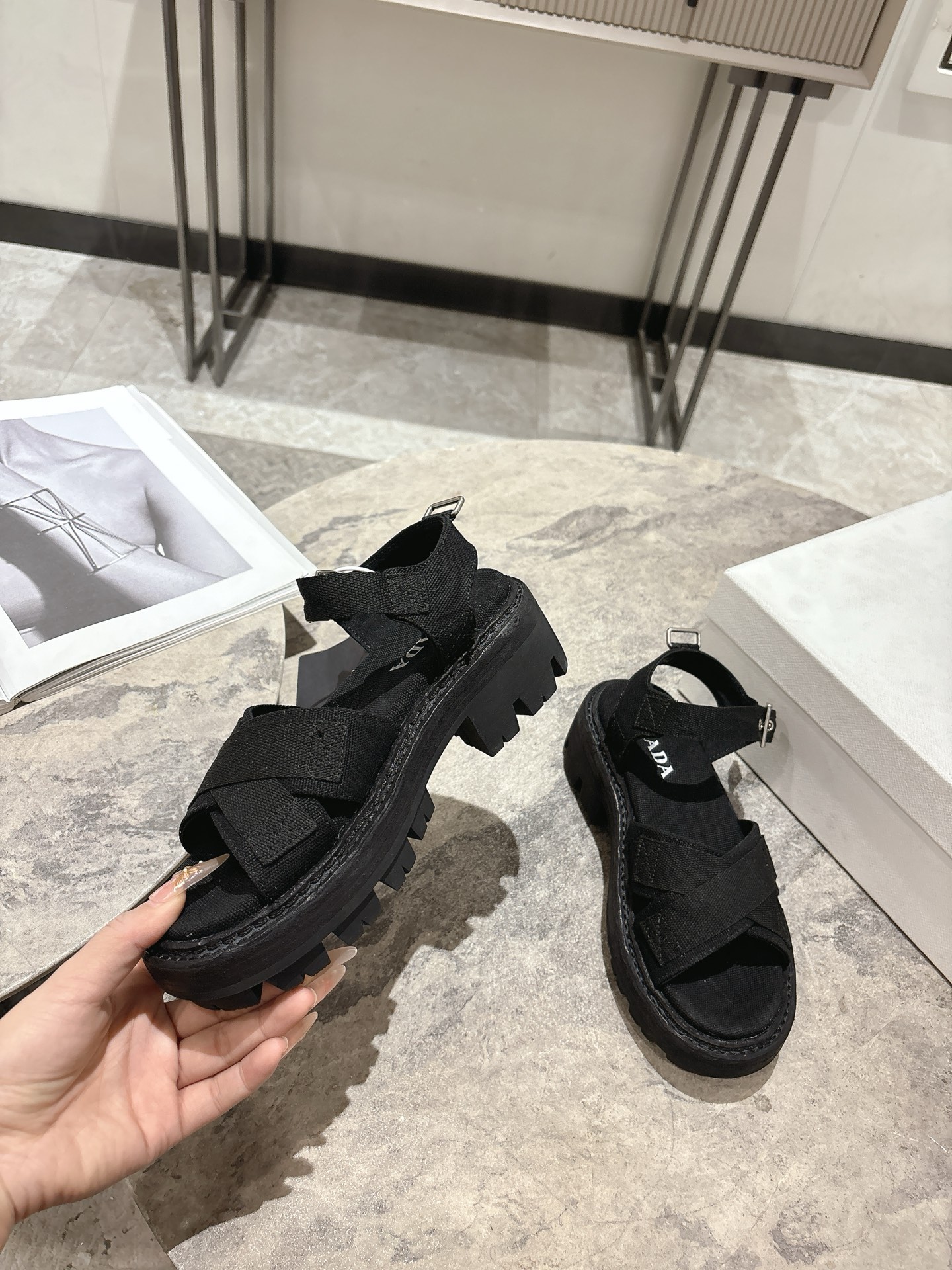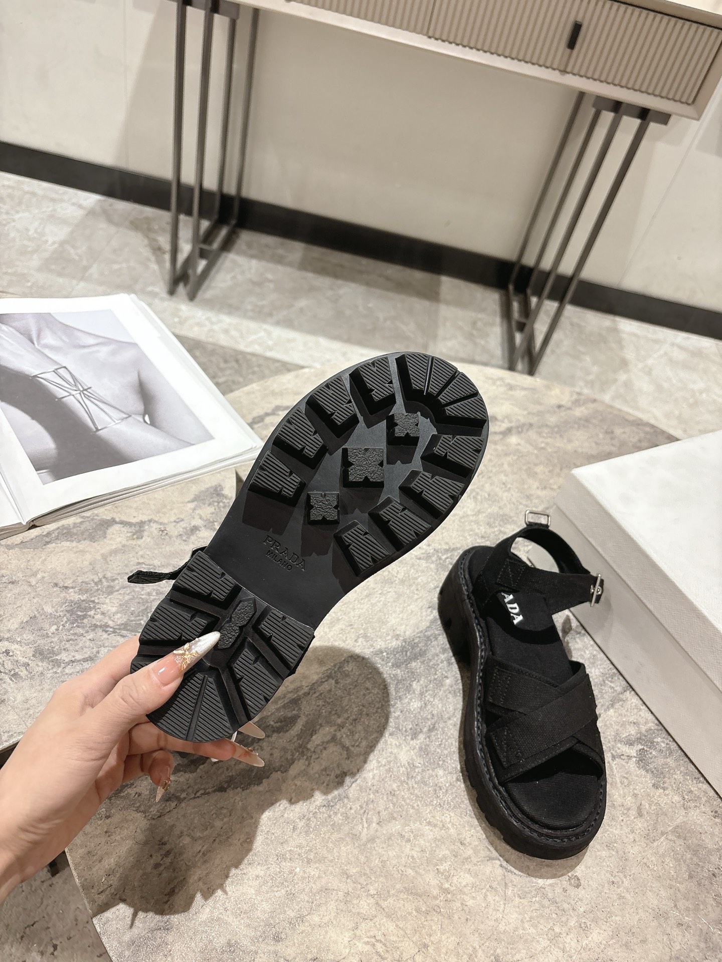 這款鞋子是AAAAA 1:1 質量(非常棒). 使用了和原版一模一樣的材料. 商標部分也保持了和普拉達/Prada一樣. 圖片拍攝是實物鞋子拍攝, 您所收到的實物保證和我們圖片一模一樣.