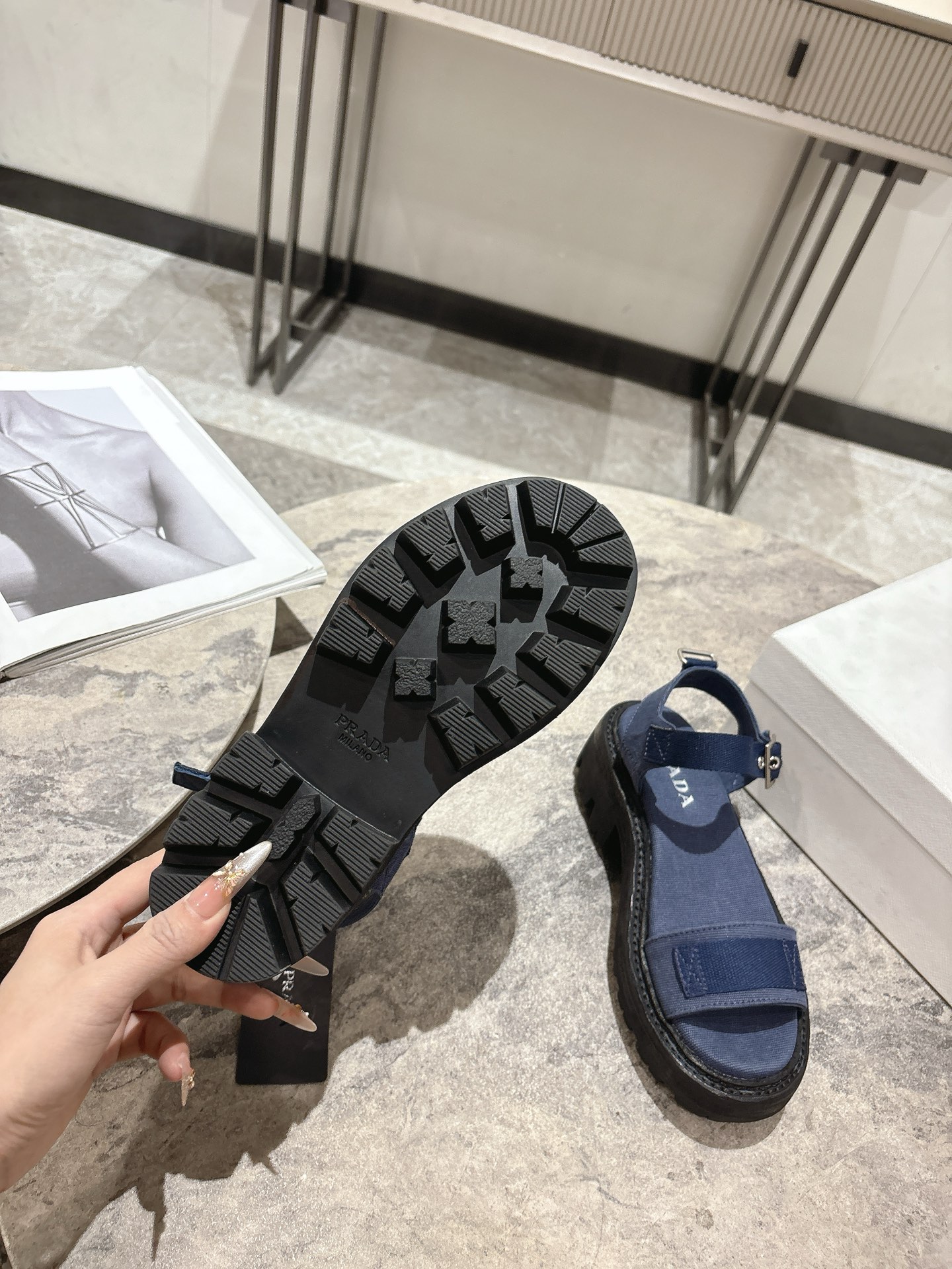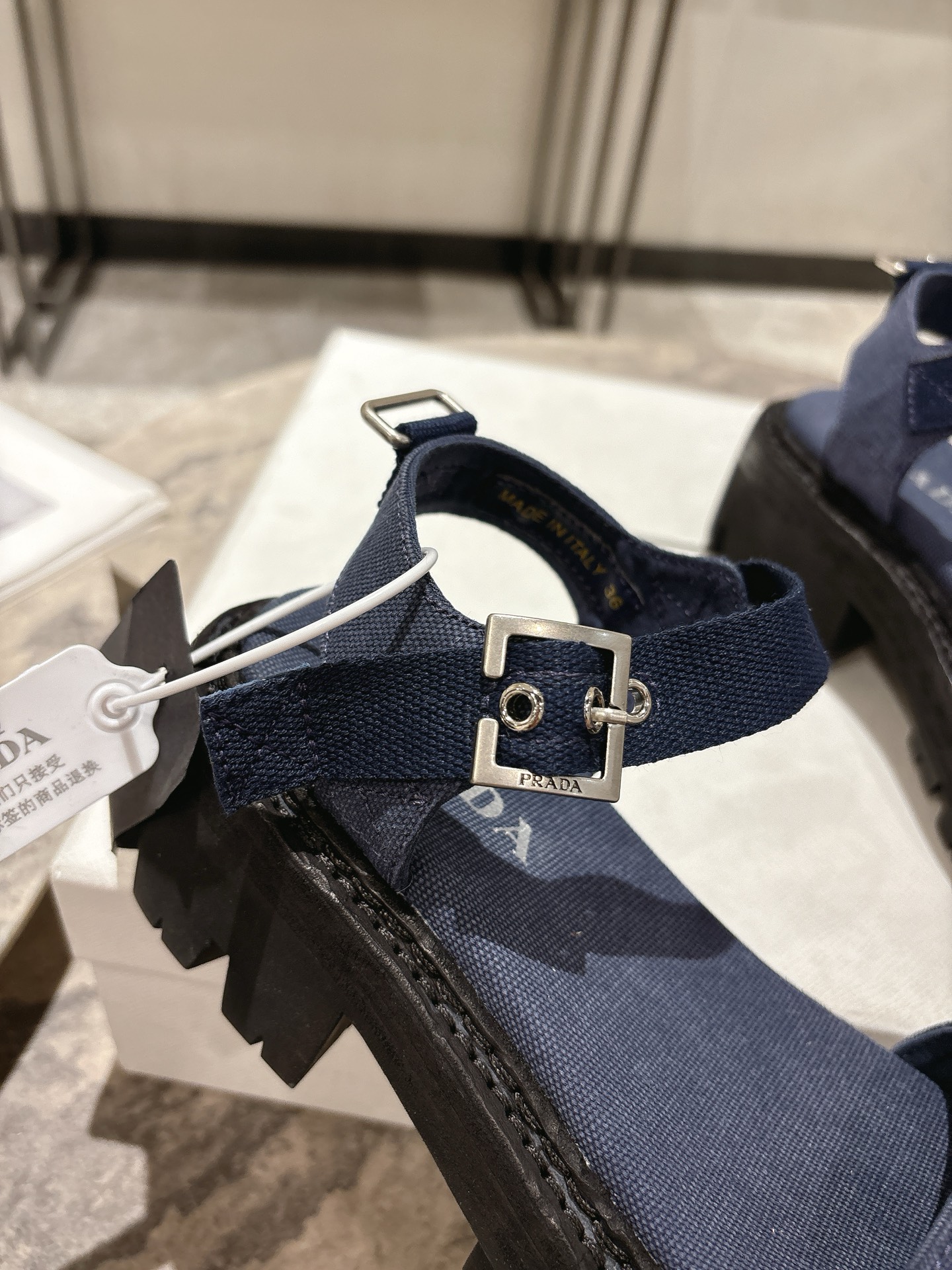 這款鞋子是AAAAA 1:1 質量(非常棒). 使用了和原版一模一樣的材料. 商標部分也保持了和普拉達/Prada一樣. 圖片拍攝是實物鞋子拍攝, 您所收到的實物保證和我們圖片一模一樣.