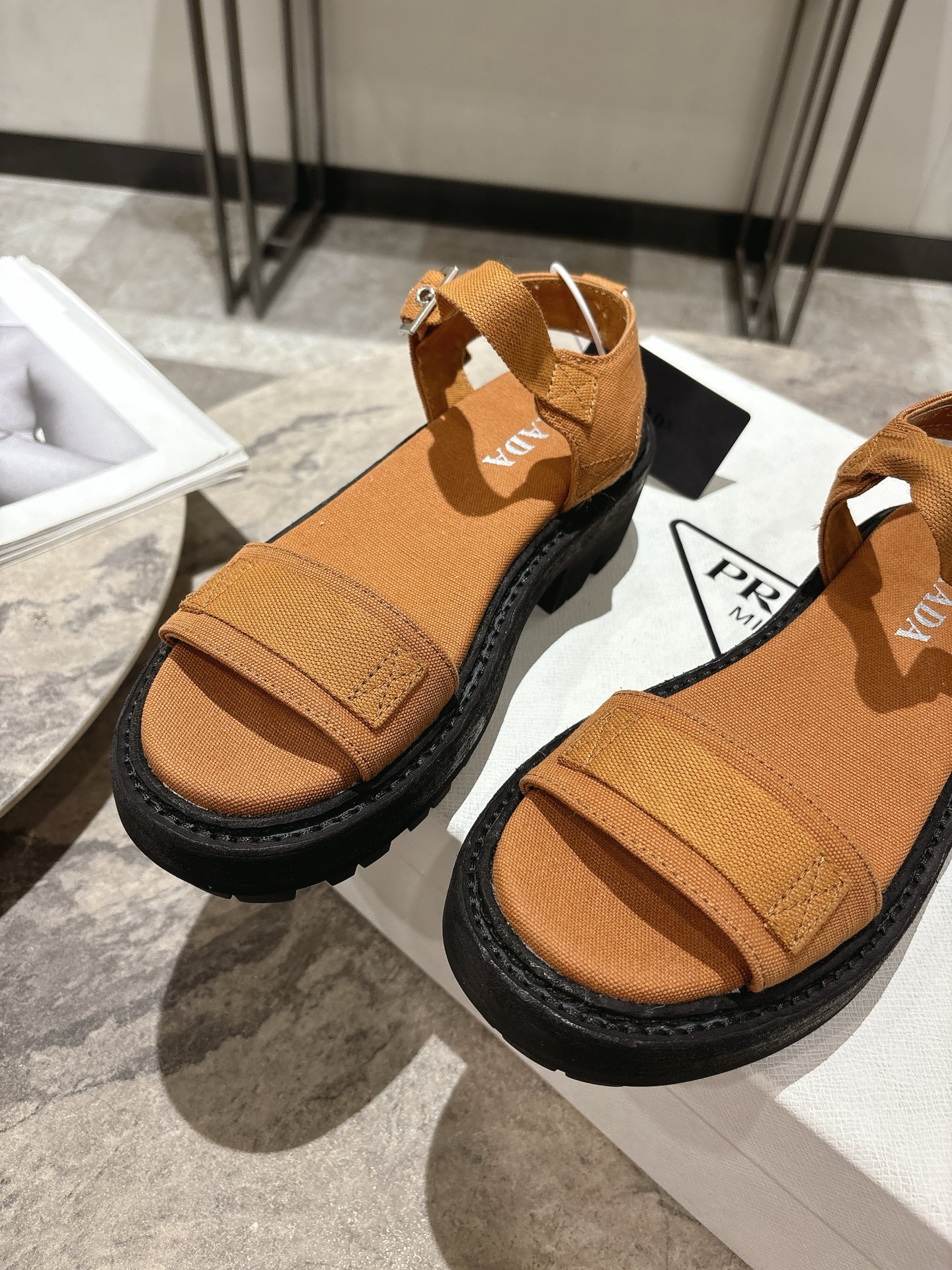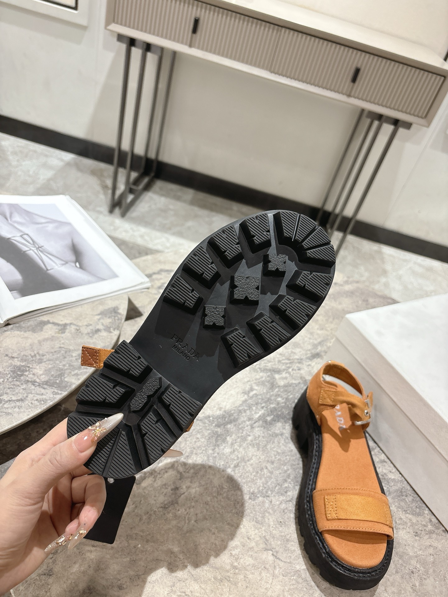 這款鞋子是AAAAA 1:1 質量(非常棒). 使用了和原版一模一樣的材料. 商標部分也保持了和普拉達/Prada一樣. 圖片拍攝是實物鞋子拍攝, 您所收到的實物保證和我們圖片一模一樣.
