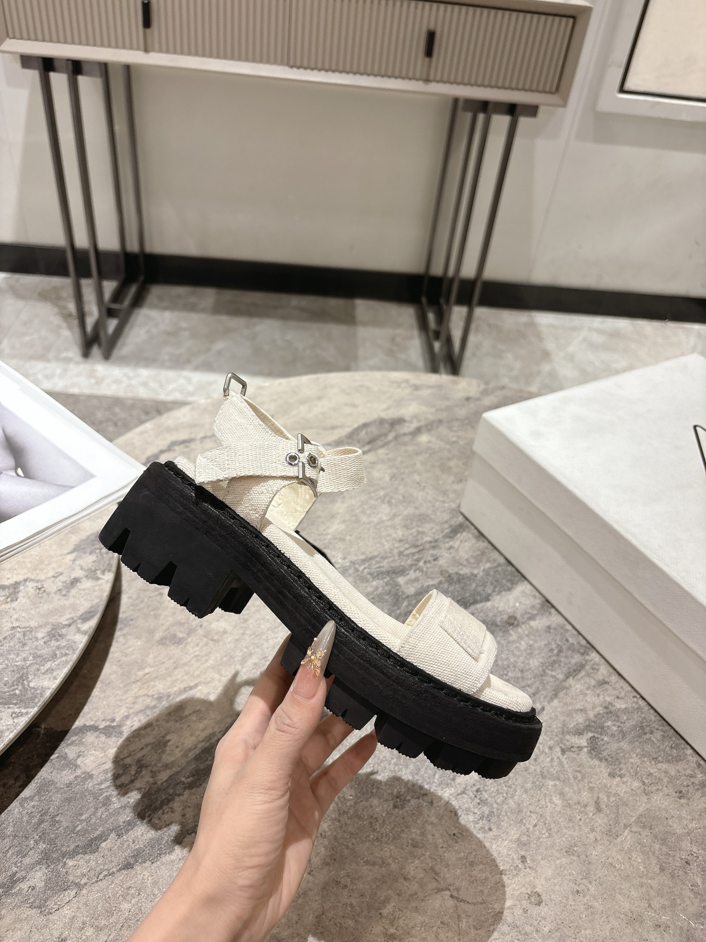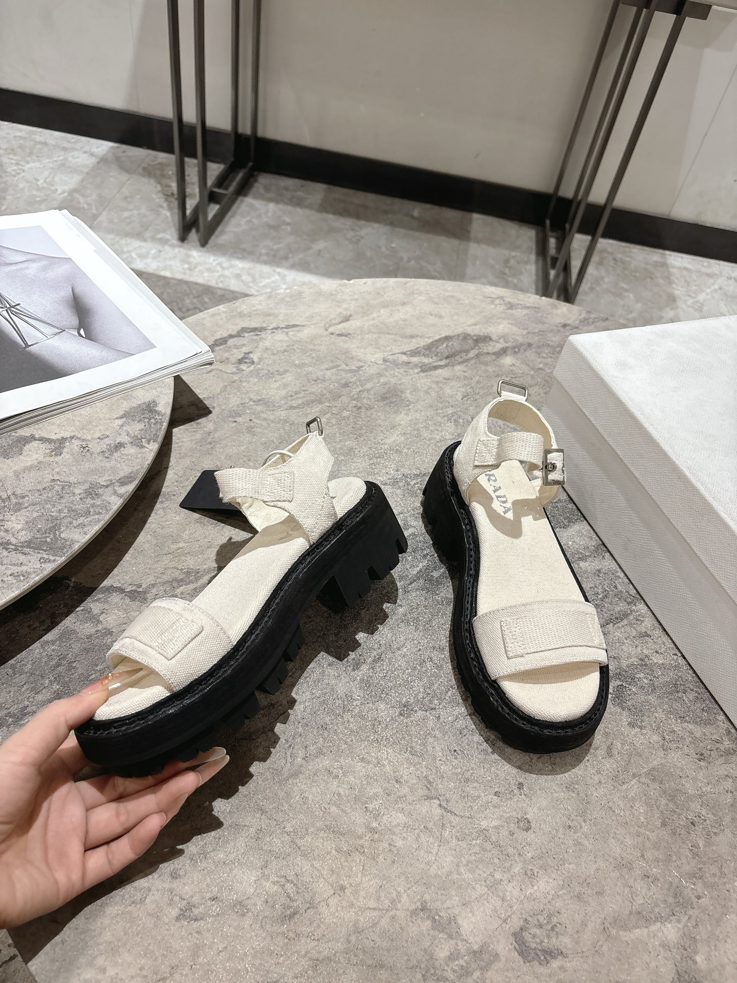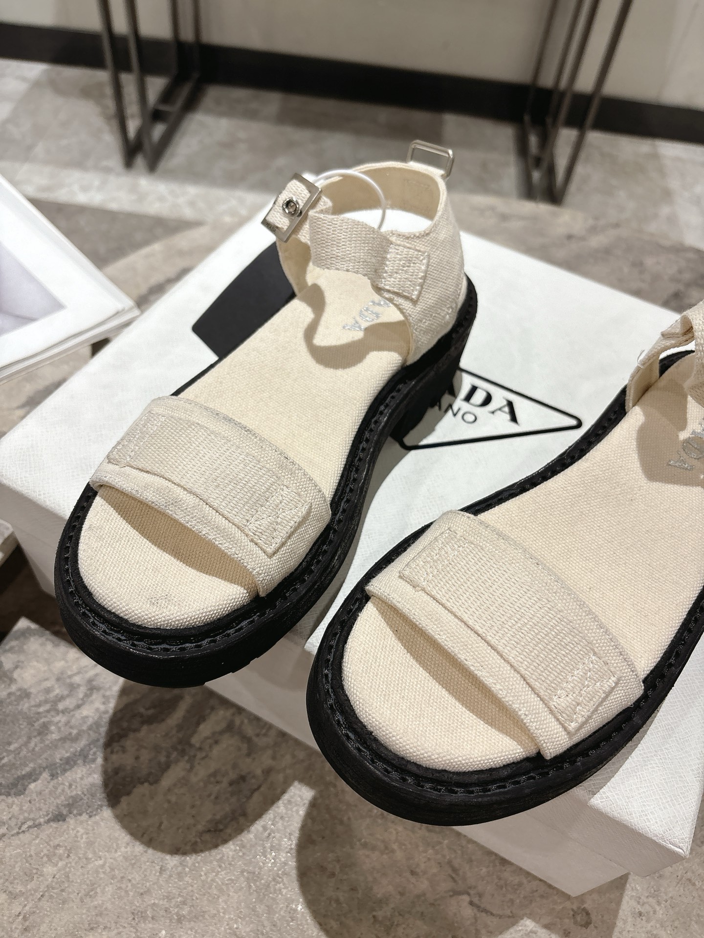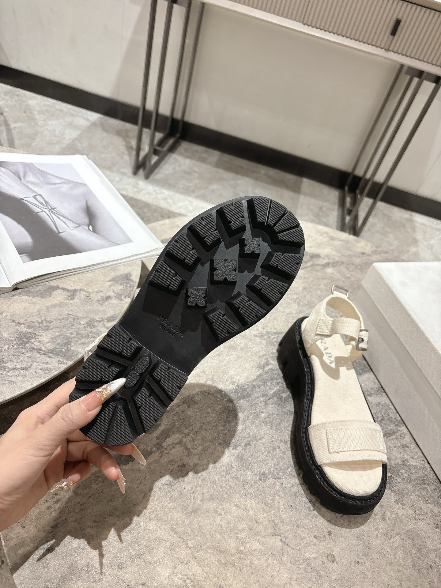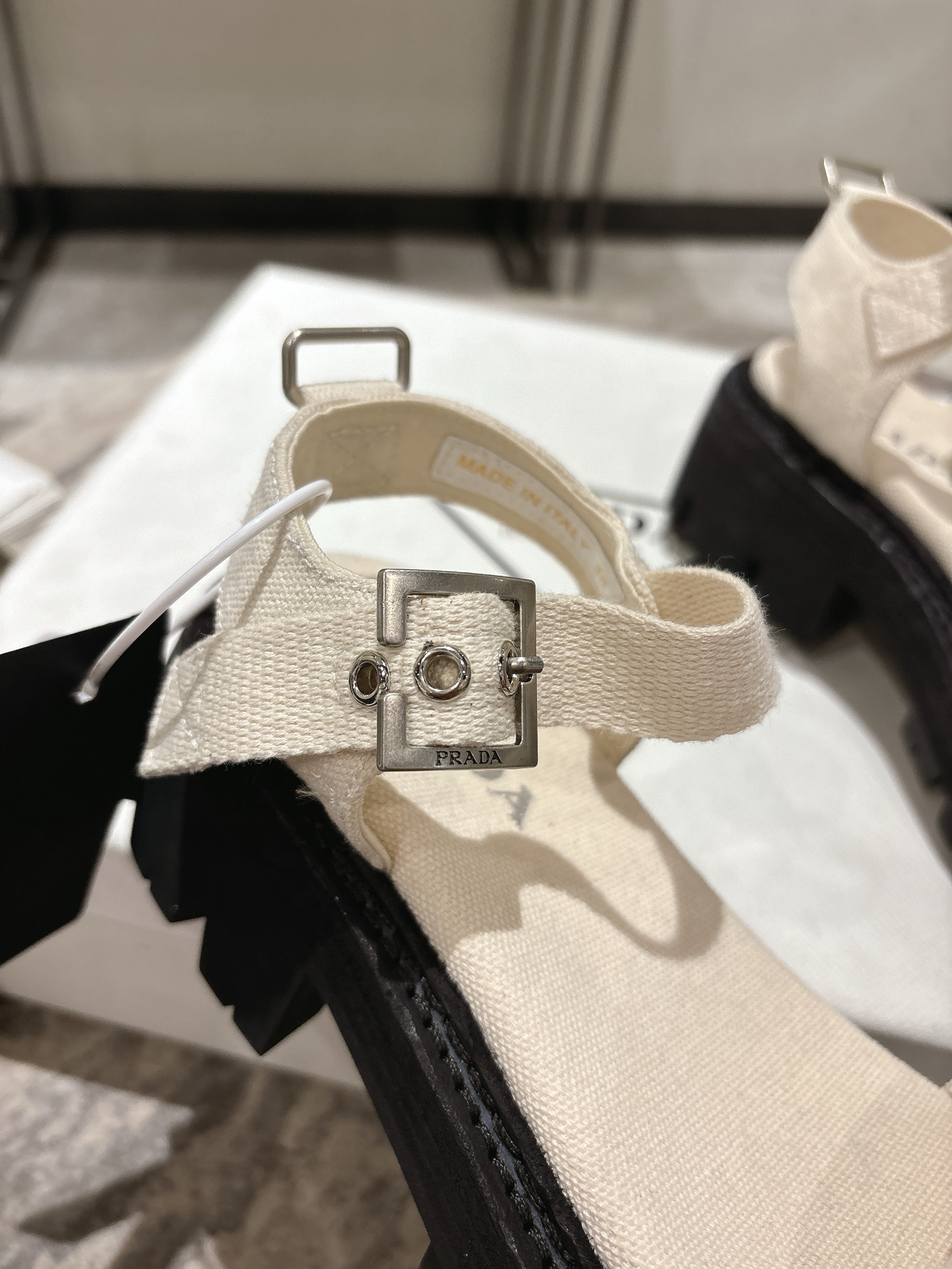 這款鞋子是AAAAA 1:1 質量(非常棒). 使用了和原版一模一樣的材料. 商標部分也保持了和普拉達/Prada一樣. 圖片拍攝是實物鞋子拍攝, 您所收到的實物保證和我們圖片一模一樣.