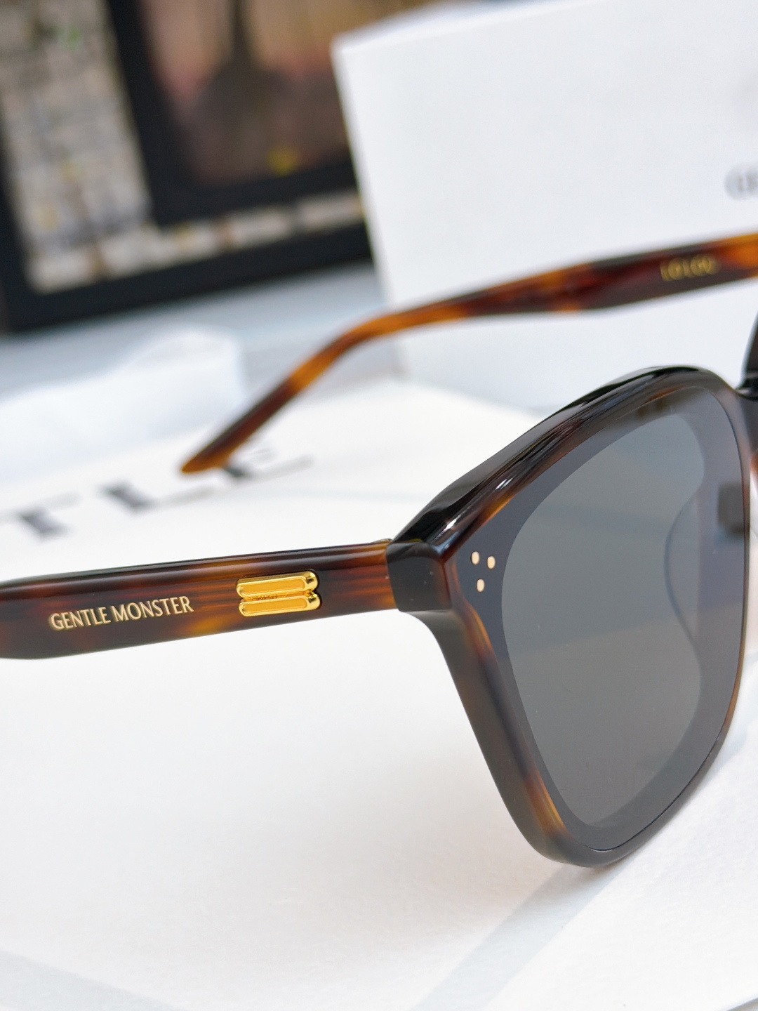 這款太陽眼鏡是AAAAA 1:1 質量(非常棒). 使用了和原版一模一樣的材料. 商標部分也保持了和Gentle Monster一樣. 圖片拍攝是實物太陽眼鏡拍攝, 您所收到的實物保證和我們圖片一模一樣.