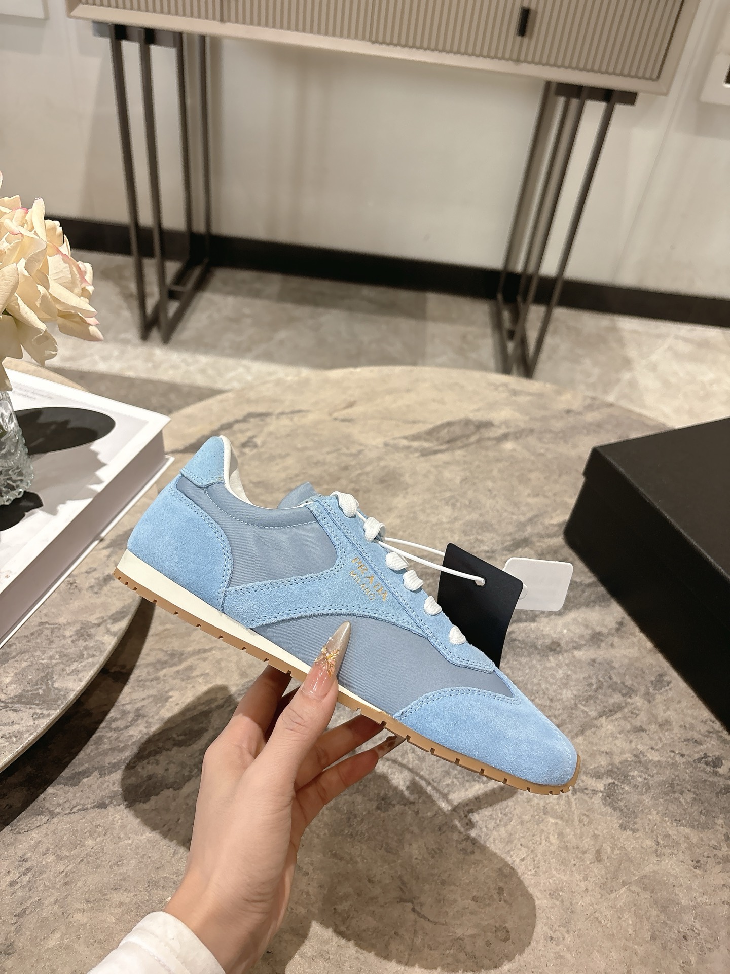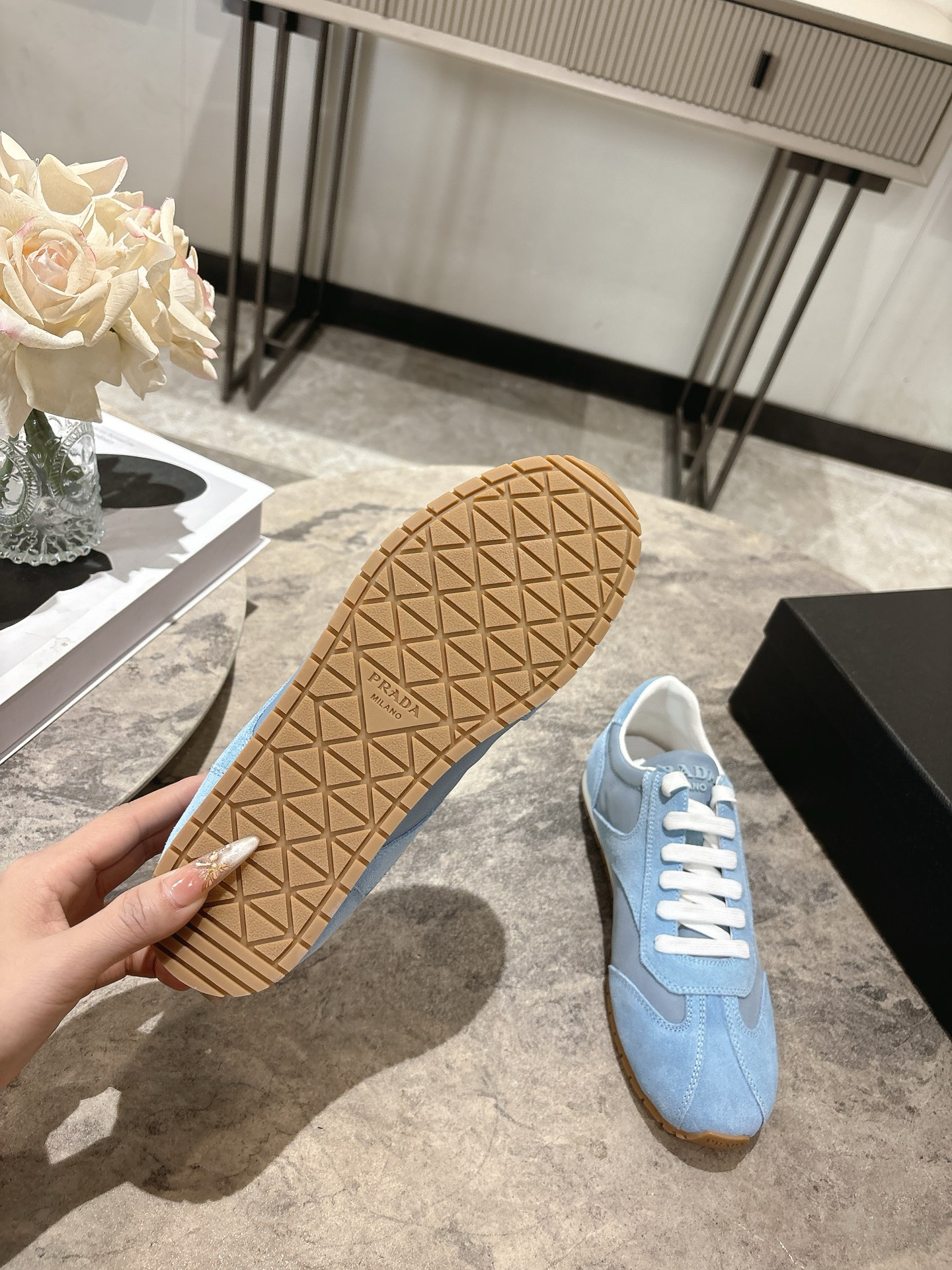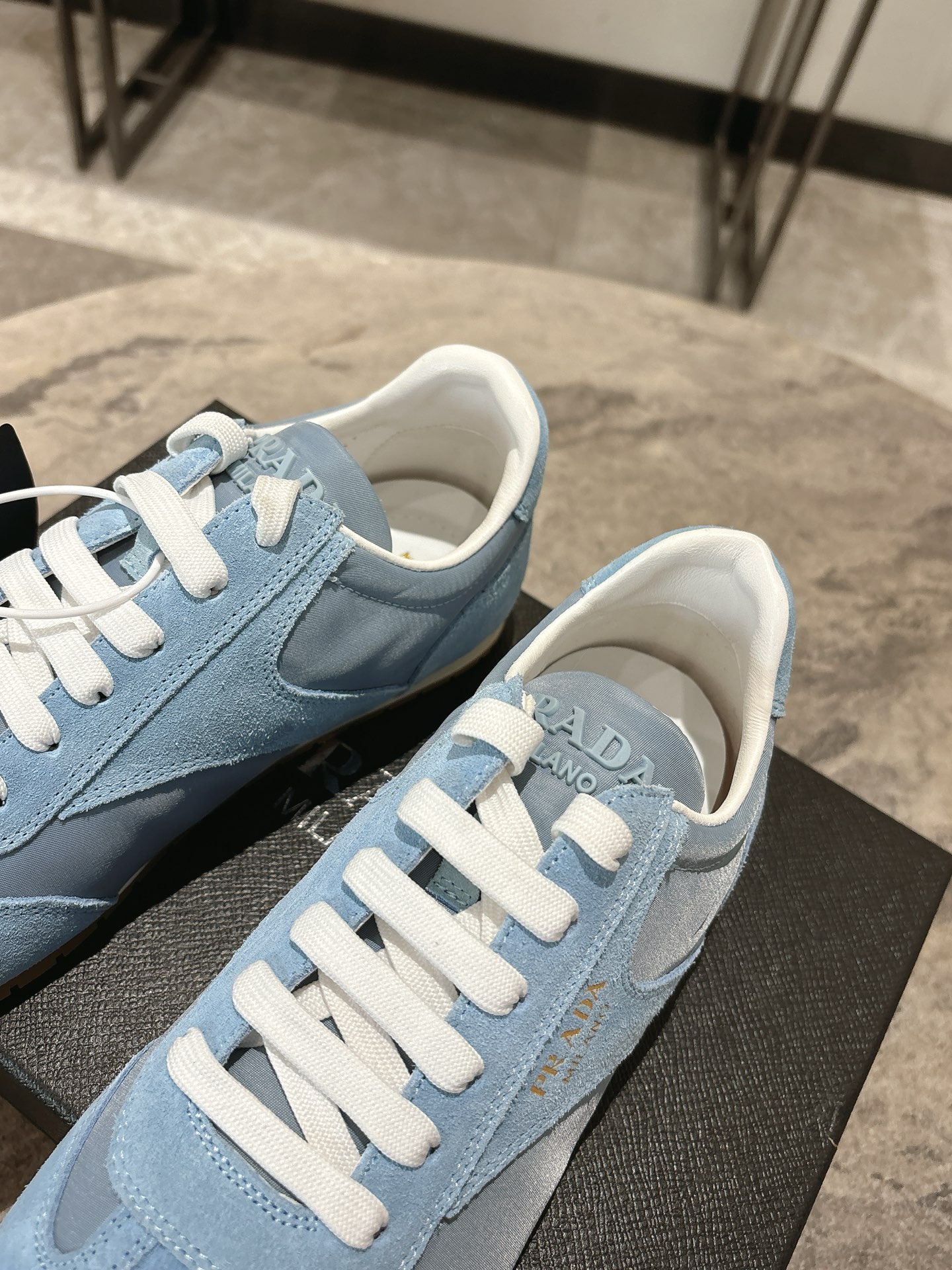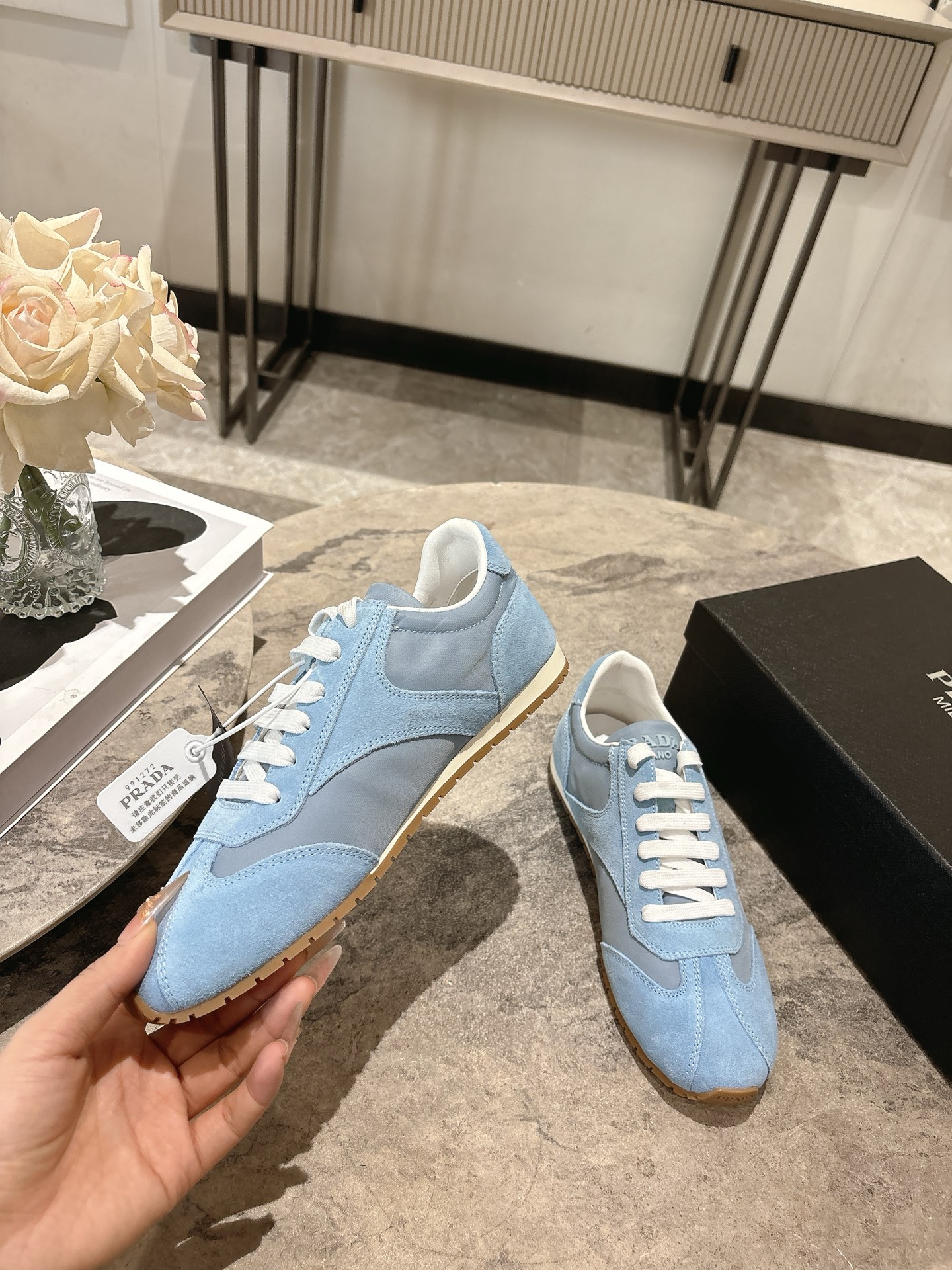 這款鞋子是AAAAA 1:1 質量(非常棒). 使用了和原版一模一樣的材料. 商標部分也保持了和普拉達/Prada一樣. 圖片拍攝是實物鞋子拍攝, 您所收到的實物保證和我們圖片一模一樣.