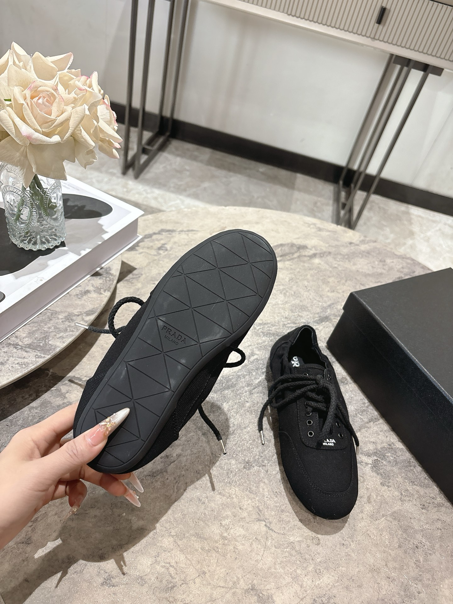 這款鞋子是AAAAA 1:1 質量(非常棒). 使用了和原版一模一樣的材料. 商標部分也保持了和普拉達/Prada一樣. 圖片拍攝是實物鞋子拍攝, 您所收到的實物保證和我們圖片一模一樣.