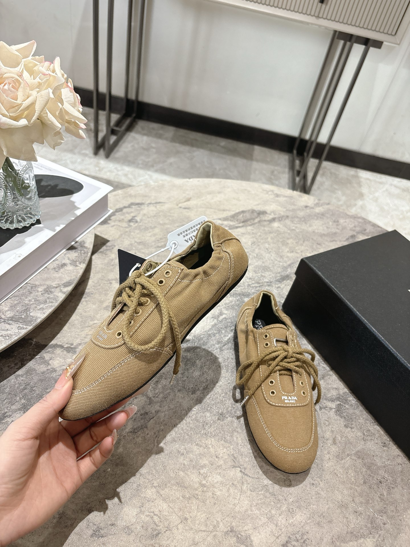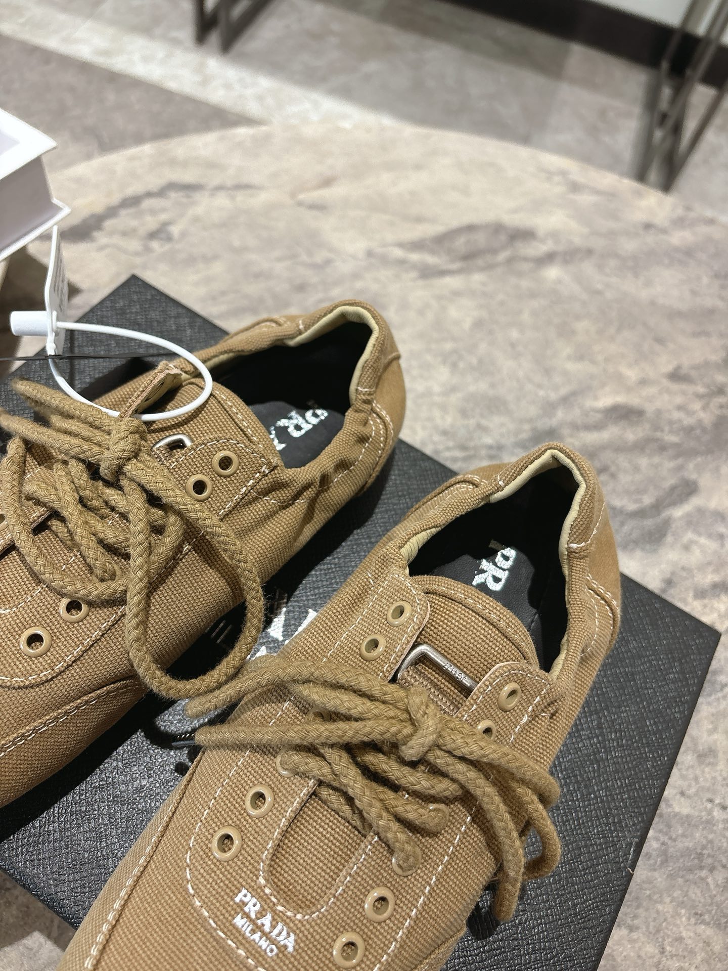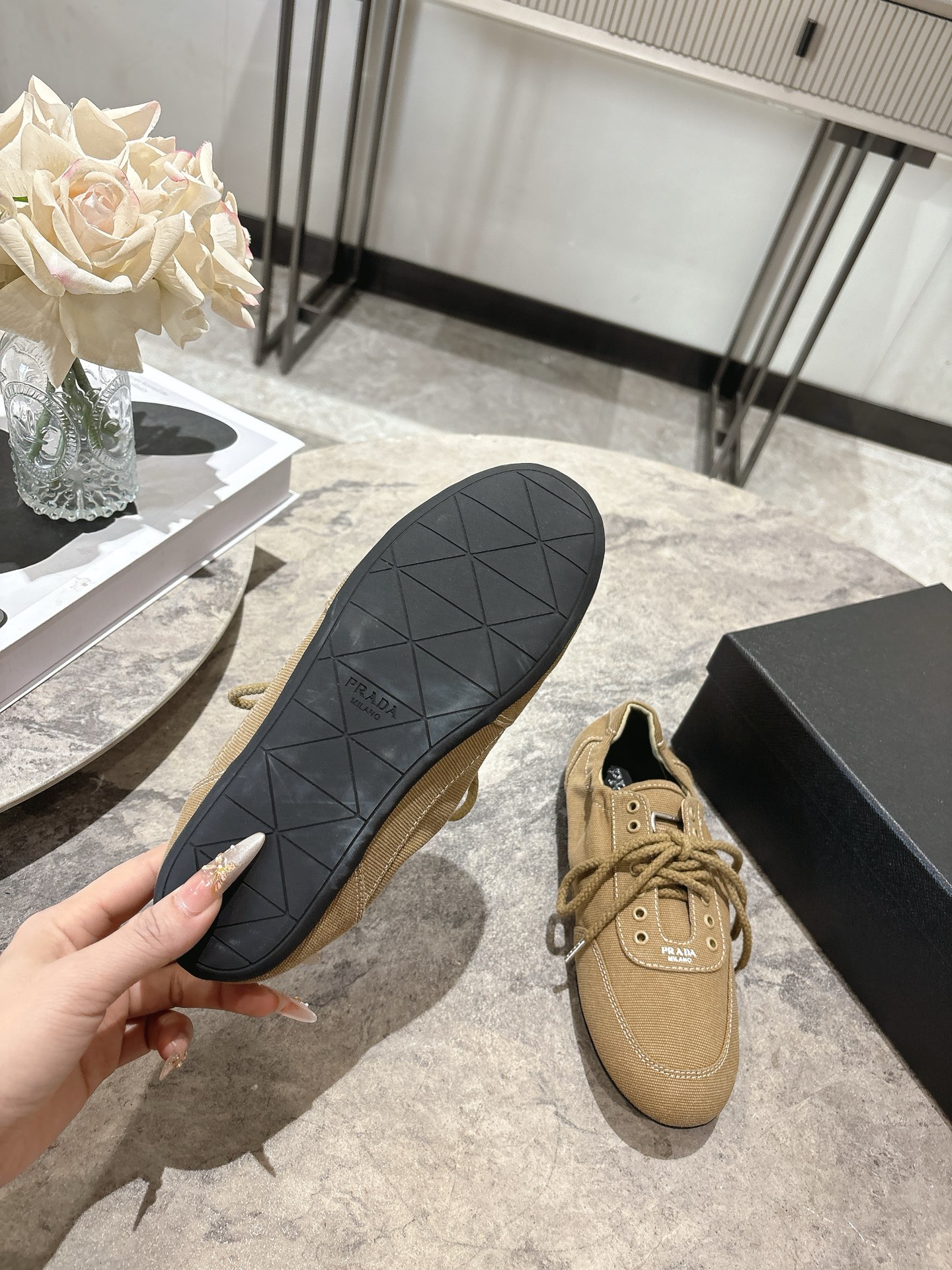 這款鞋子是AAAAA 1:1 質量(非常棒). 使用了和原版一模一樣的材料. 商標部分也保持了和普拉達/Prada一樣. 圖片拍攝是實物鞋子拍攝, 您所收到的實物保證和我們圖片一模一樣.