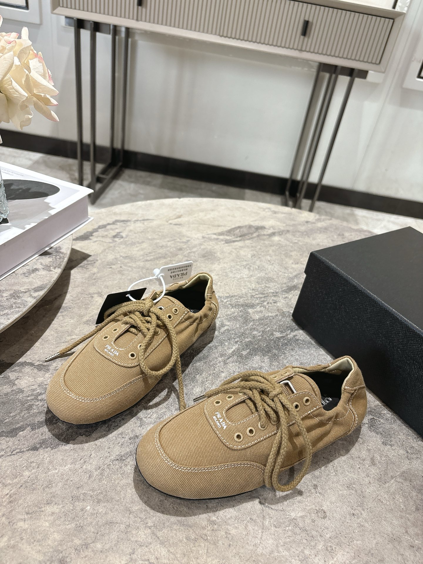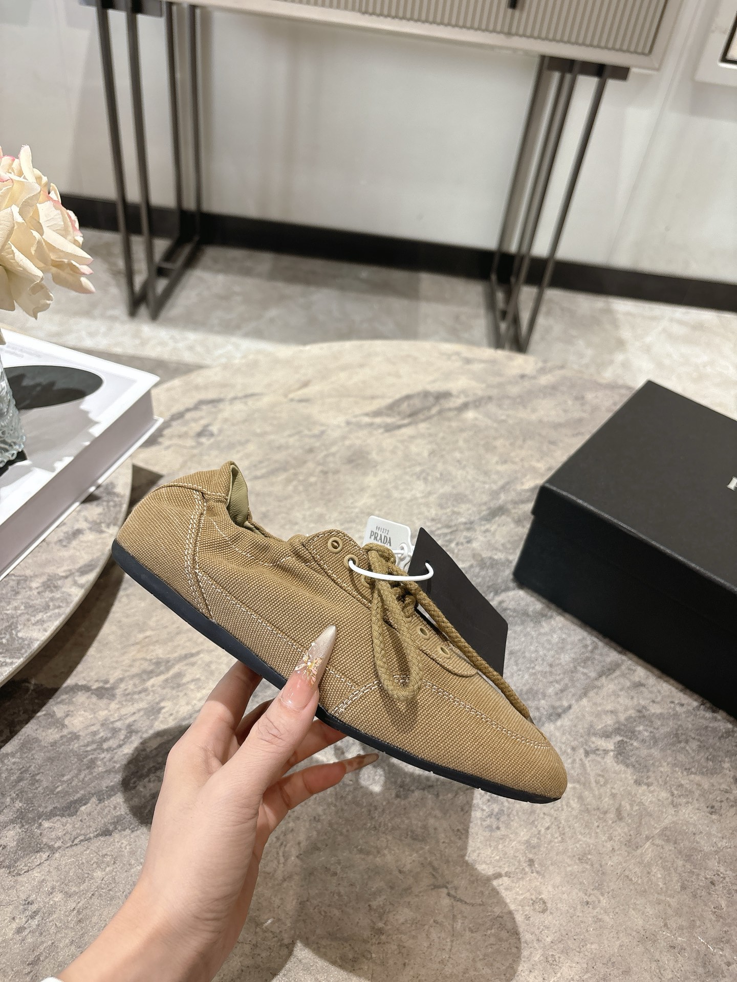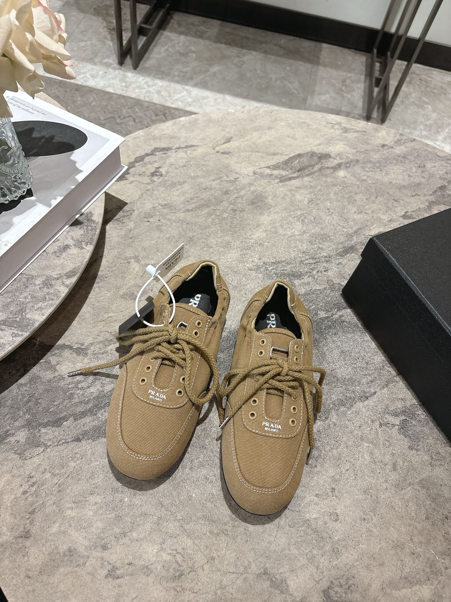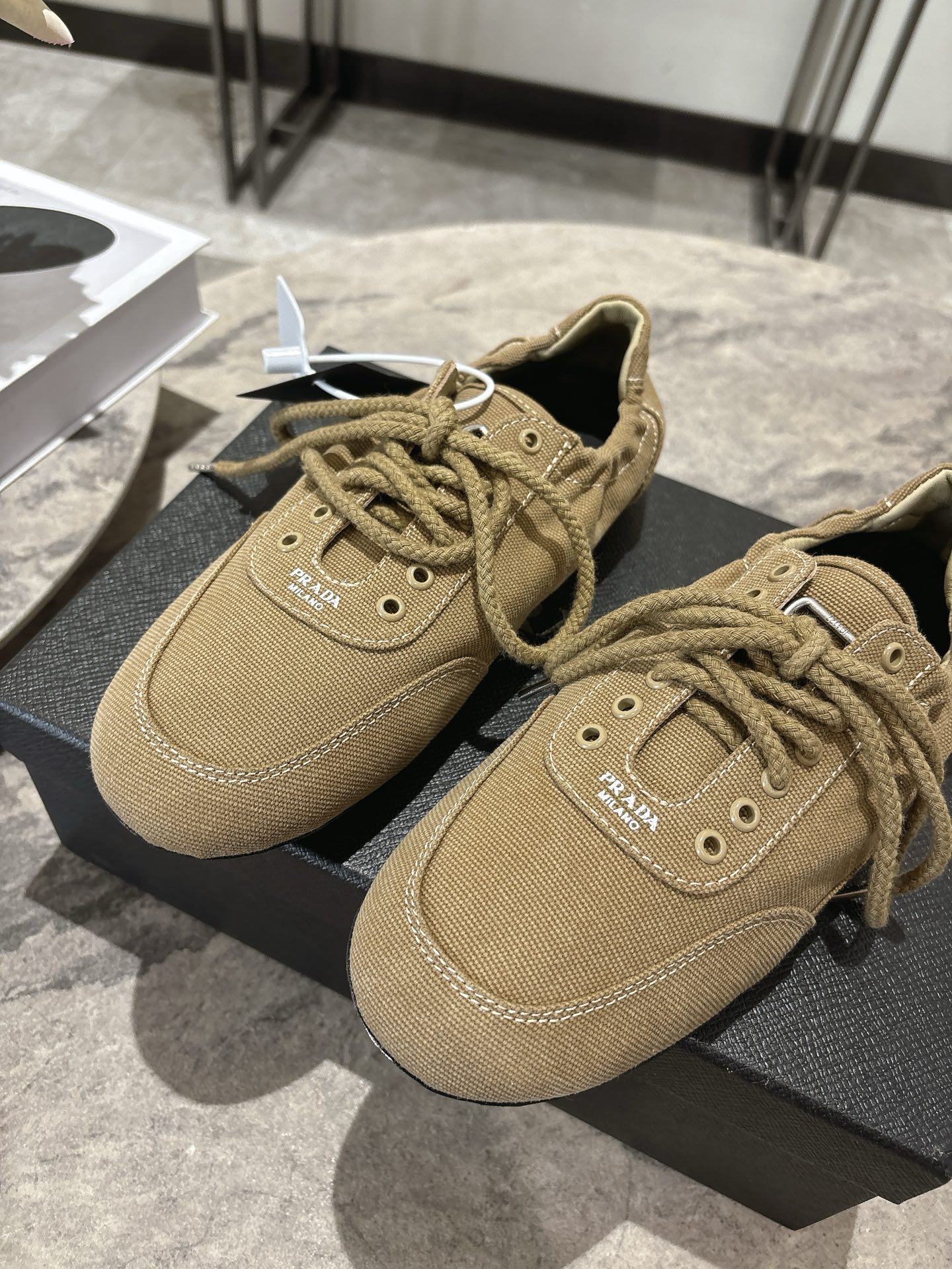 這款鞋子是AAAAA 1:1 質量(非常棒). 使用了和原版一模一樣的材料. 商標部分也保持了和普拉達/Prada一樣. 圖片拍攝是實物鞋子拍攝, 您所收到的實物保證和我們圖片一模一樣.