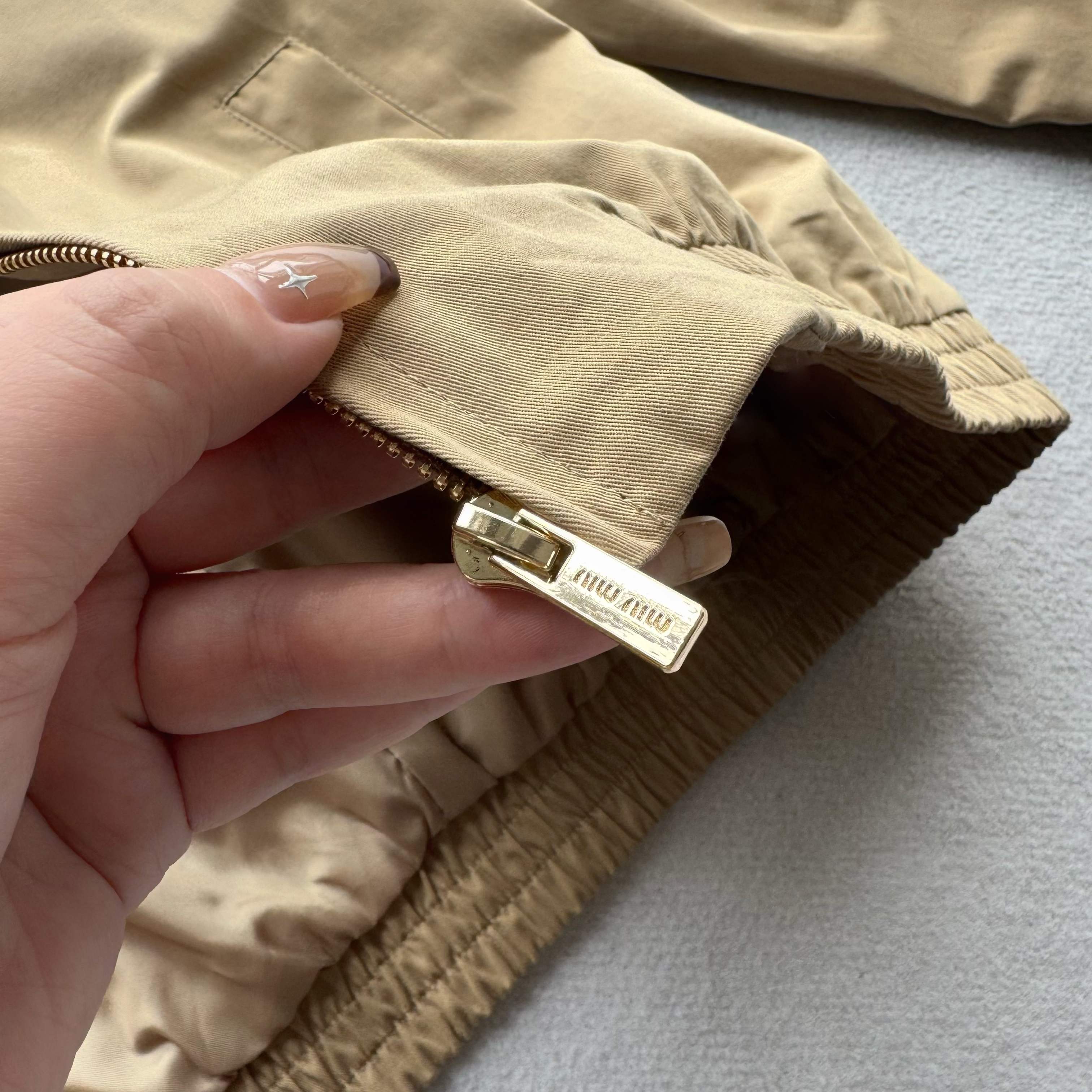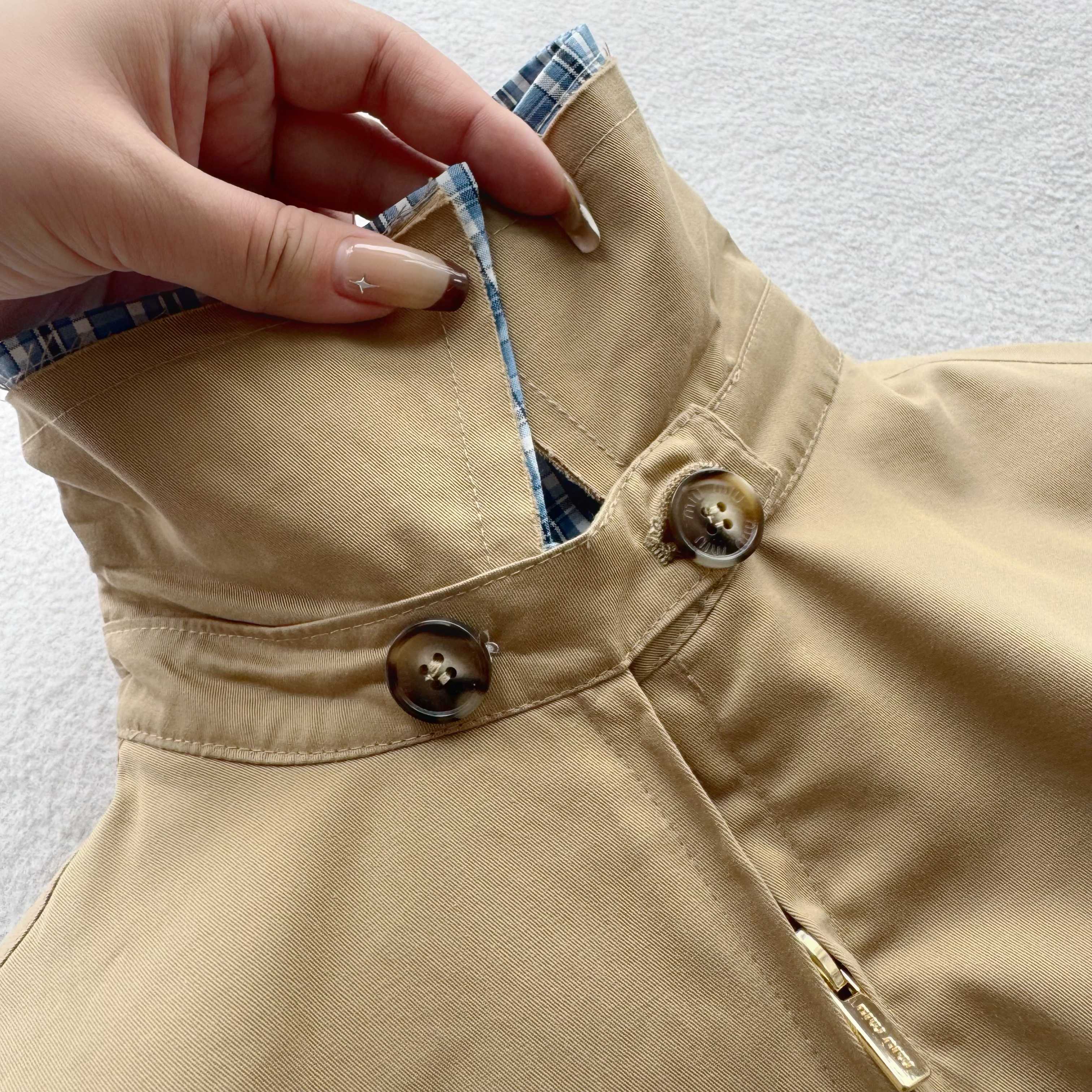 這款衣服是AAAAA 1:1 質量(非常棒). 使用了和原版一模一樣的材料. 商標部分也保持了和繆繆/Miu Miu一樣. 圖片拍攝是實物衣服拍攝, 您所收到的實物保證和我們圖片一模一樣.