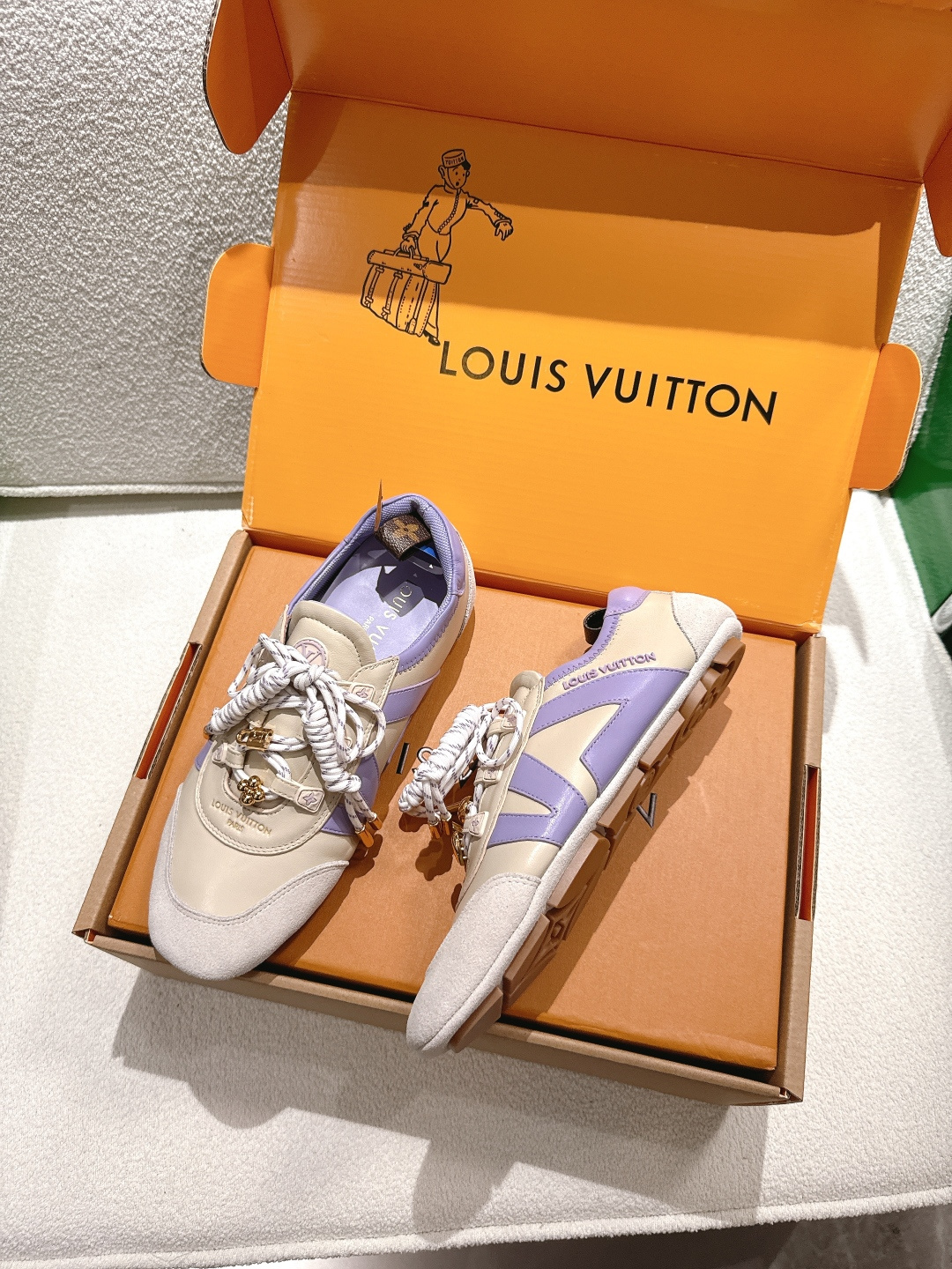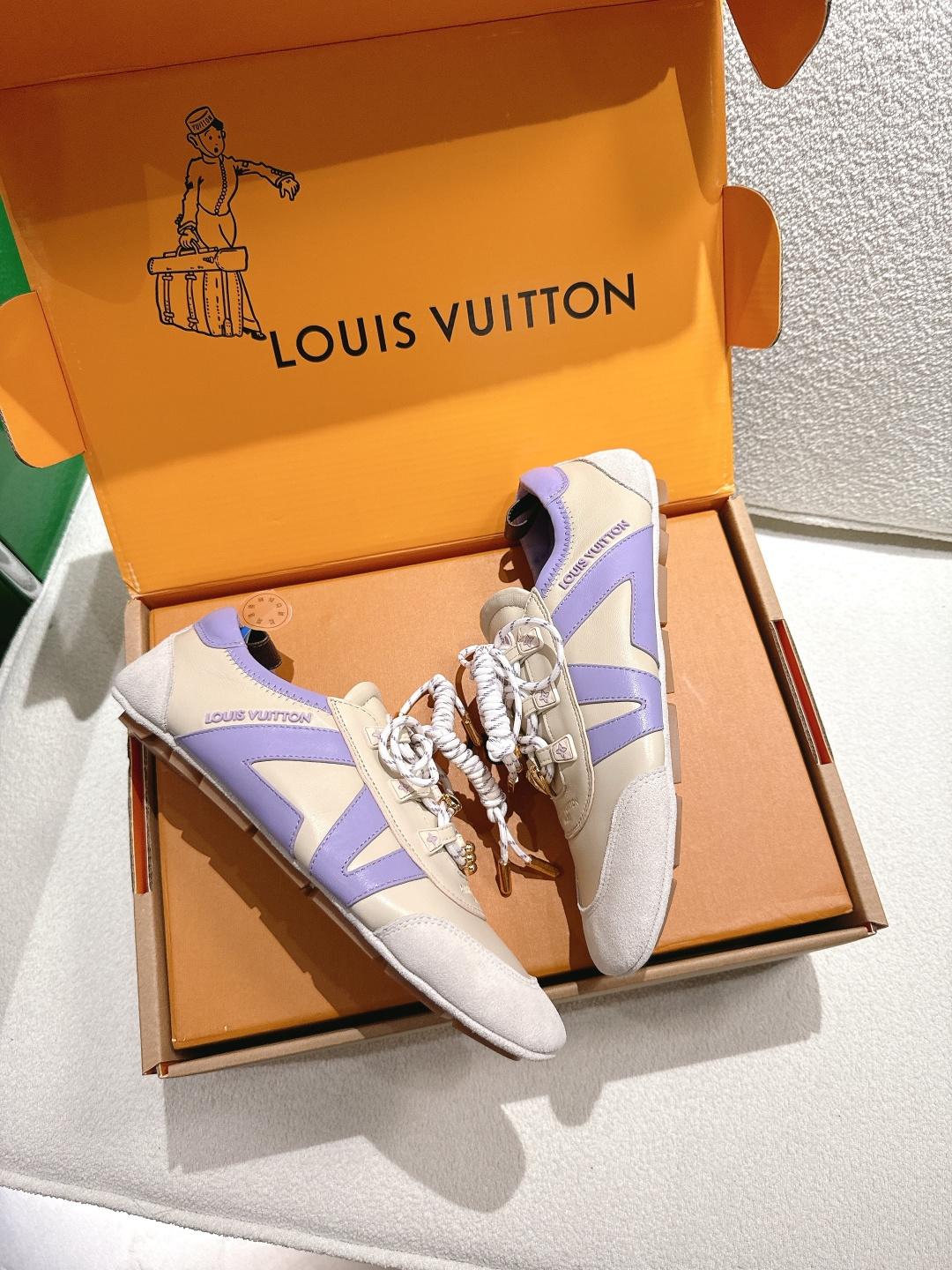 這款鞋子是AAAAA 1:1 質量(非常棒). 使用了和原版一模一樣的材料. 商標部分也保持了和路易威登/Louis Vuitton一樣. 圖片拍攝是實物鞋子拍攝, 您所收到的實物保證和我們圖片一模一樣.