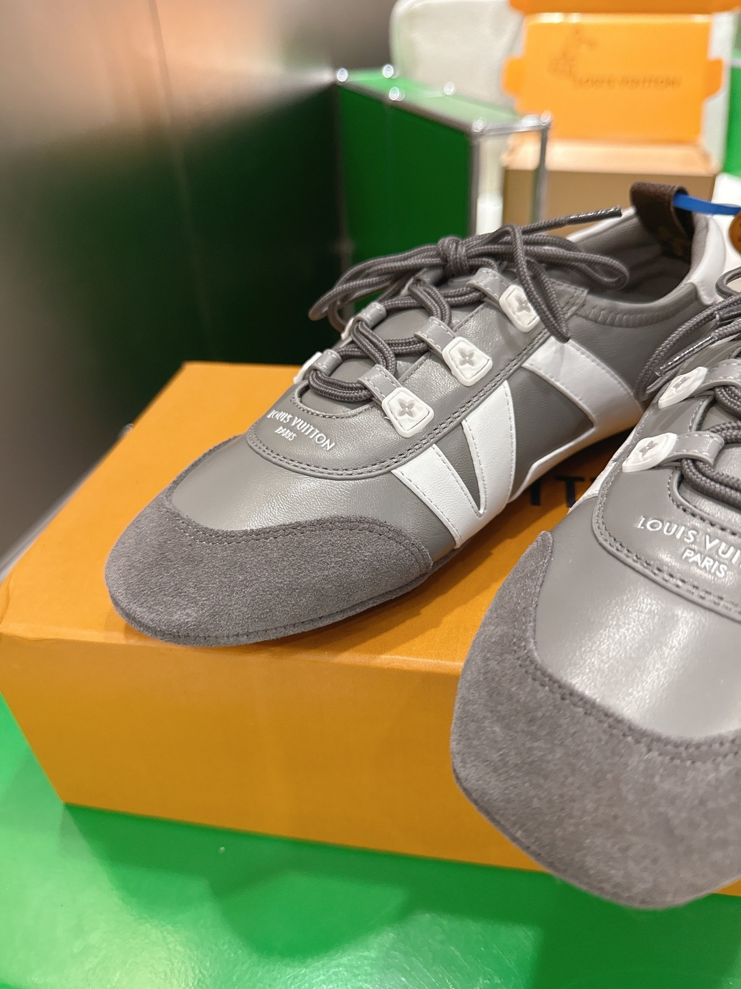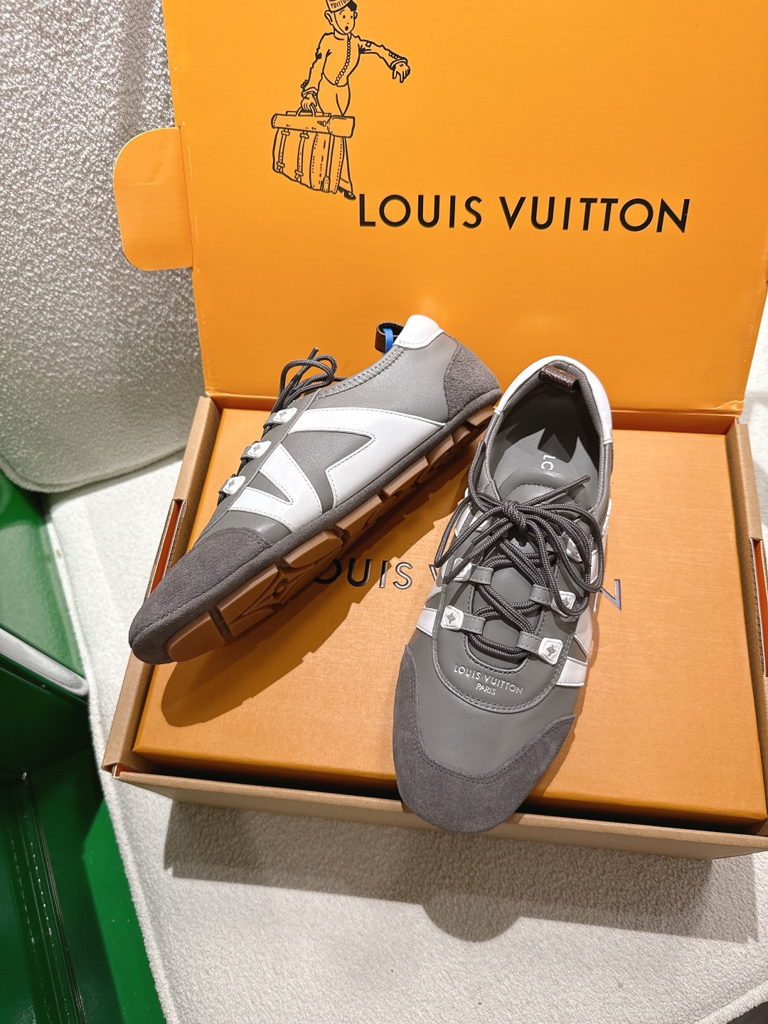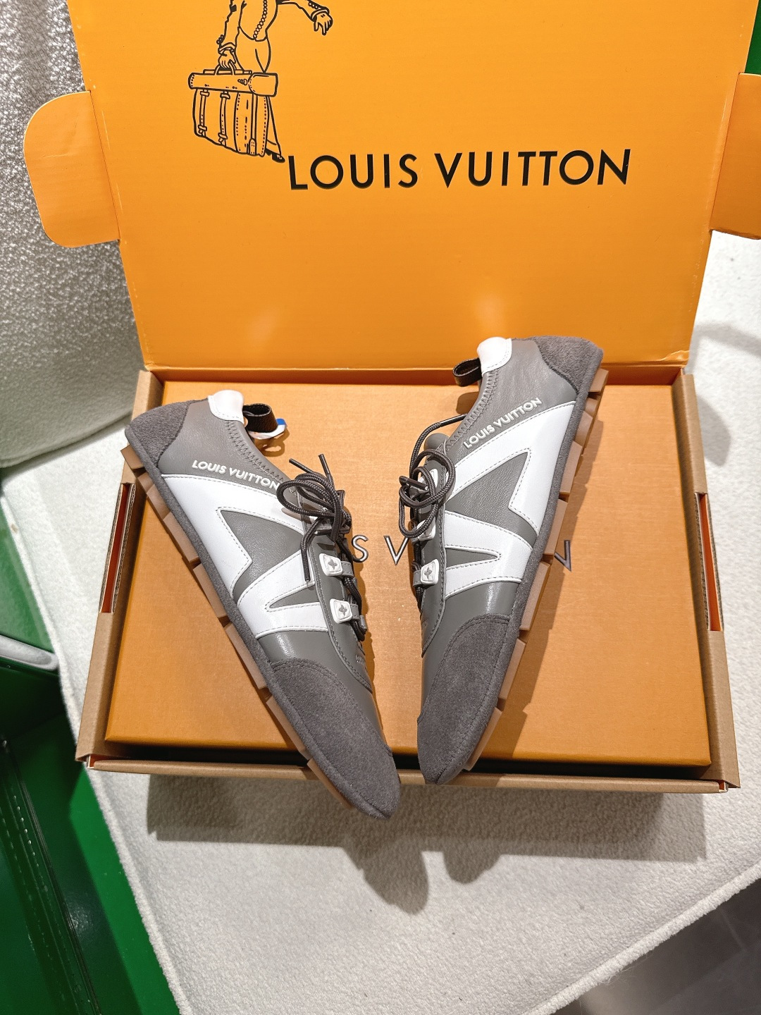 這款鞋子是AAAAA 1:1 質量(非常棒). 使用了和原版一模一樣的材料. 商標部分也保持了和路易威登/Louis Vuitton一樣. 圖片拍攝是實物鞋子拍攝, 您所收到的實物保證和我們圖片一模一樣.