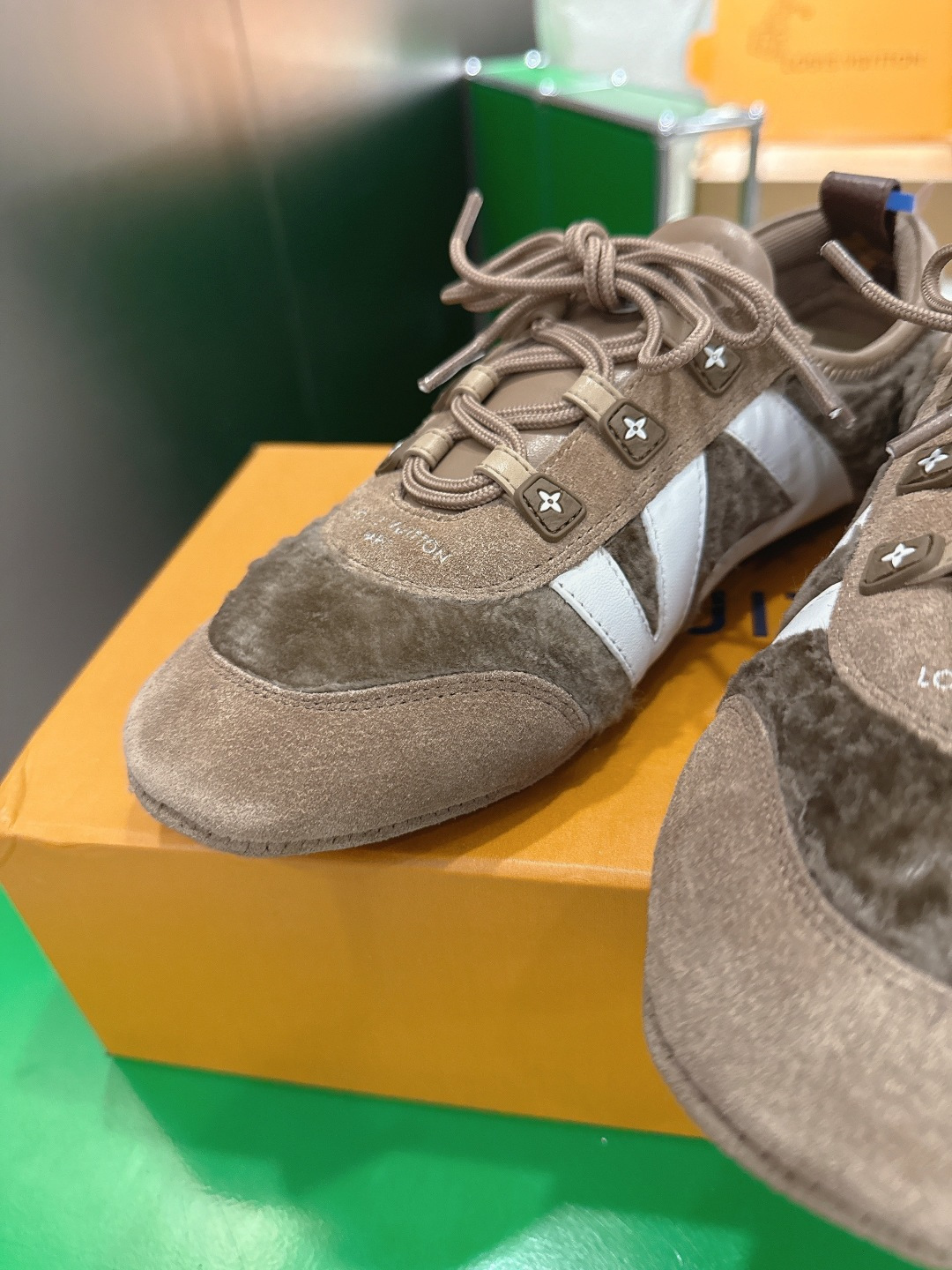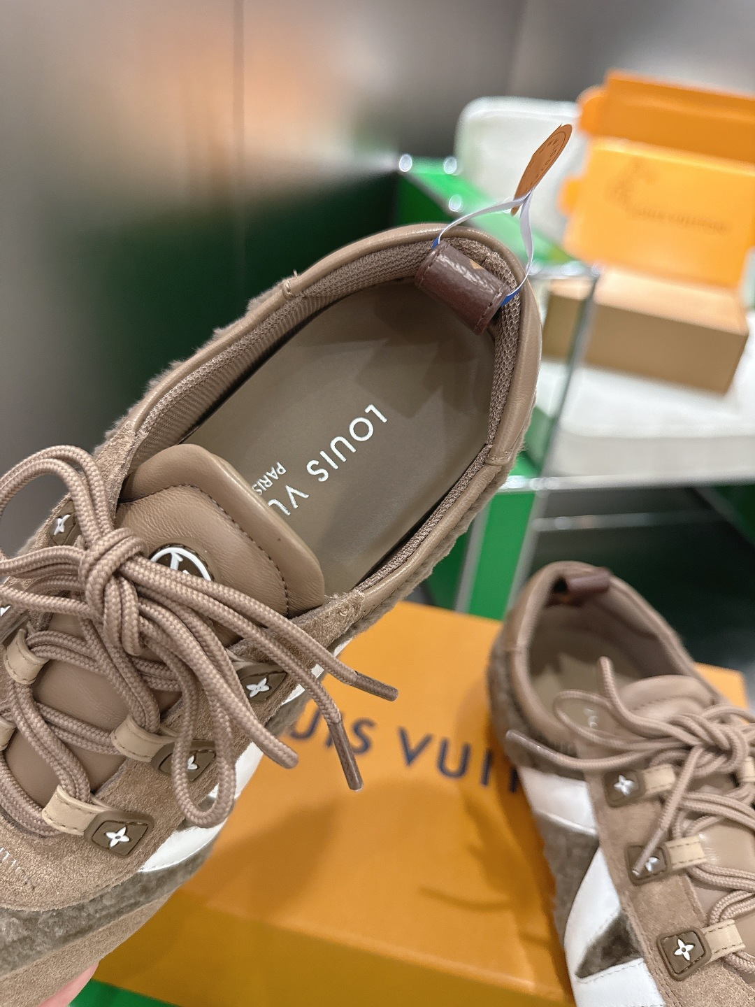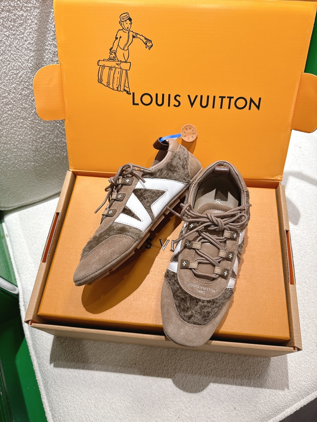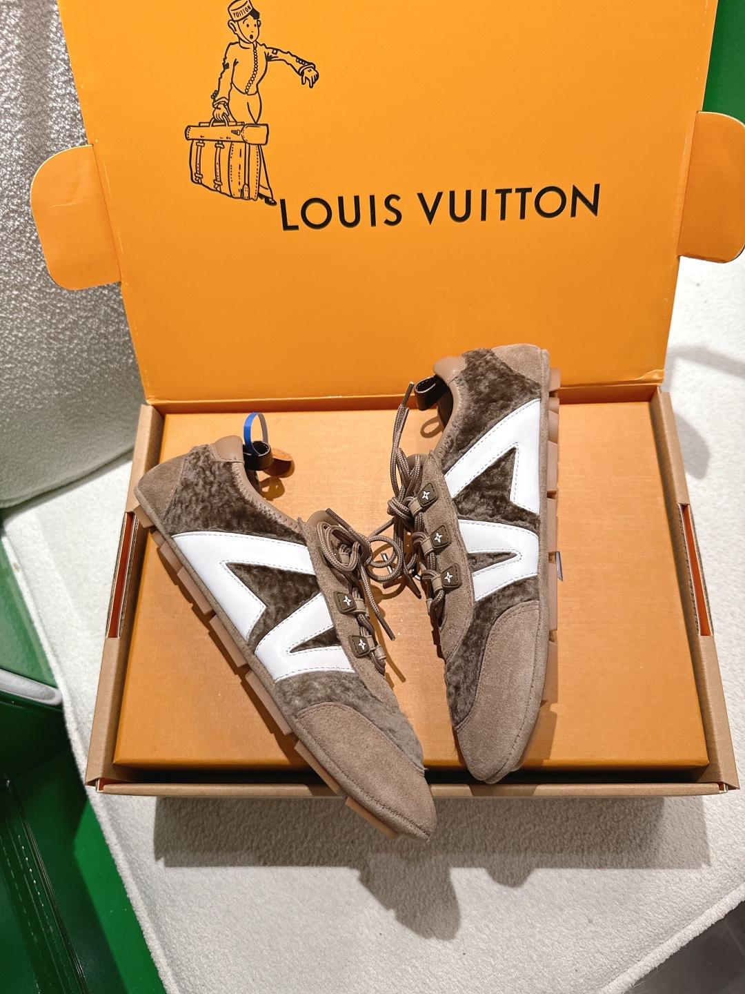 這款鞋子是AAAAA 1:1 質量(非常棒). 使用了和原版一模一樣的材料. 商標部分也保持了和路易威登/Louis Vuitton一樣. 圖片拍攝是實物鞋子拍攝, 您所收到的實物保證和我們圖片一模一樣.